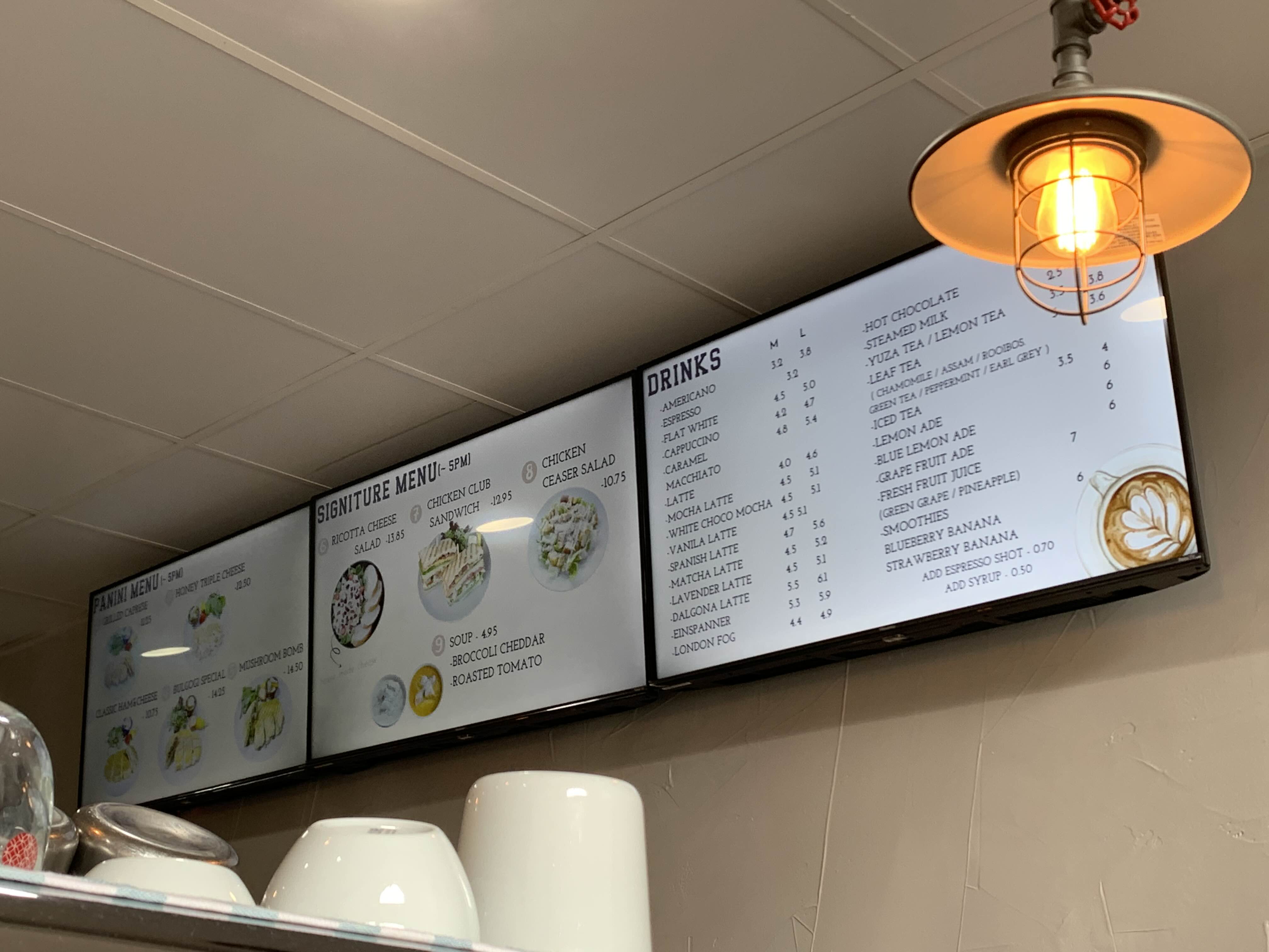파니니 두 개, 아메리카노, 녹차라테 미디엄으로 한잔씩 시켜서 $38 정도 나왔으니 꽤 가격대가 있는 편!