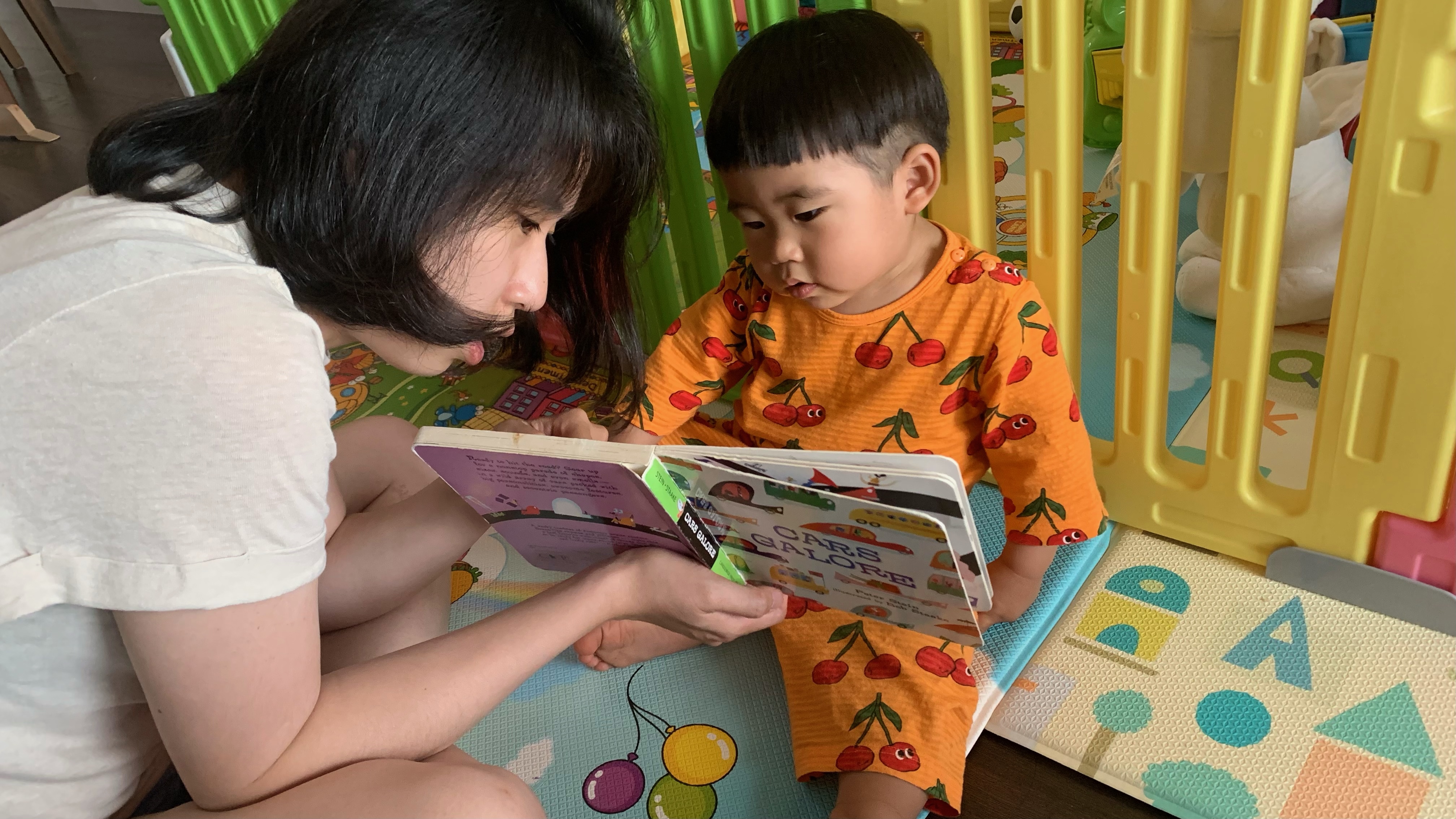 엄마랑 즐겁게 책을 읽고요~ 엄마가 출근 준비할 동안 태오는 수영장 갈 준비를 해서..