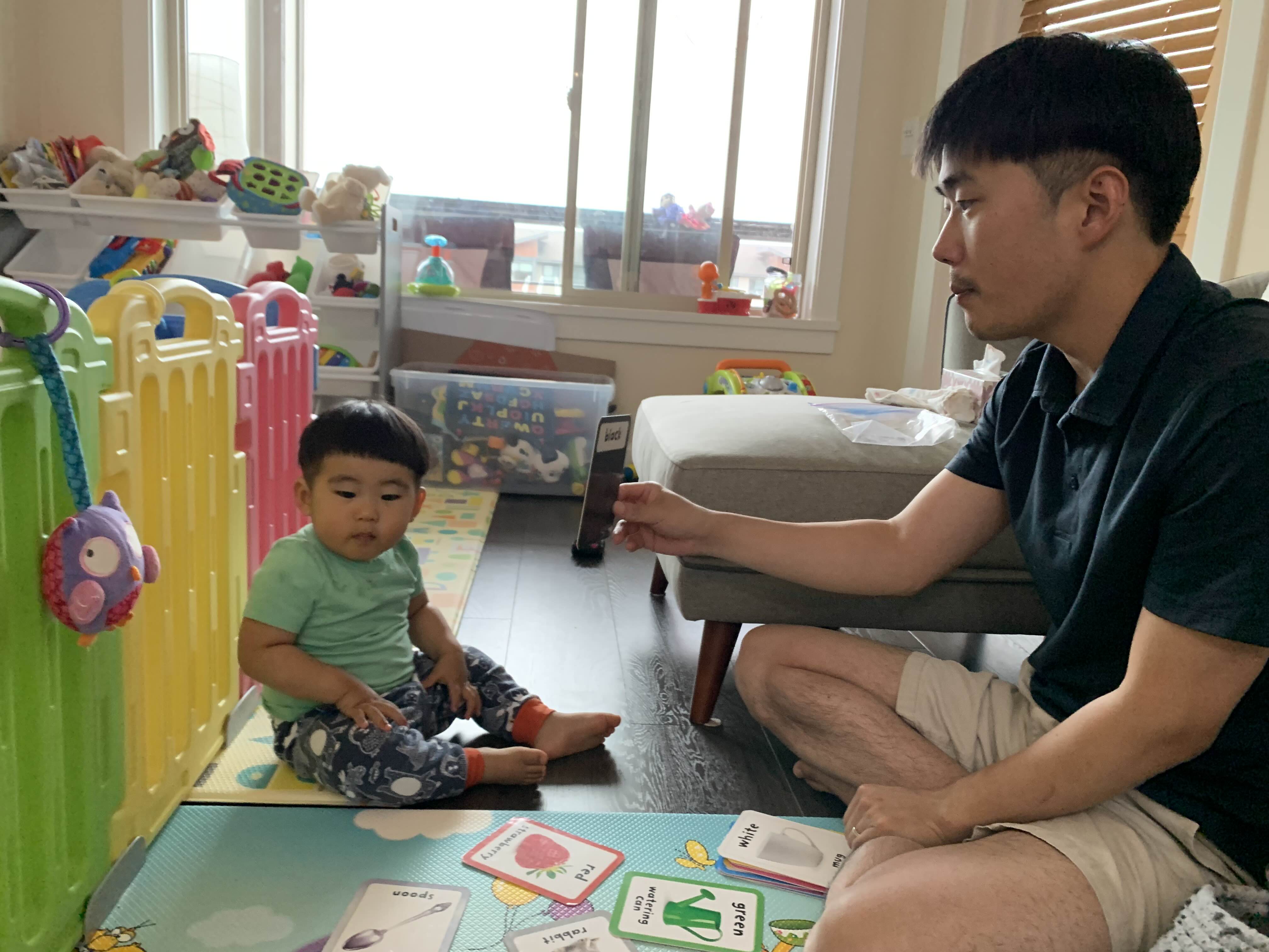 쪼르르 가서 숫자 카드를 가져온 아들! 아빠랑 둘이 앉아서 숫자 카드로 놀던 아들~ 이제 말도 알아듣고 많이 컸어!! 그리고 엄마는 일터로, 태오는 놀이터로 출근!!
