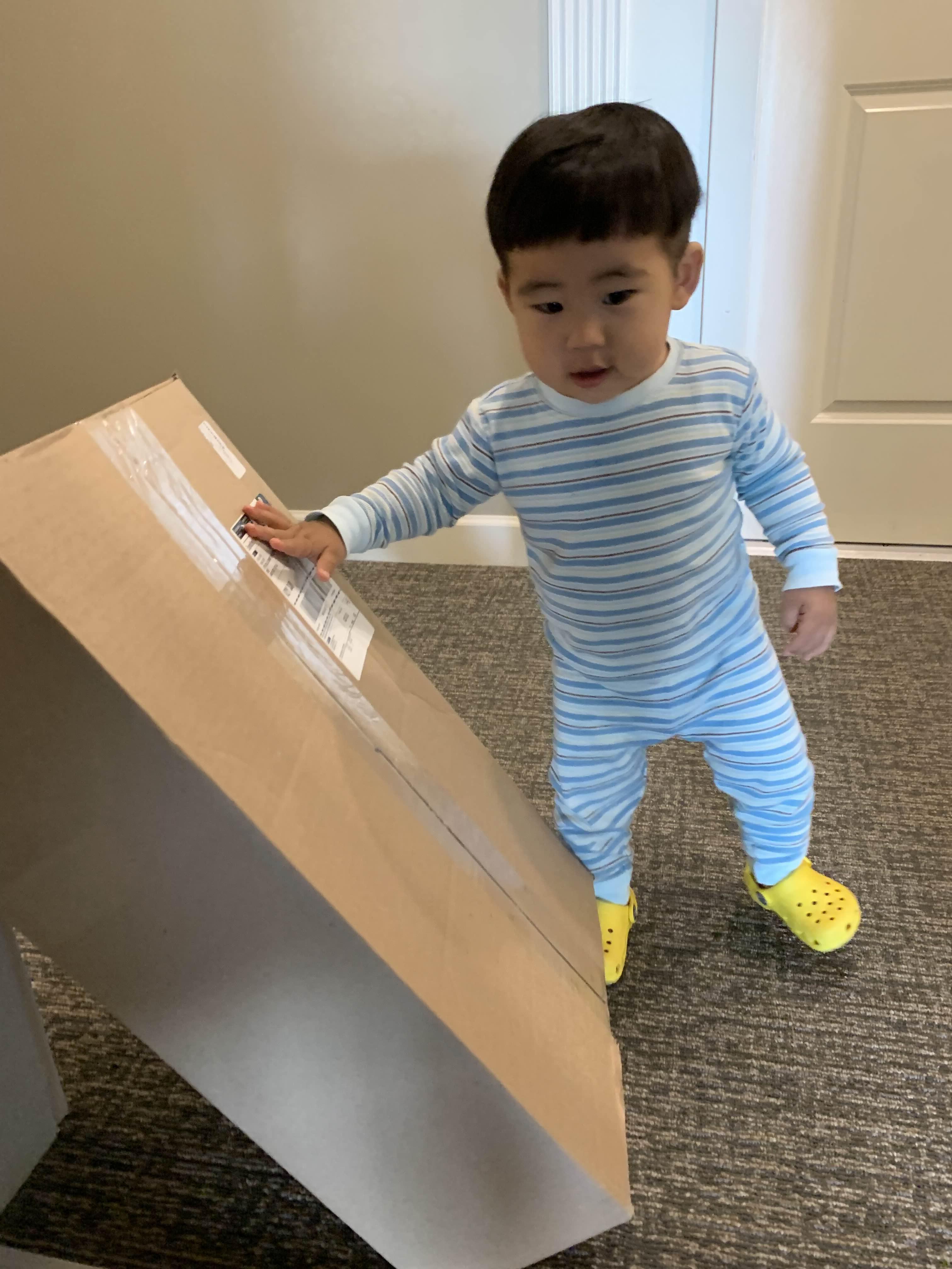 수영하고 오니 집 앞에 소포가 딱! 아빠 이거 태오 거예요? 하고 신이 난 아들.. 하지만 저건 엄마 회사에서 10년 근무라고 준 선물이야.. 물론 받고 바로 그만두게 되긴 했지만..