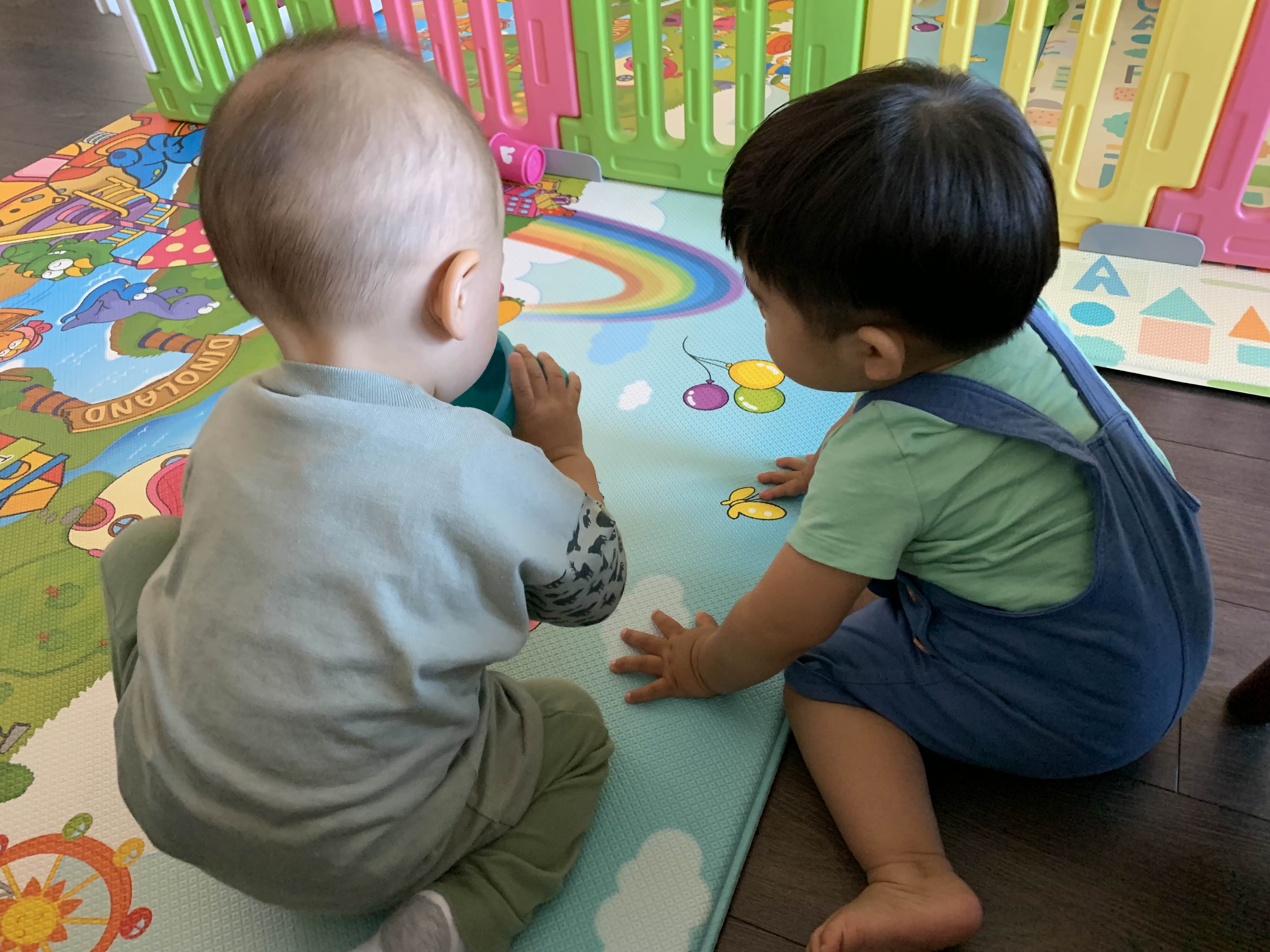 오후에는 밑에 층 할머니 손자가 놀러 와서, 태오 장난감 가지고 같이 놀았어요!!