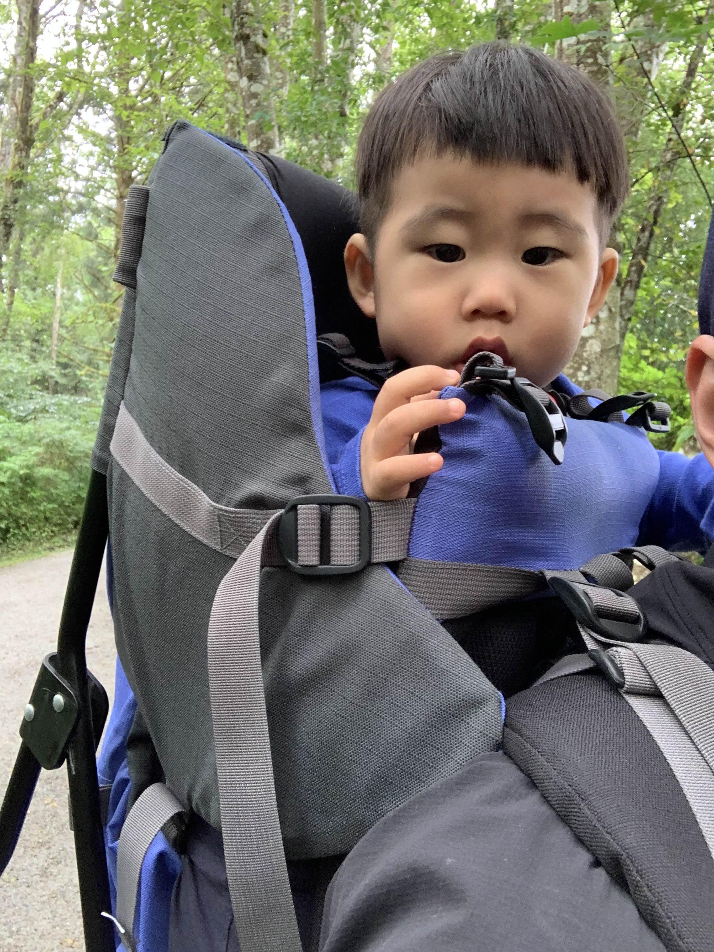 태오랑 하이킹에 가고 싶었던 아빠는.. 태오를 하이킹 캐리어에 매고 근처 공원에 갔는데.. 우리 태오는 내리고 싶었다고 한다고 합니다..