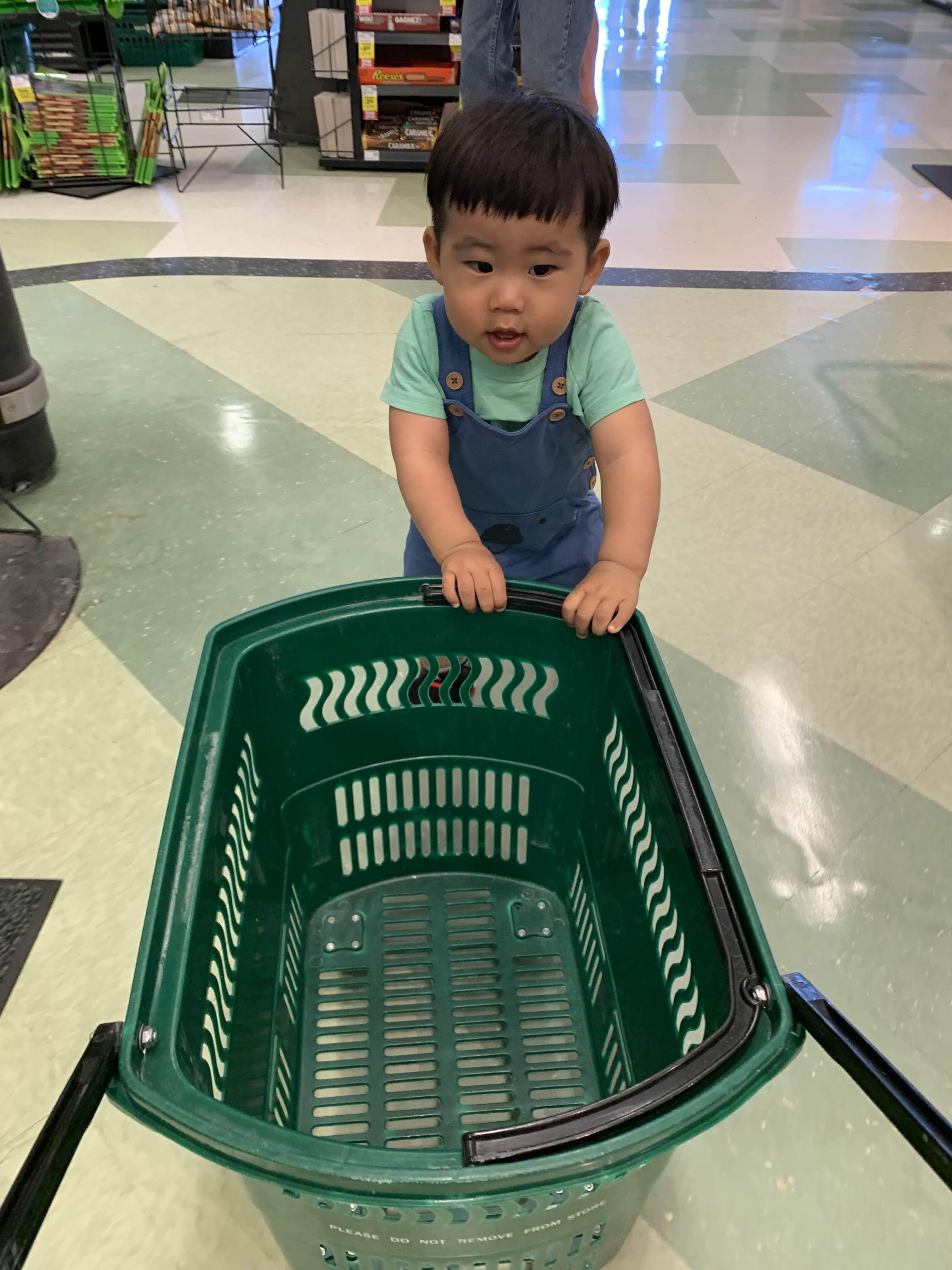 그리고 아빠랑 마트 간 태오는.. 아빠 바구니 밀어주기에 너무너무 신이 나서~ 뽈뽈뽈~~