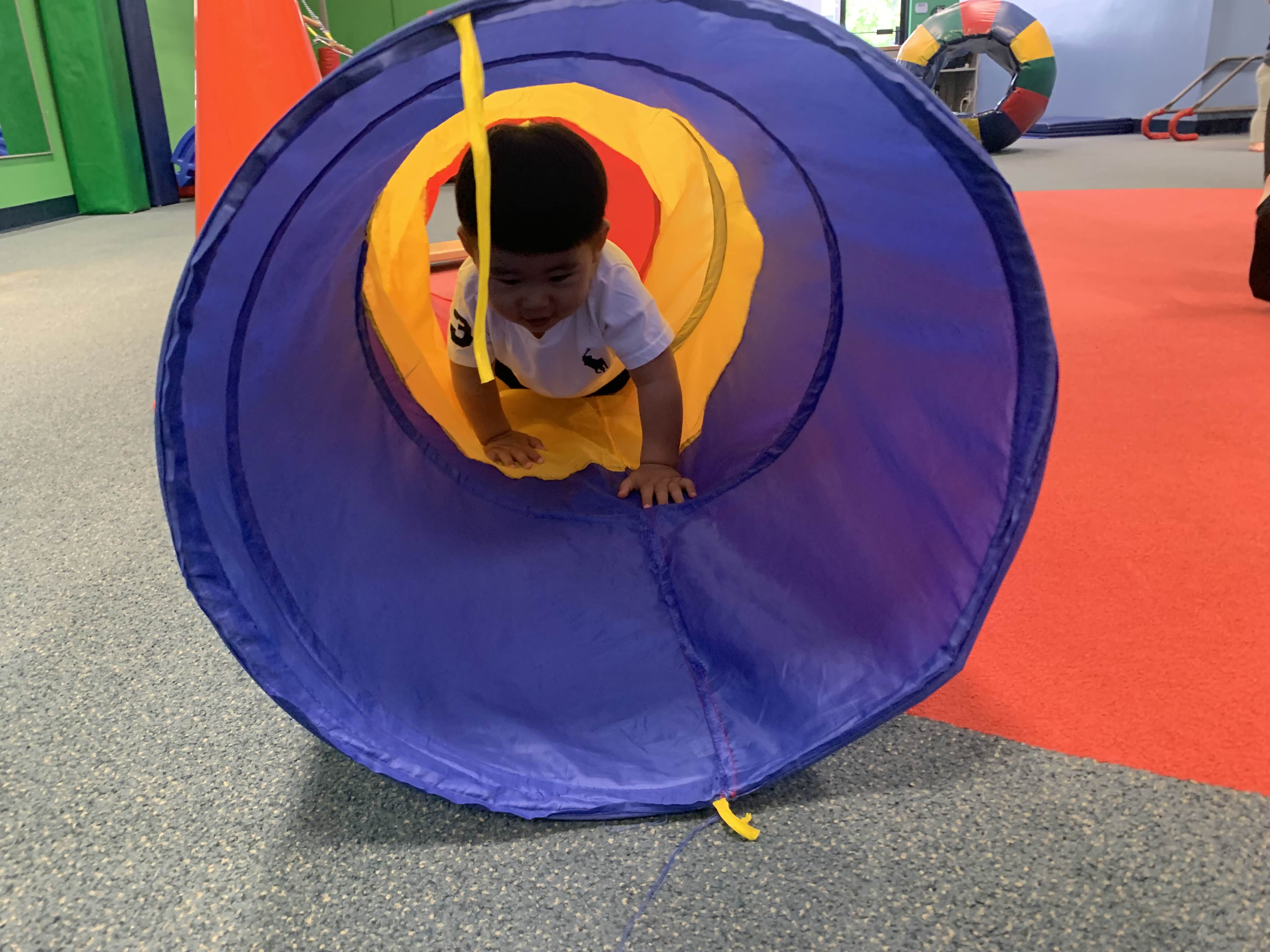 이 터널 장애물.. 엄마랑 절대 안 들어가던 거.. 아빠가 반강제로 반쯤 밀어 넣어서.. 드디어 통과를!!