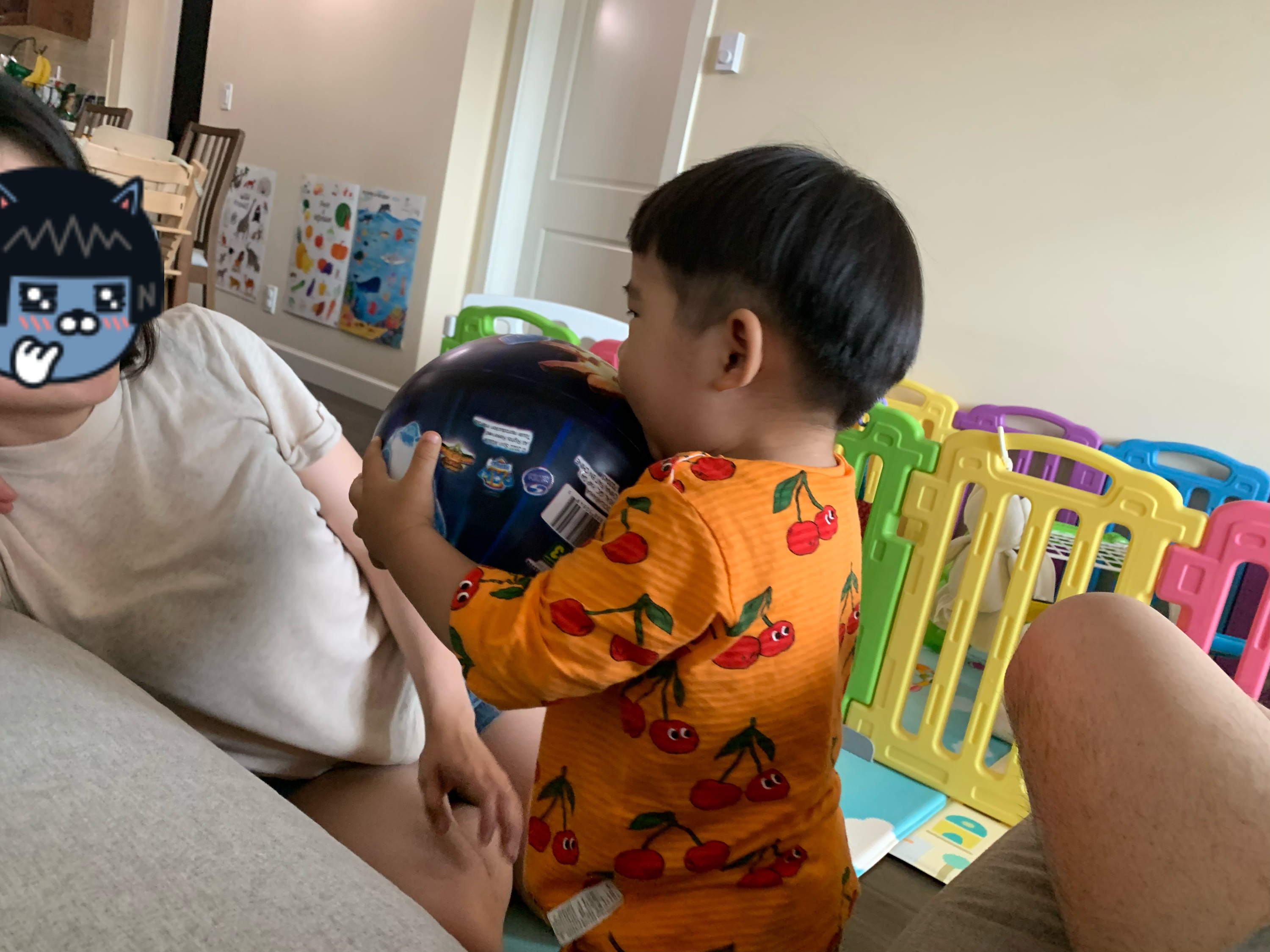 엄마가 새로 사 온 공.. 무섭긴 한데.. 엄마가 있으니까 용기 낼 수 있어요!!