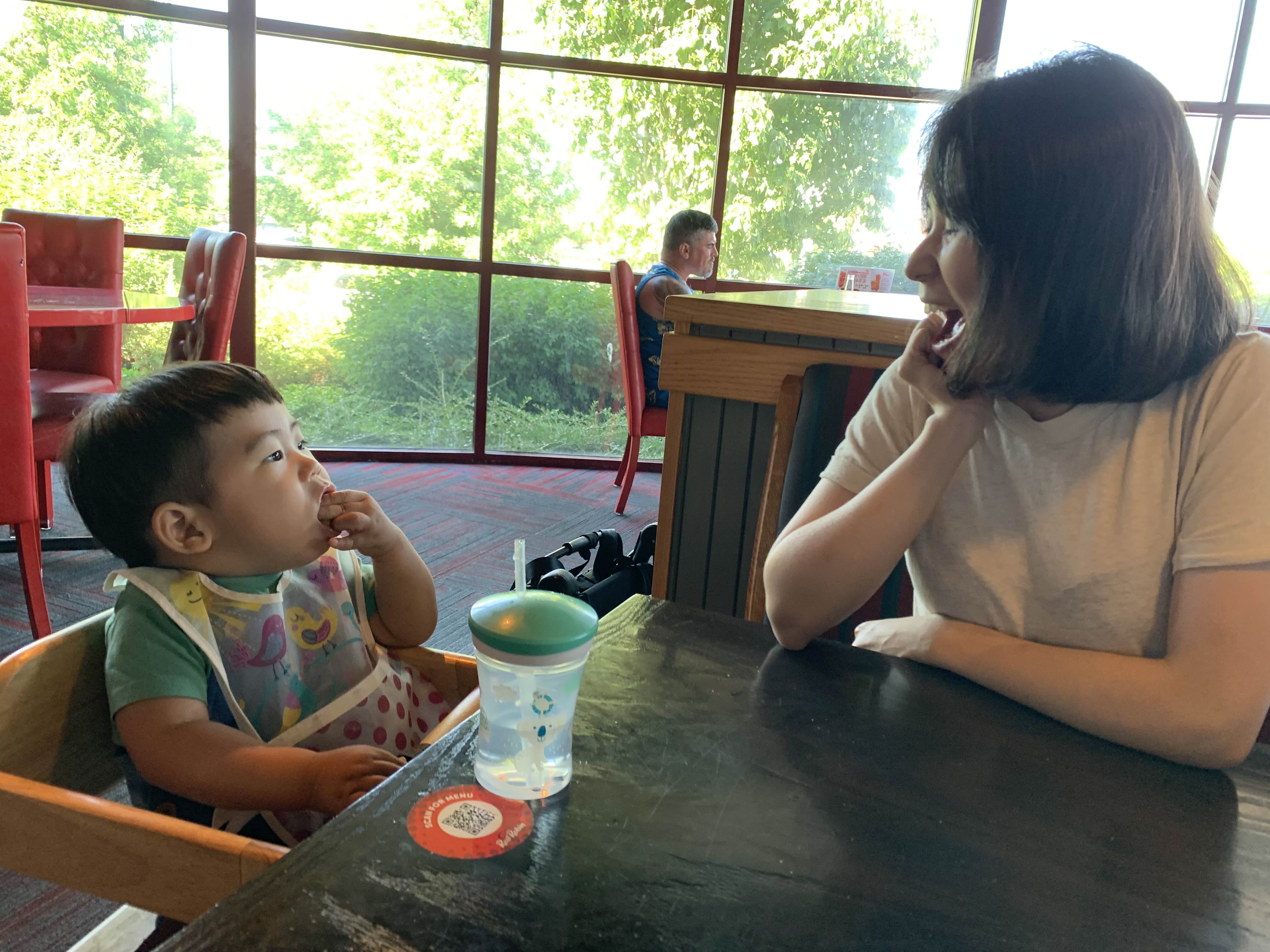 그리고 엄마 아빠랑 오랜만에 외식!! 태오 오늘 인생 첫 얌 프라이도 몇 개 얻어먹었지요.. 최애 토마토 과자도 얻어먹고.. 우리 태오 계 탔네 계 탔어!! 신난 태오가 마냥 사랑스러운 엄마 ㅎㅎ