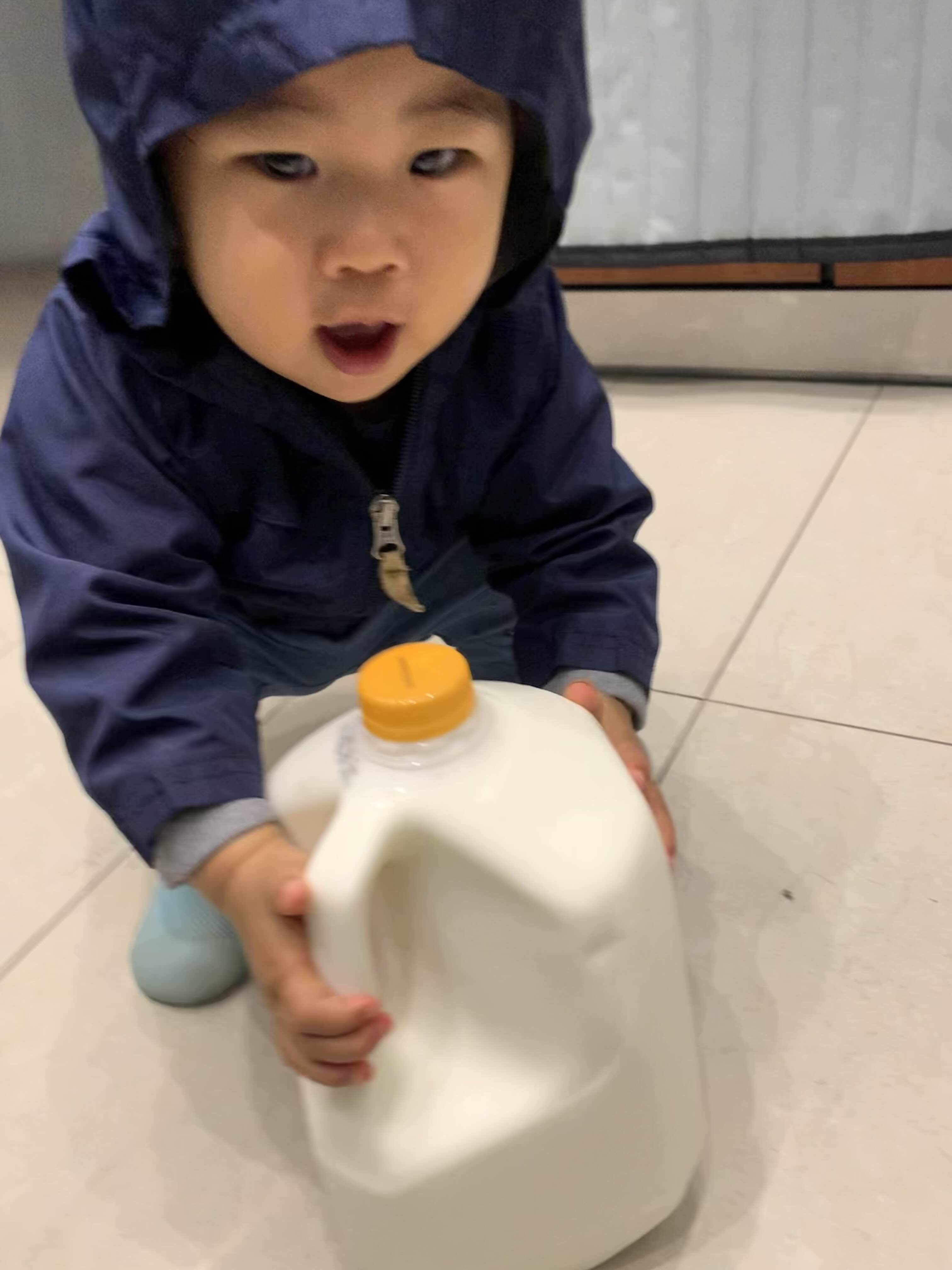 아빠 따라 코스코 갔다가.. 자기 우유는 자기가 들겠다는 태오.. 설마 4리터를 든다고?? 했는데.. 대행이 살짝 들렸다가.. 미끄러졌다고... (우리 태오 그것만으로도 이미 괴력인 거 아닌가...?)
