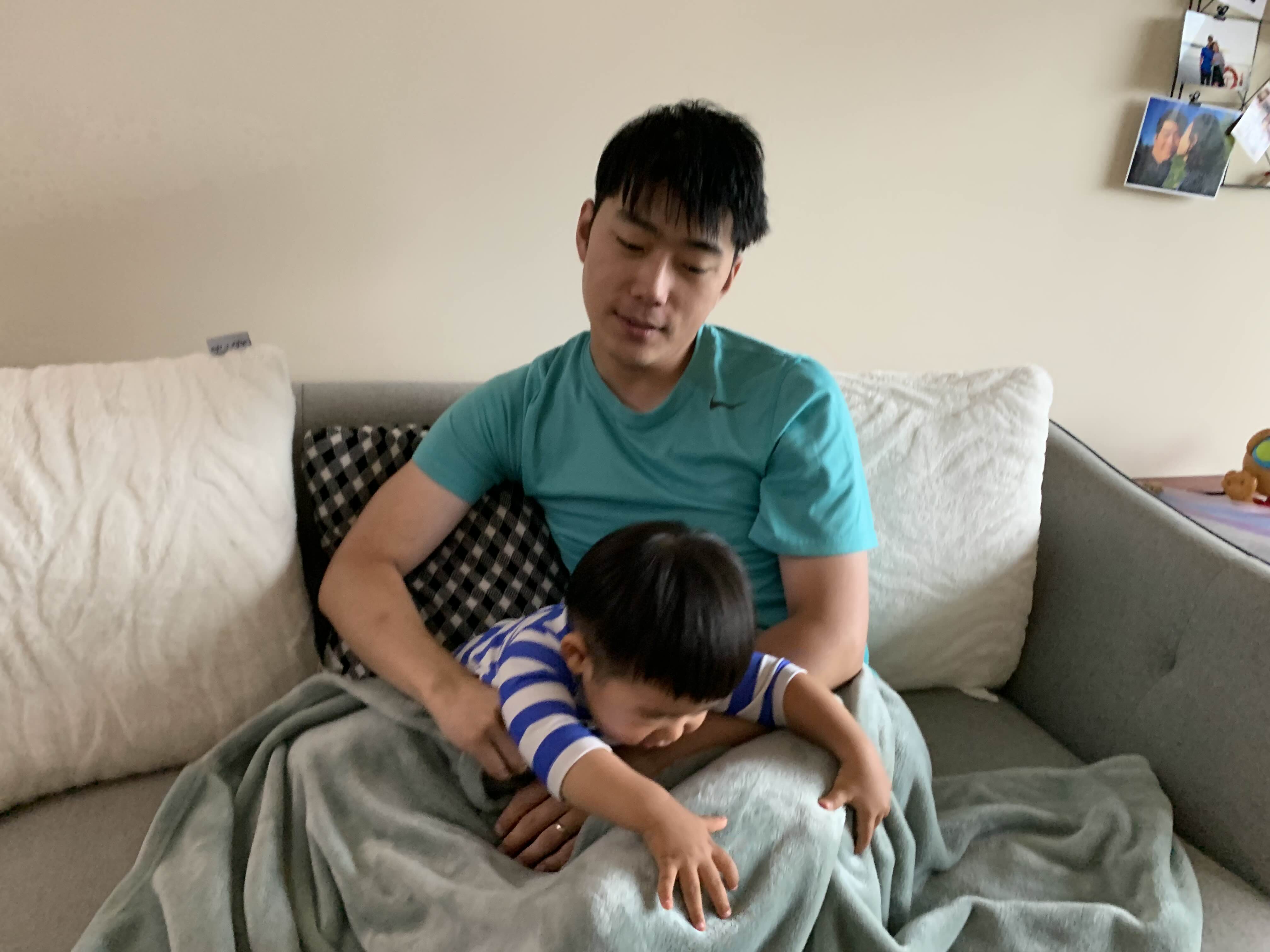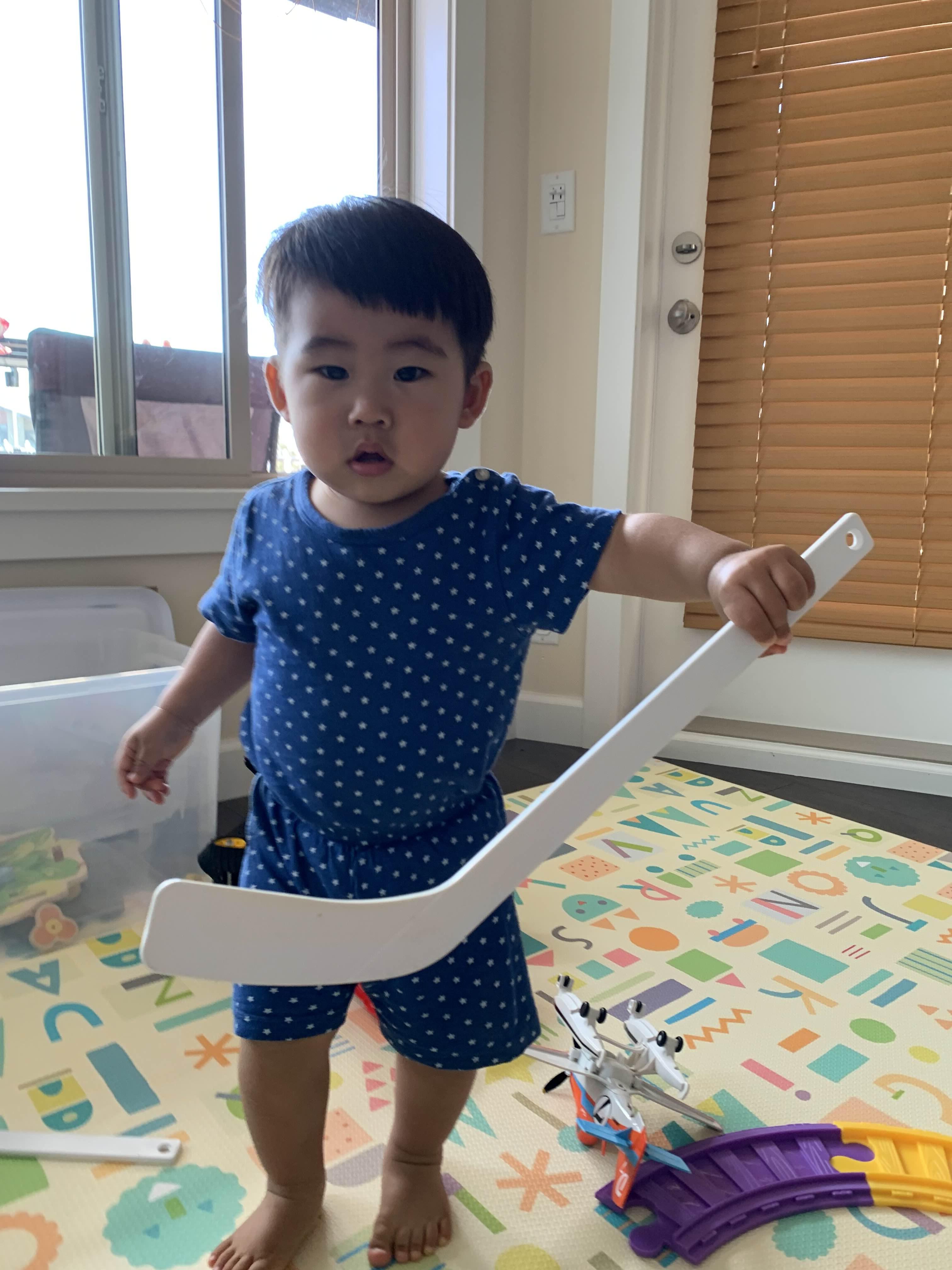 아빠가 어제 새로 꺼내 준 장난감 사이에 하키 스틱이 있었어요!! 아빠랑 하키 스틱 들고 사진 찍어요!! 예쁜 짓!! >////< 그러고는 낮잠 자러 갔겠지 우리 아들..??