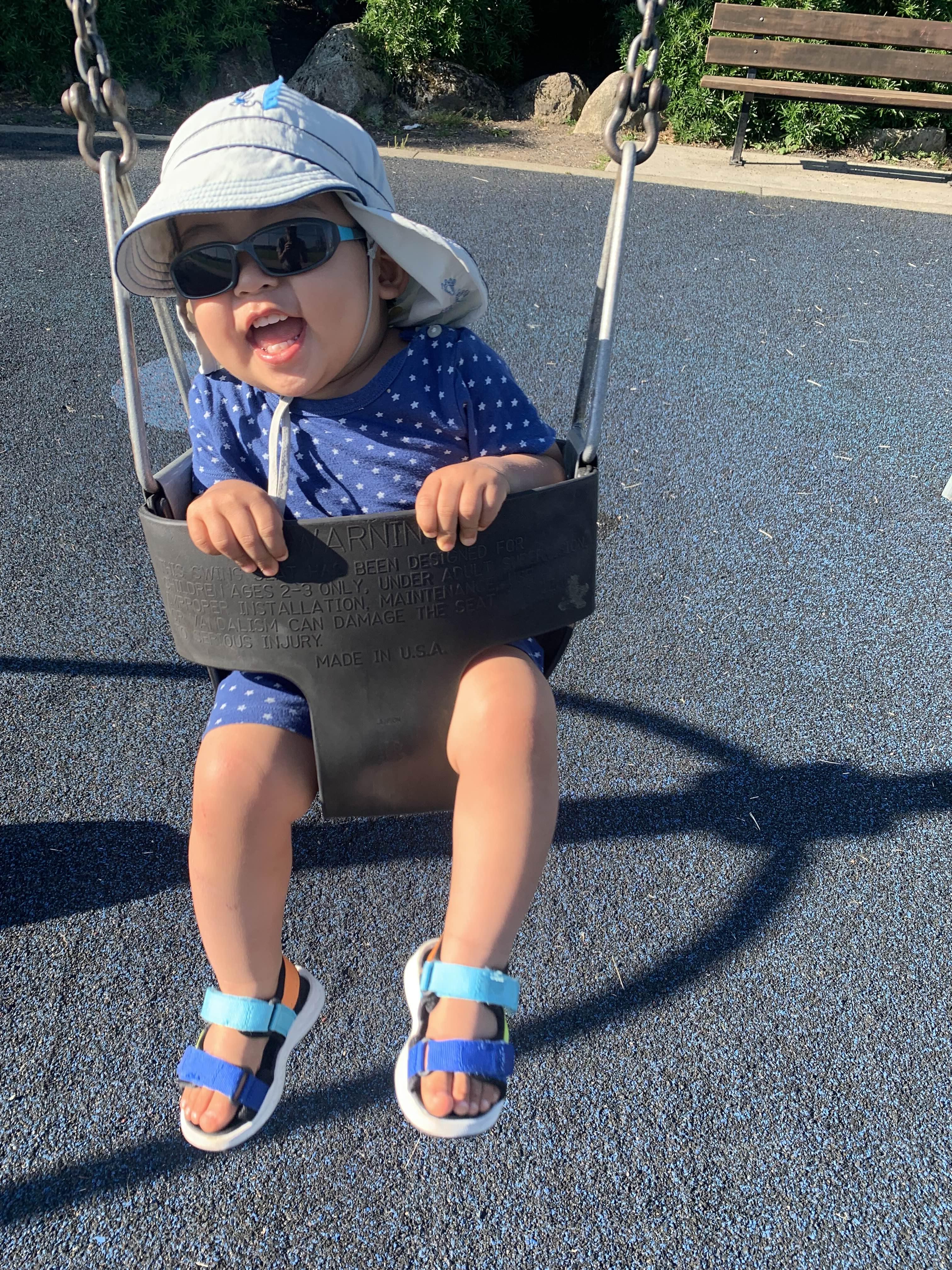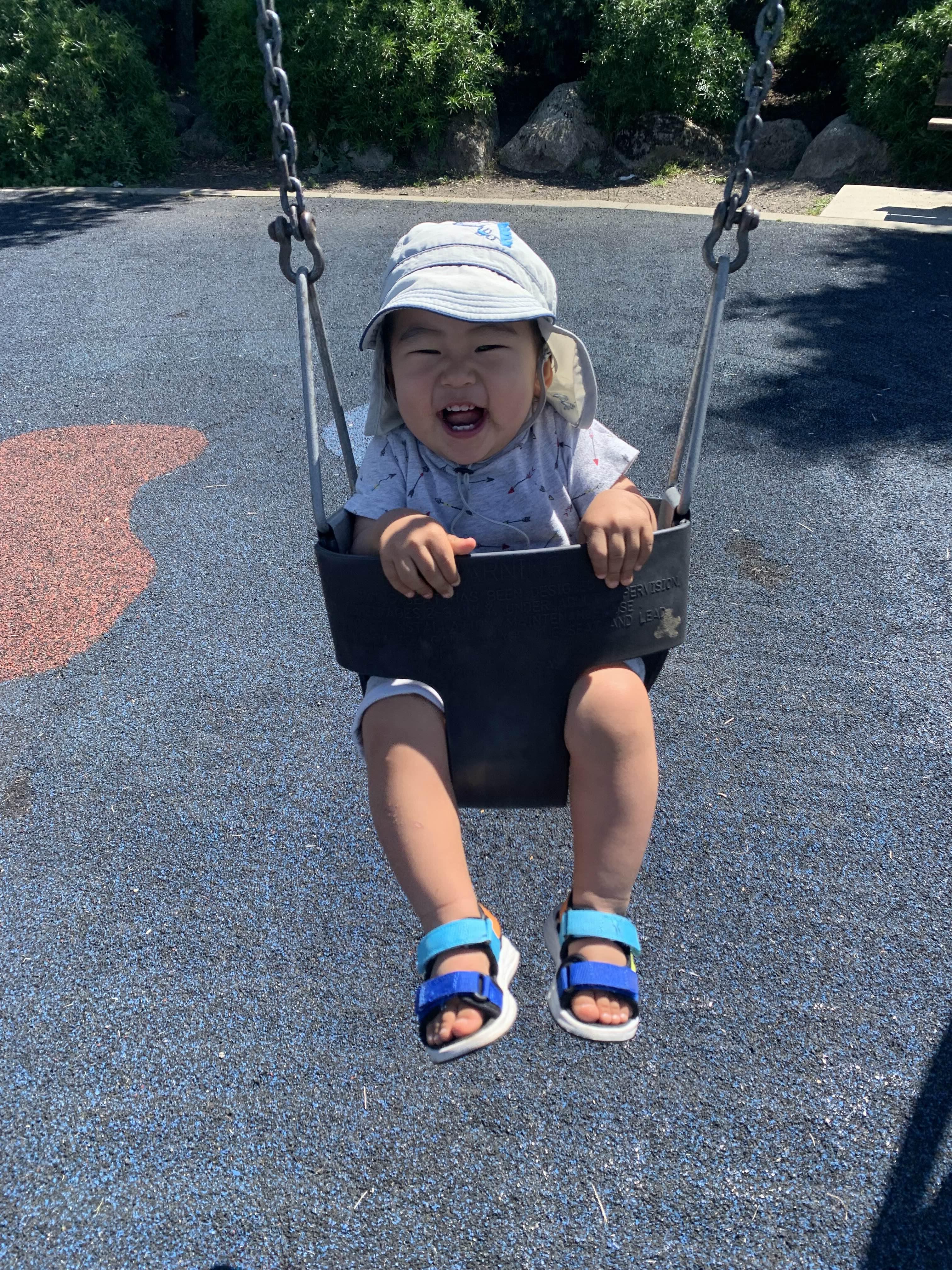 오랜만에 타니까 신나는 그네! 이런 미소를 보면 안 태워줄 수 없지! 아빠랑 놀이터 나들이 너무 즐거워!!