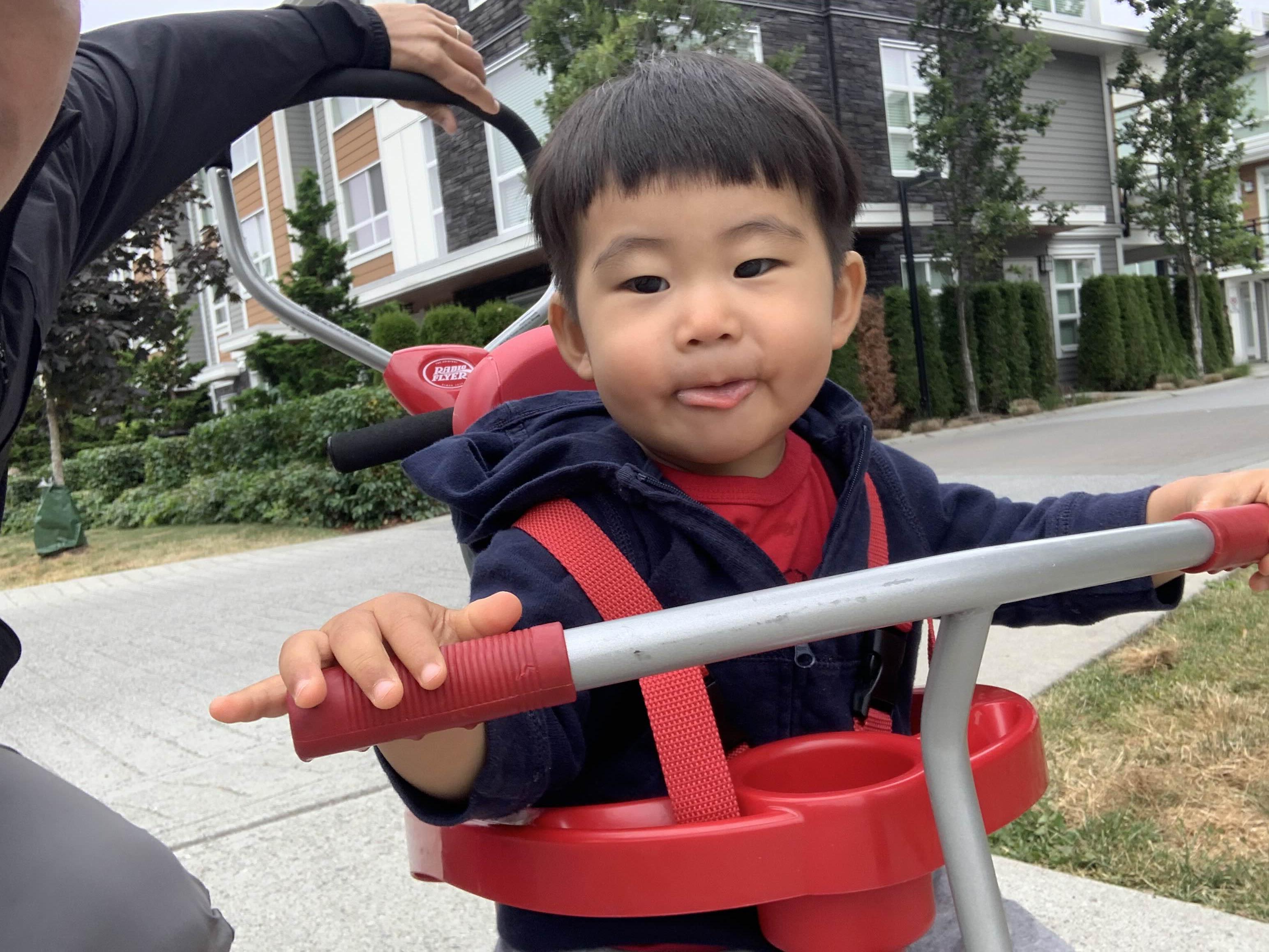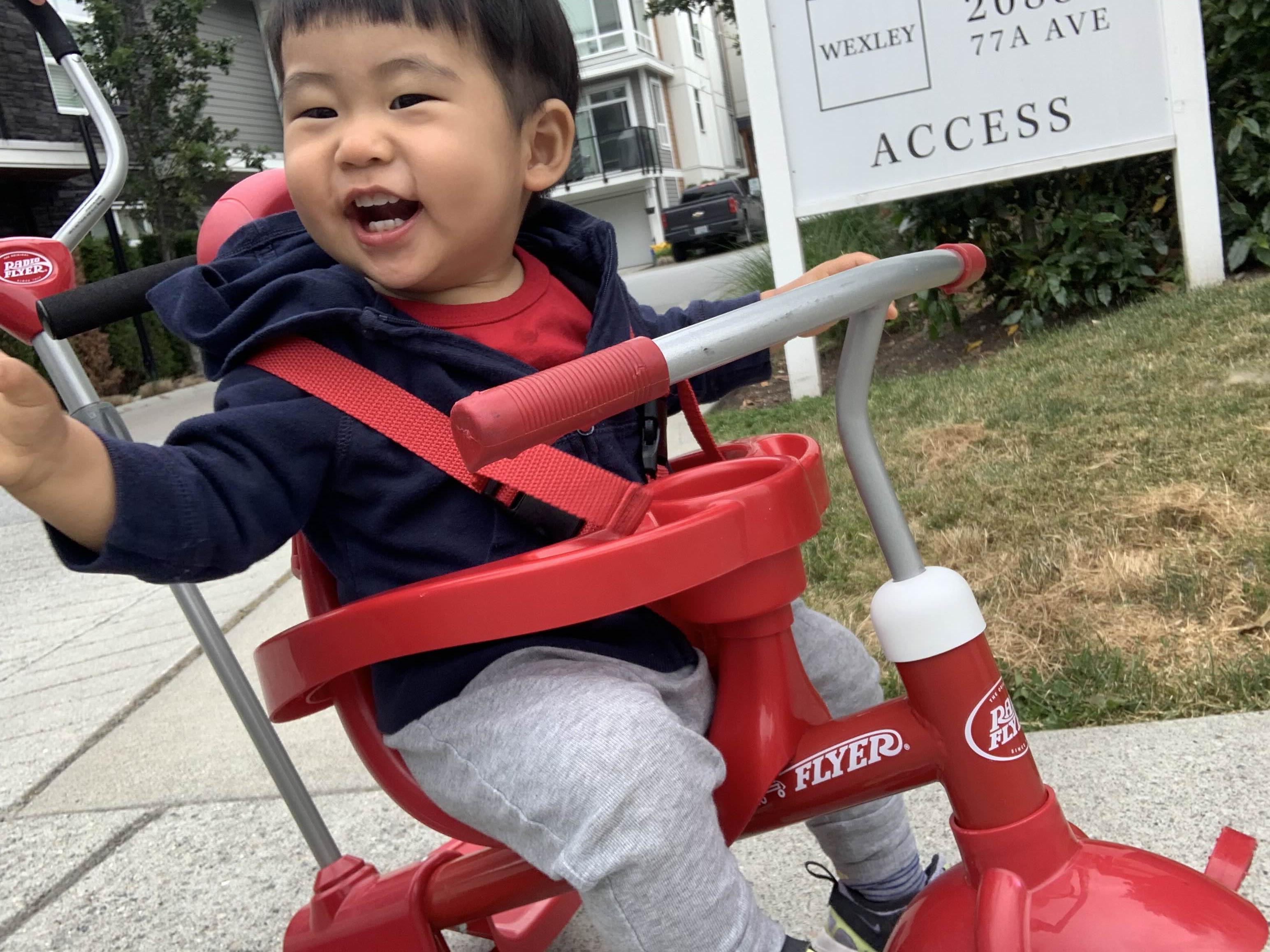 처음으로 유모차가 아니고, 자전거를 타고 나갔어요!! 놀이터 가는 길은 원래 신나는 데... 자전거 타니, 신남이 두배!!!