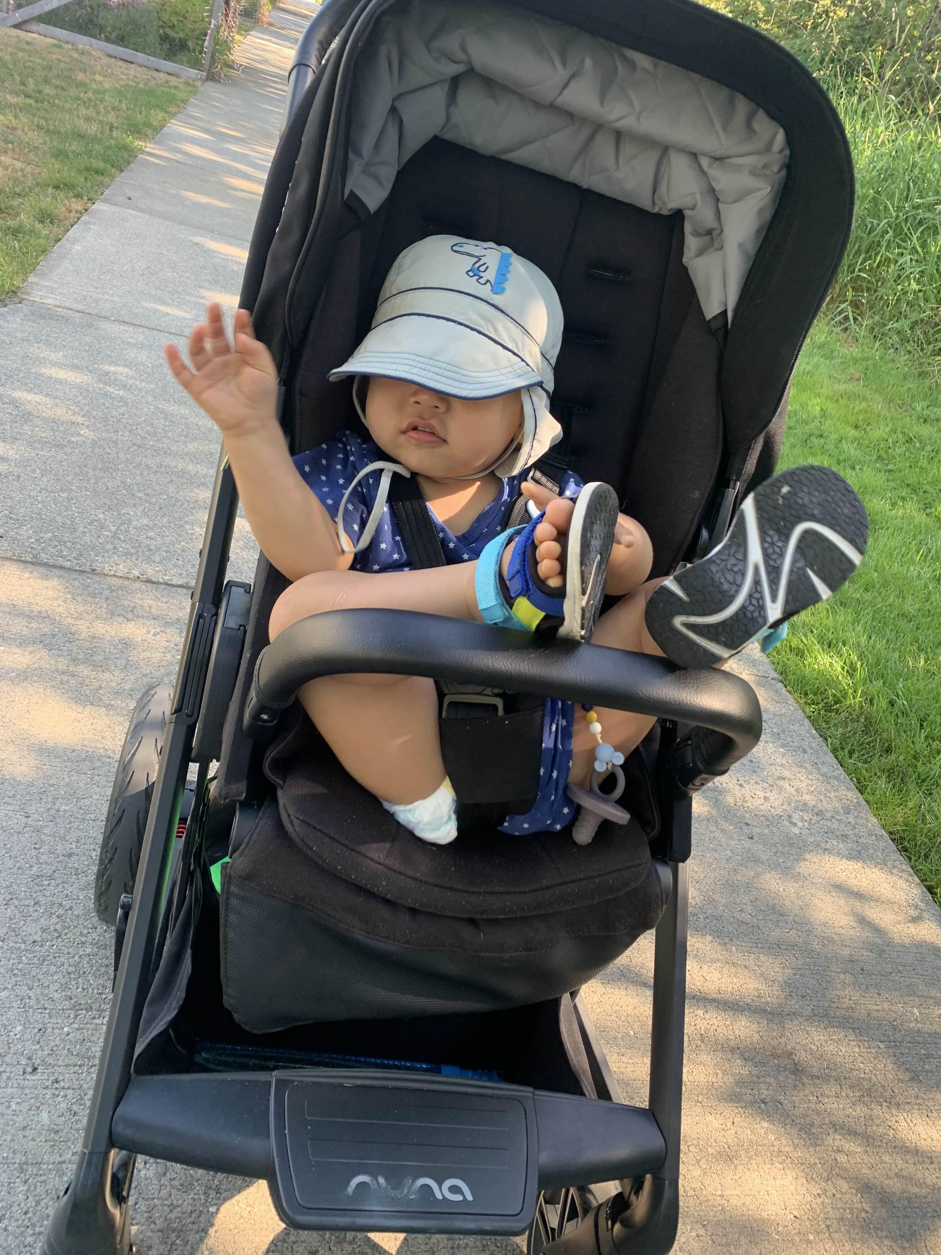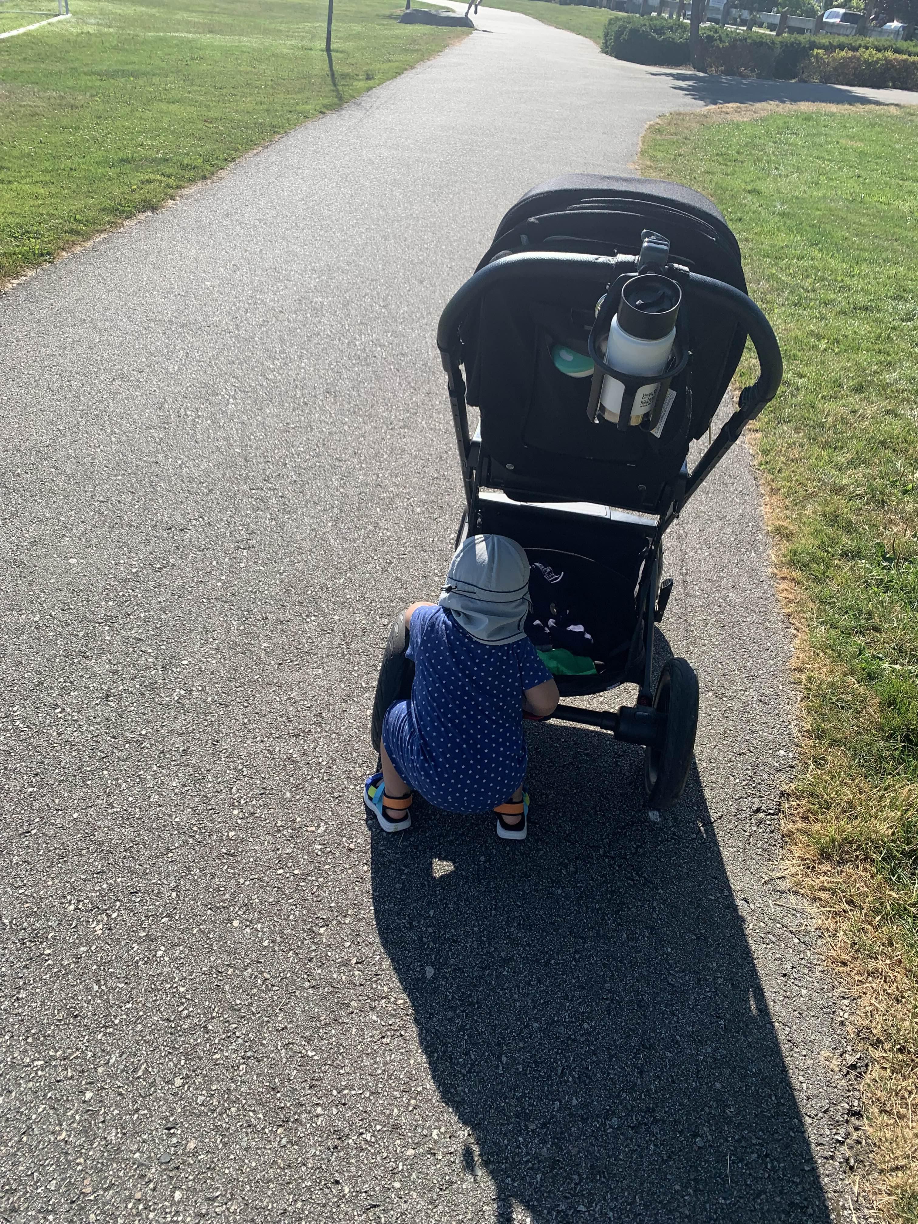 자기는 유모차 안 타고, 밀겠다는 아들... 결국 아빠한테 강제 연행당해서 유모차 태움 당해서 낮잠 재움 당했데요.. 두 시간 자고 일어나서!