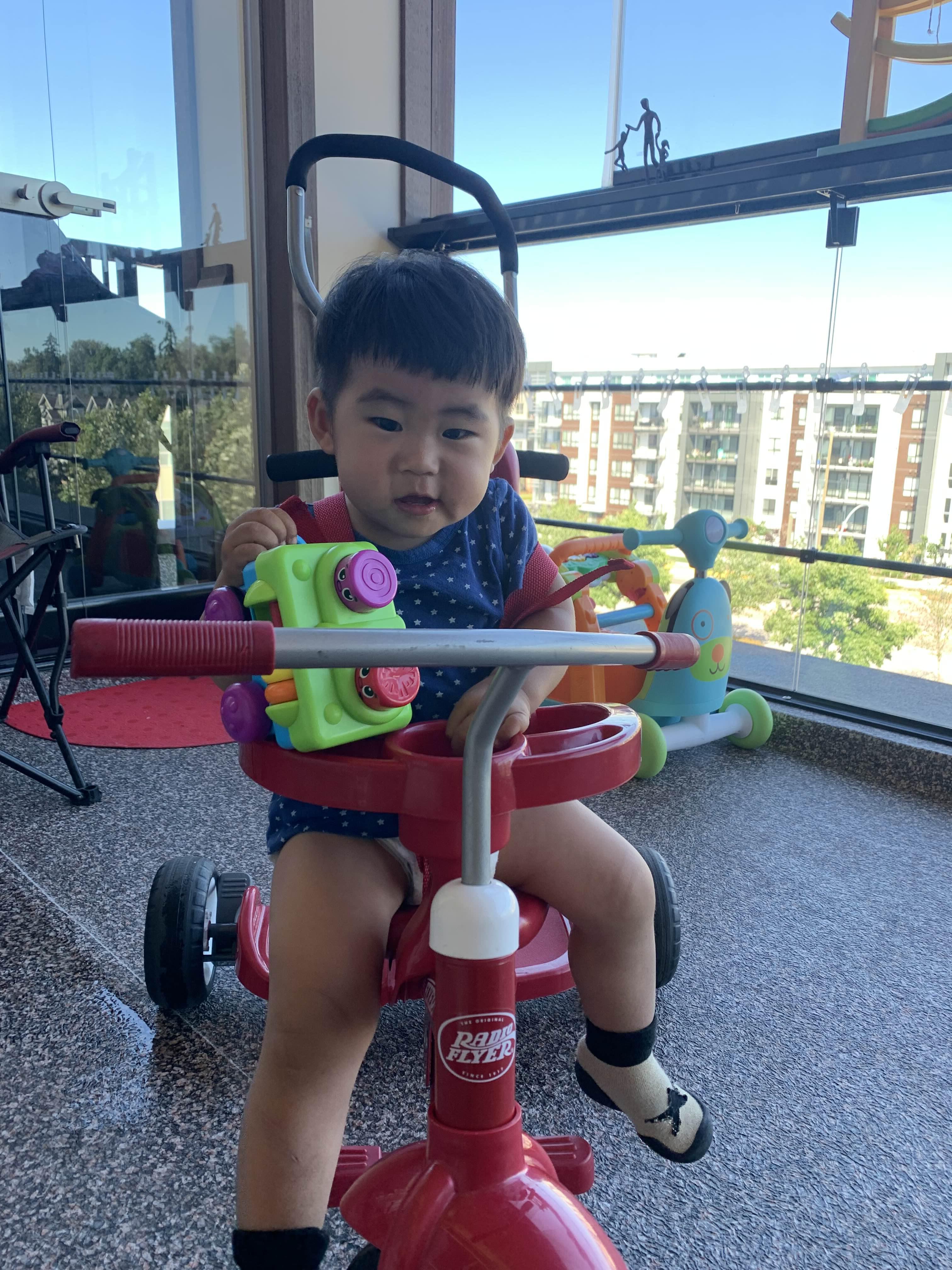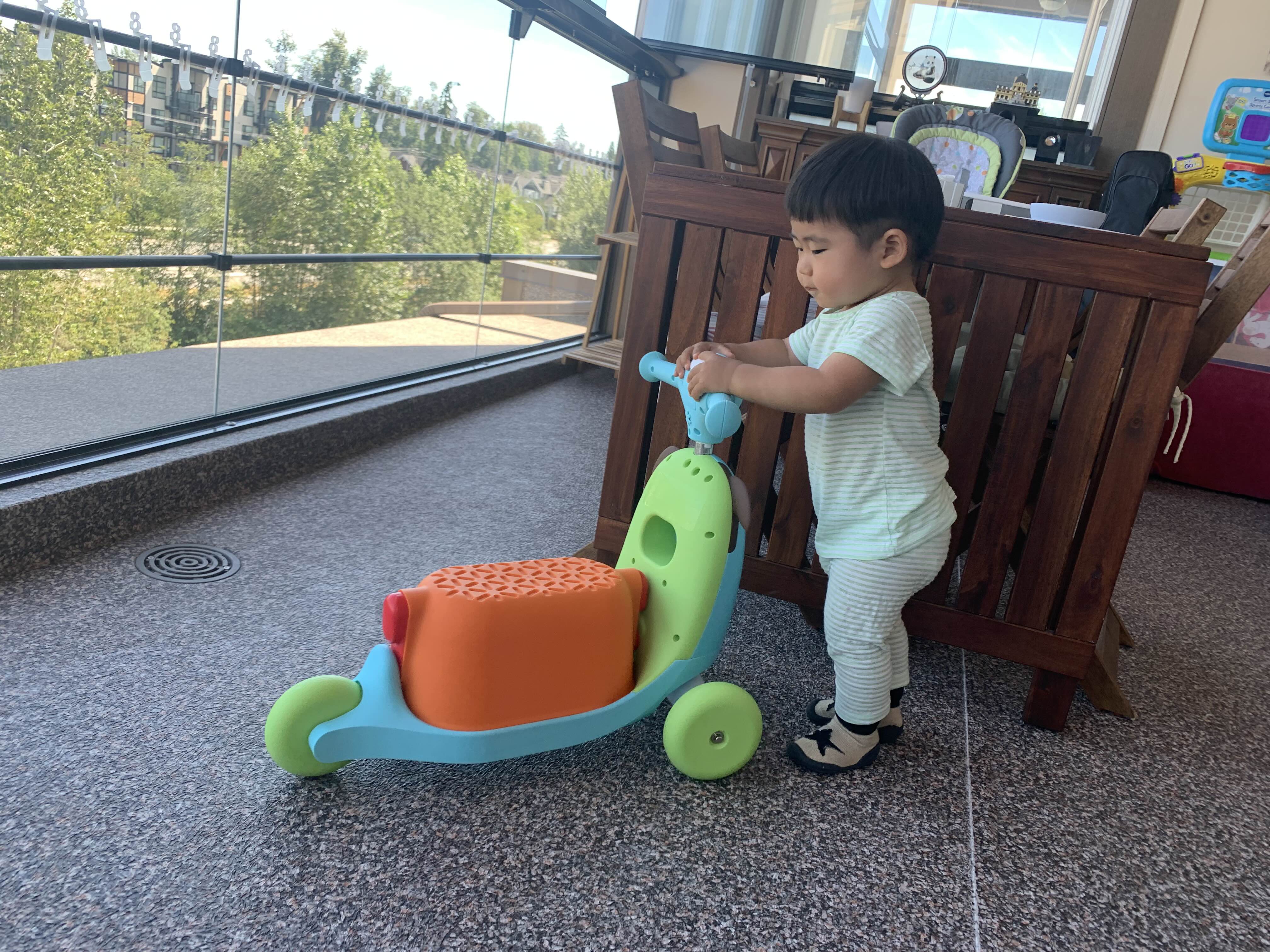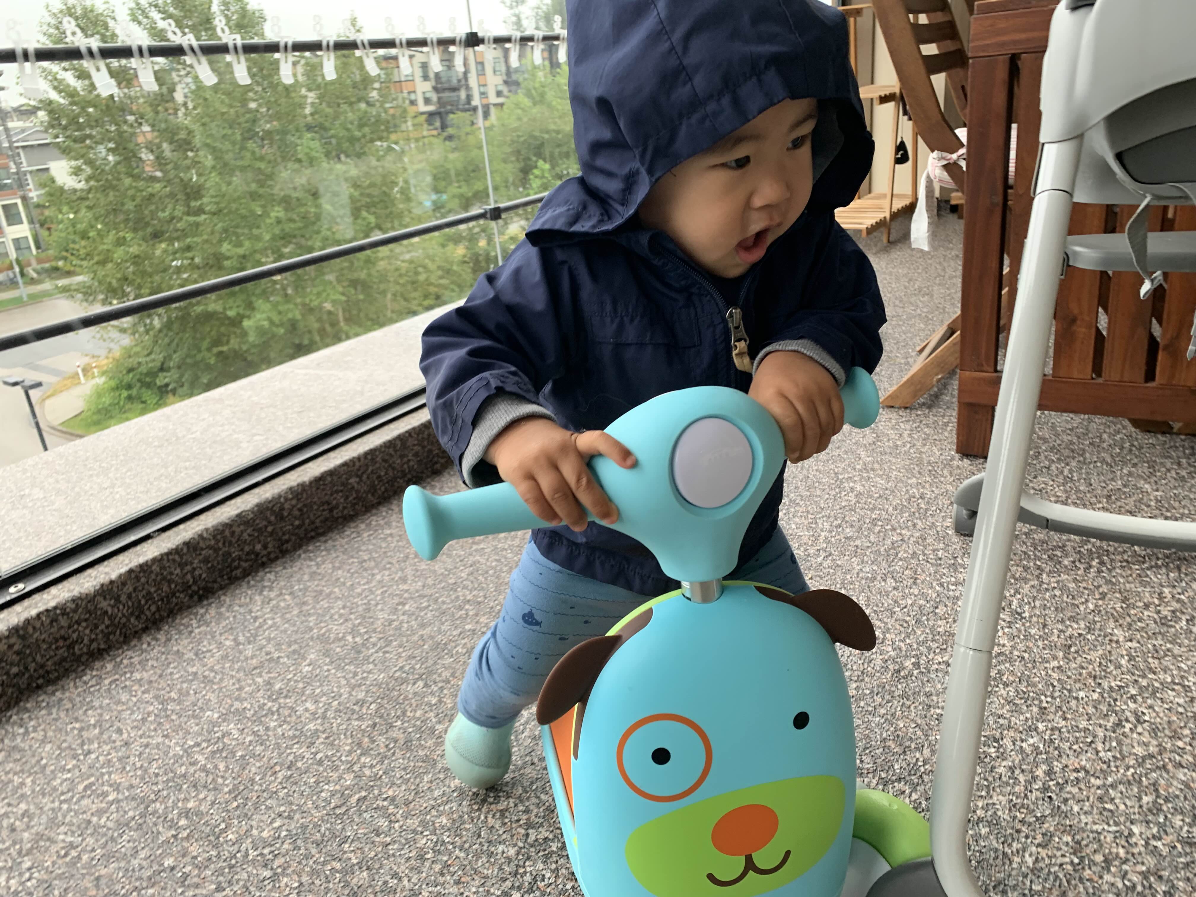 아빠가 태오 스쿠터를 발코니에 내놔줘서.. 더욱더 발코니가 좋아진 아들!!
