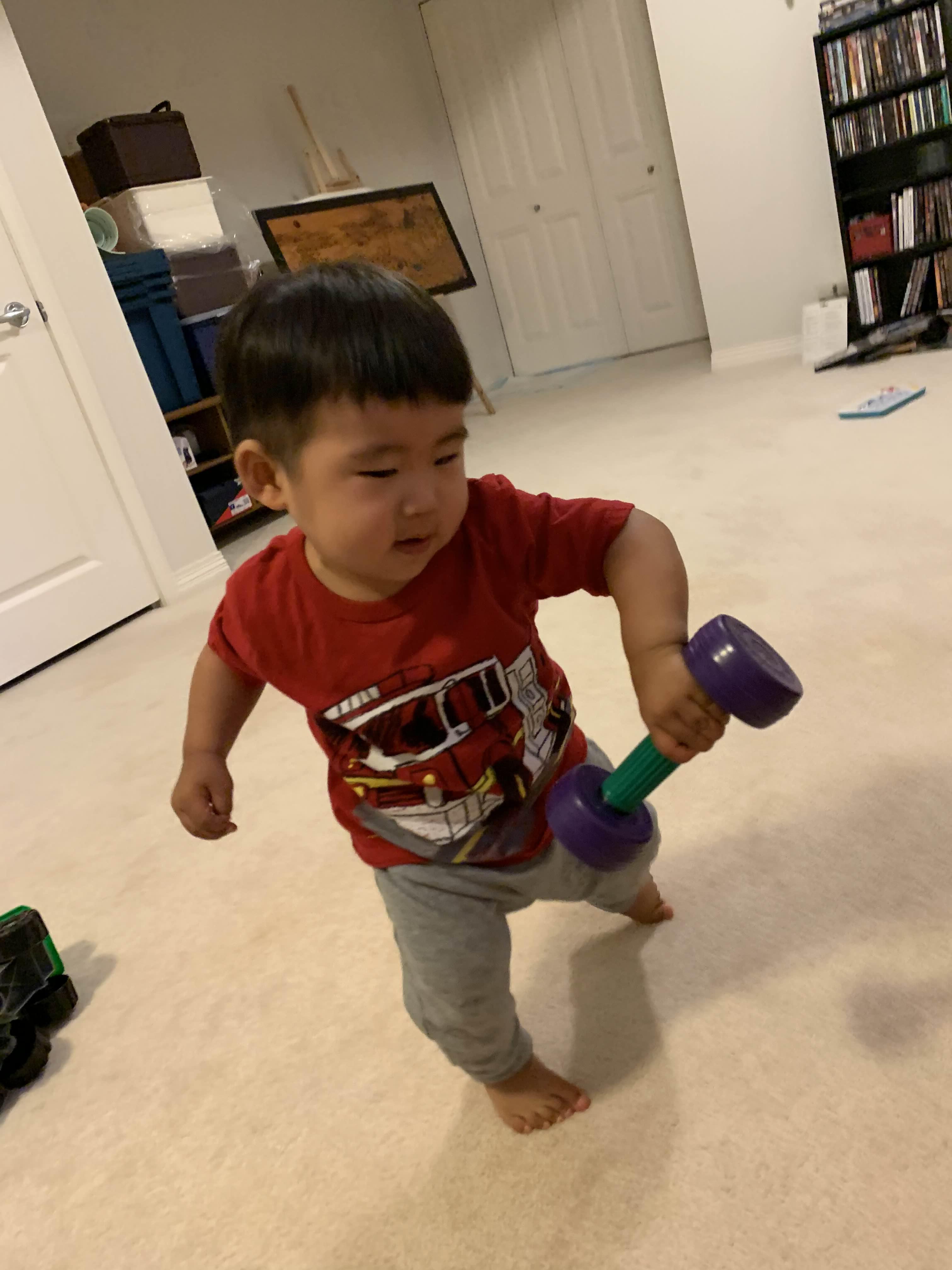 오늘도 어김없이 힘자랑하던 아들이라고 합니다.. 아빠 말로는.. 이걸 들어 올리는 아이는 태오가 유일했다고... 엄ㅁㅏ.. 조금 창피해지려고 그래...