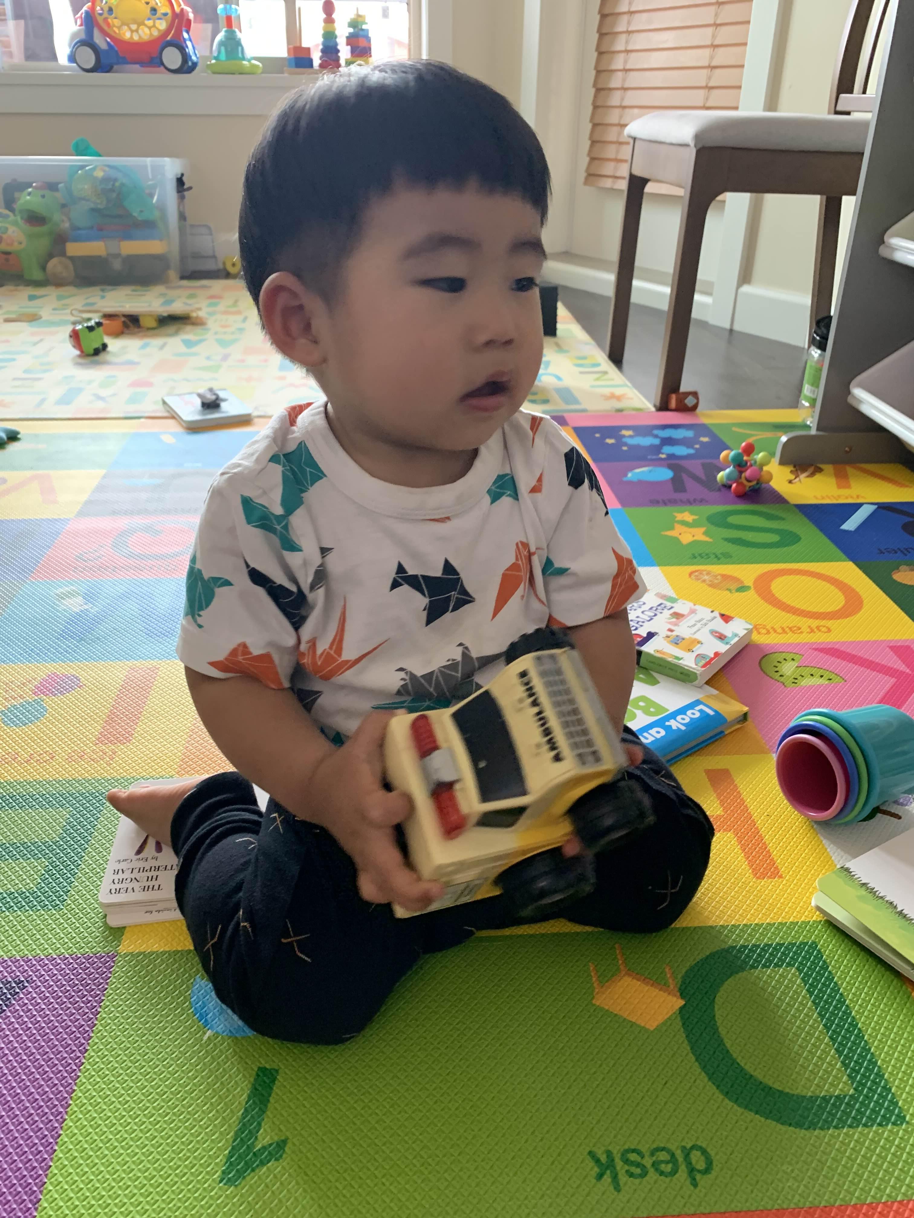 태오의 놀이방에서 제일 좋아하는 소방차 셔츠를 입고 몹시 신난 아들!