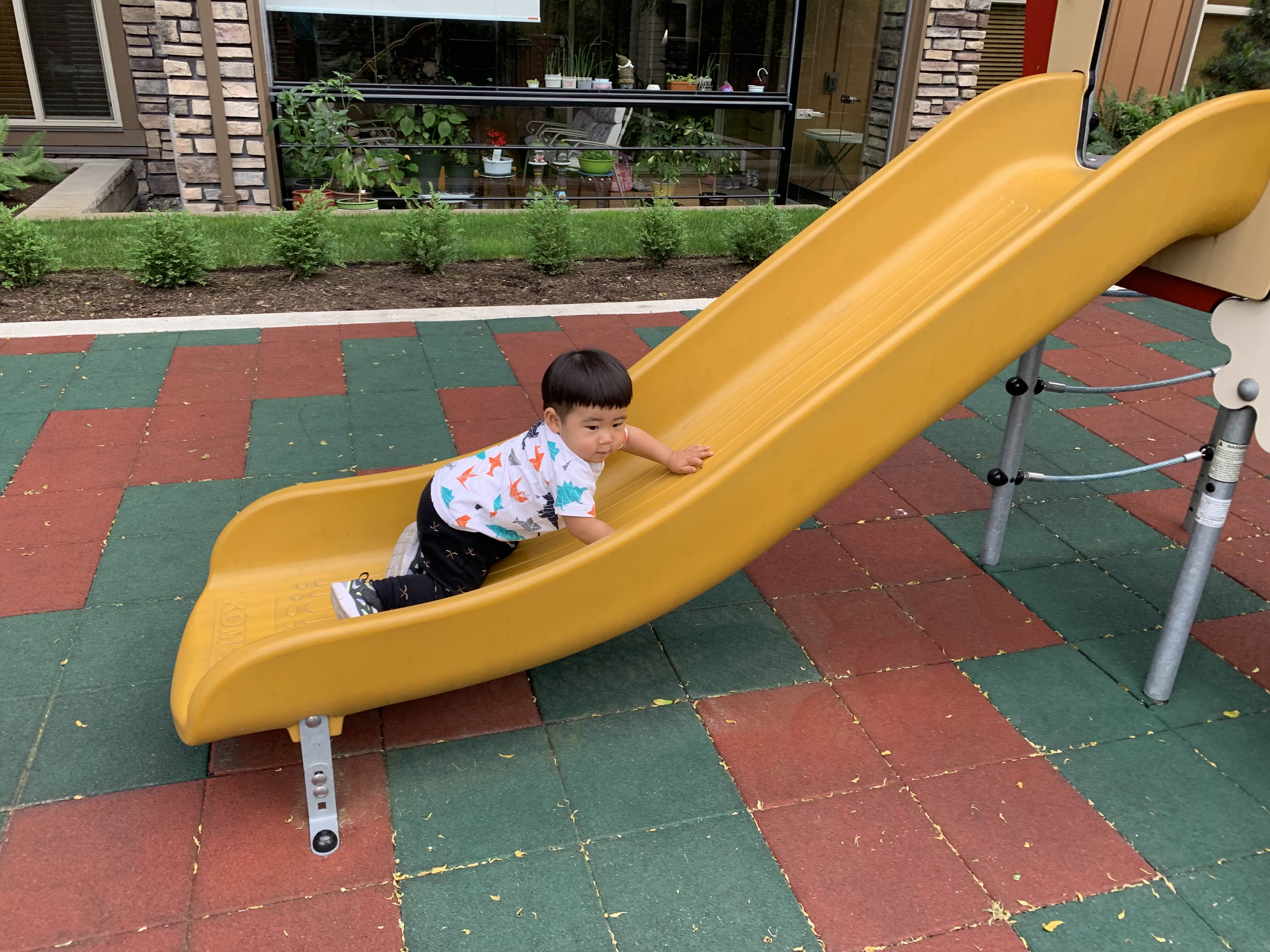 미끄럼틀은 거꾸로 올라가야 제맛이지! 힘센 태오는 이 정도는 식은 죽 먹기라며 영차 영차 올라가요~~