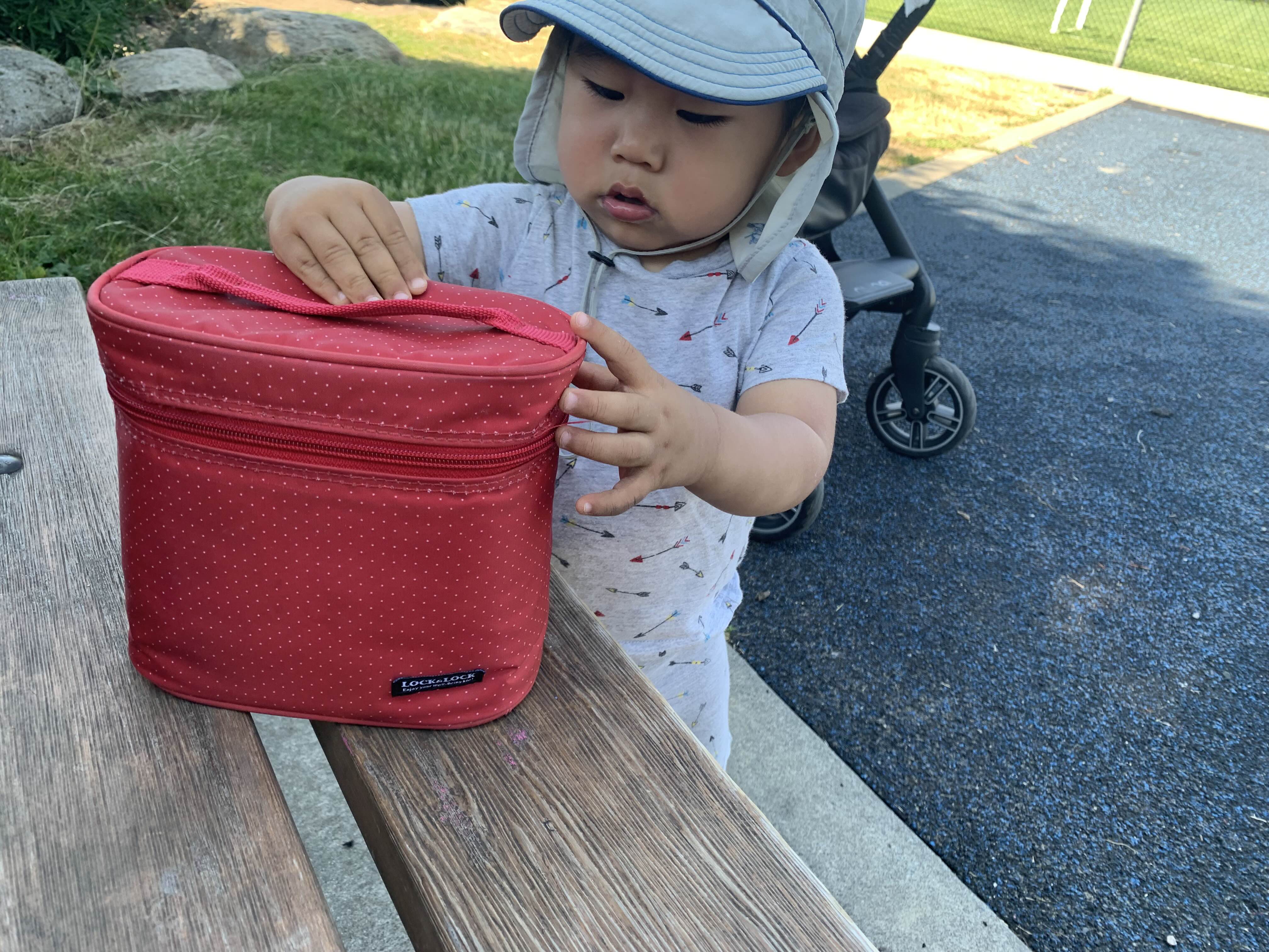 심지어 아빠는 태오 간식도 싸가지고 집 앞 놀이터 갔어!! 이거 태오 간식 가방이에요! 간식 주세요 하는 아들..
