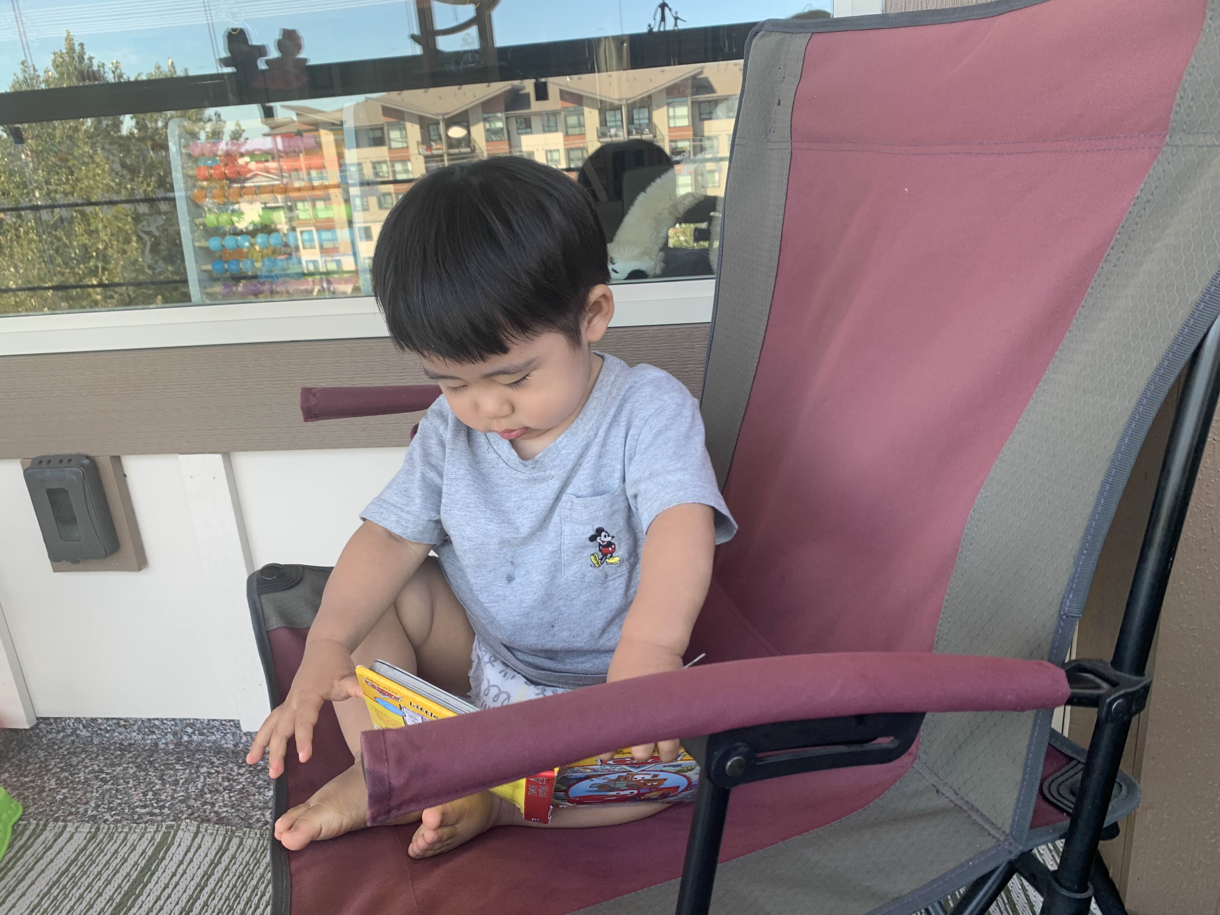 엄마가 캠핑 의자에 앉아서 태오 보고 있다고, 자기도 의자에 올라와서 책을 보겠다는 아들.. 이제는 엄마 도움 없이도 혼자 의자에서 오르락 내리락을 아주 잘합니다!! 언제 이렇게 어린이가 되었는지 말입니다..