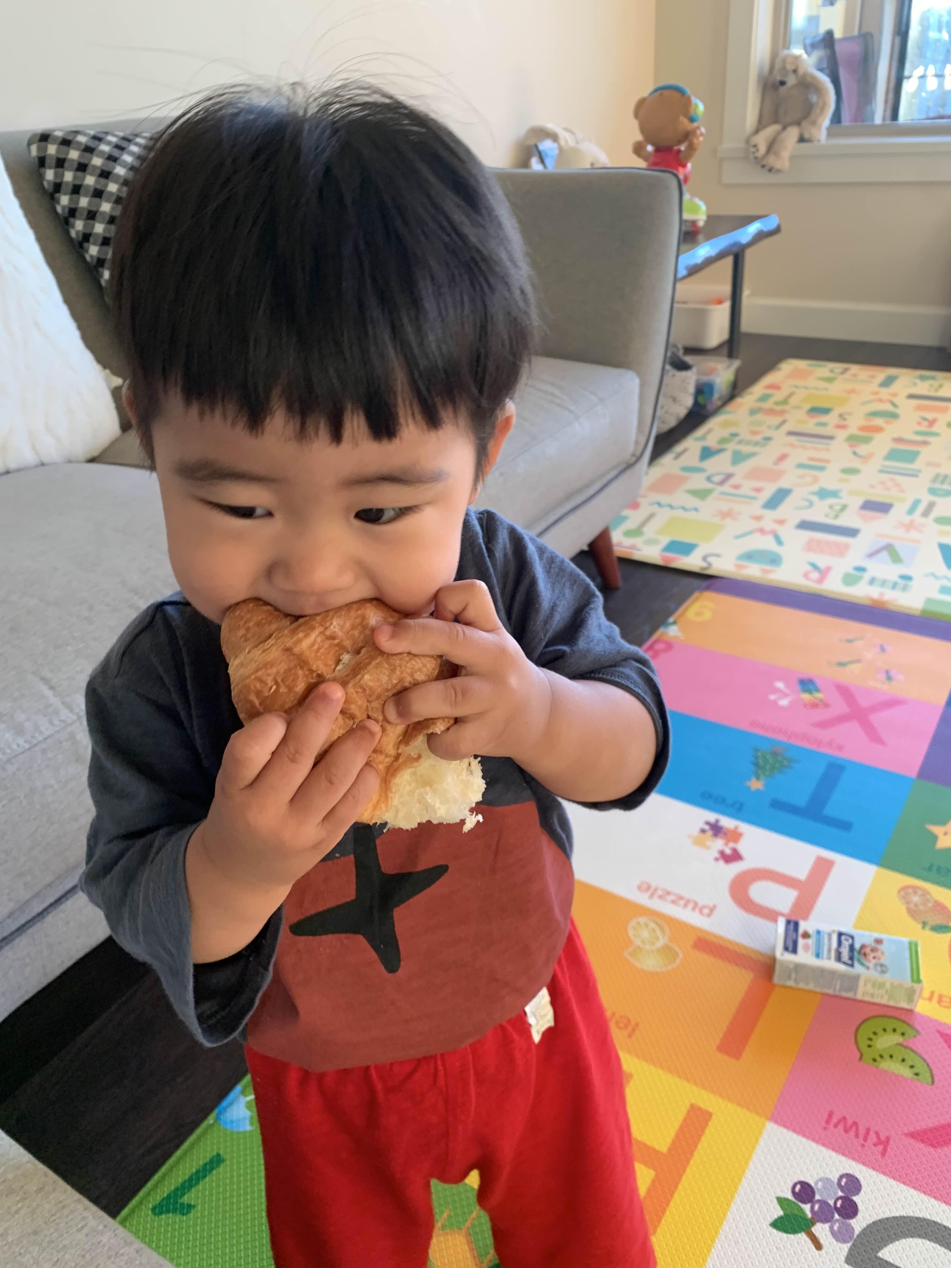 조용히 냠냠 인생 첫 크루아상을 맛본 아들..