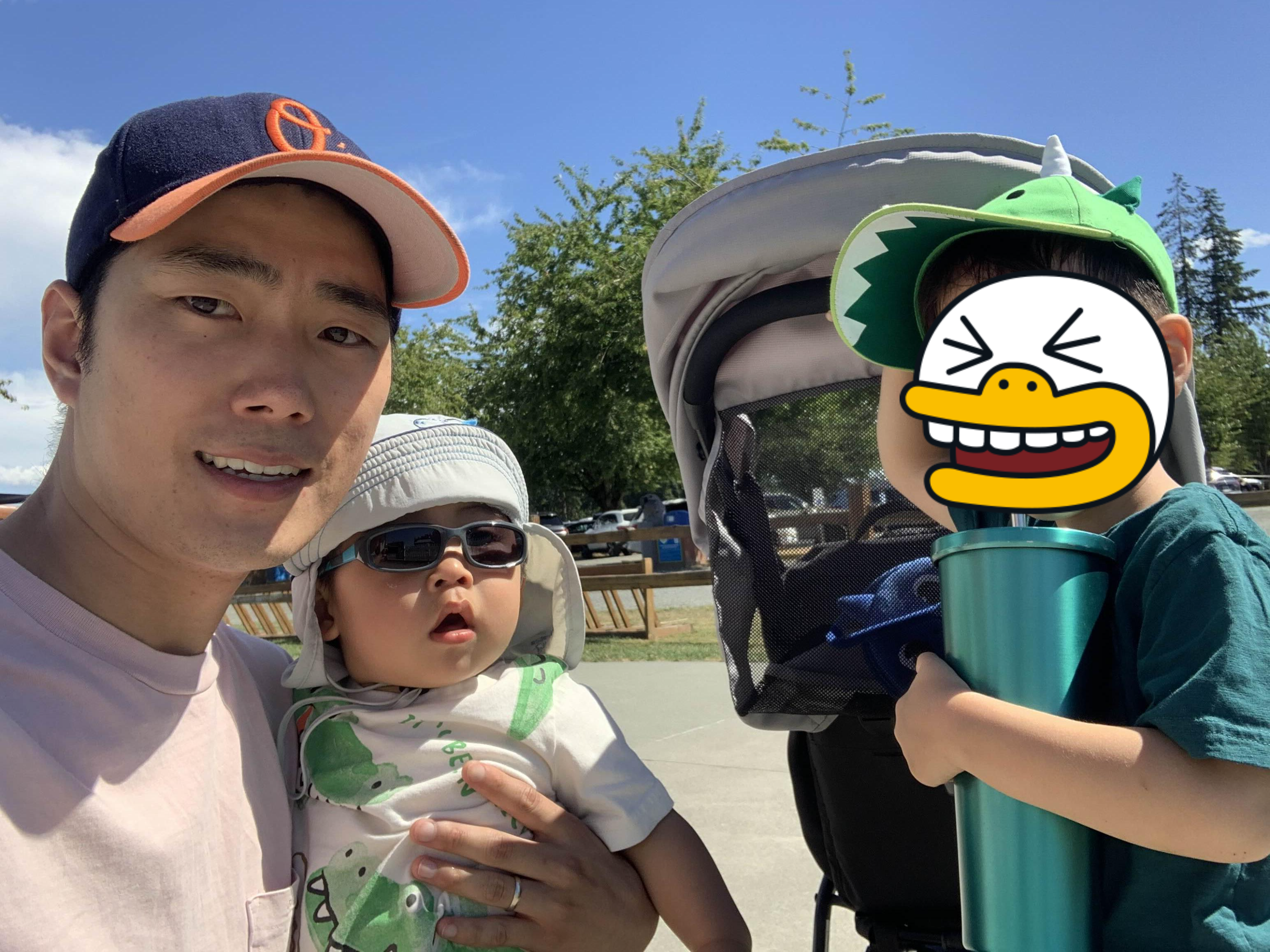 돌아가는 길에 셋이서 가족사진 남기기! 오늘 아침 너무 즐거운 일들이 많았어요!!