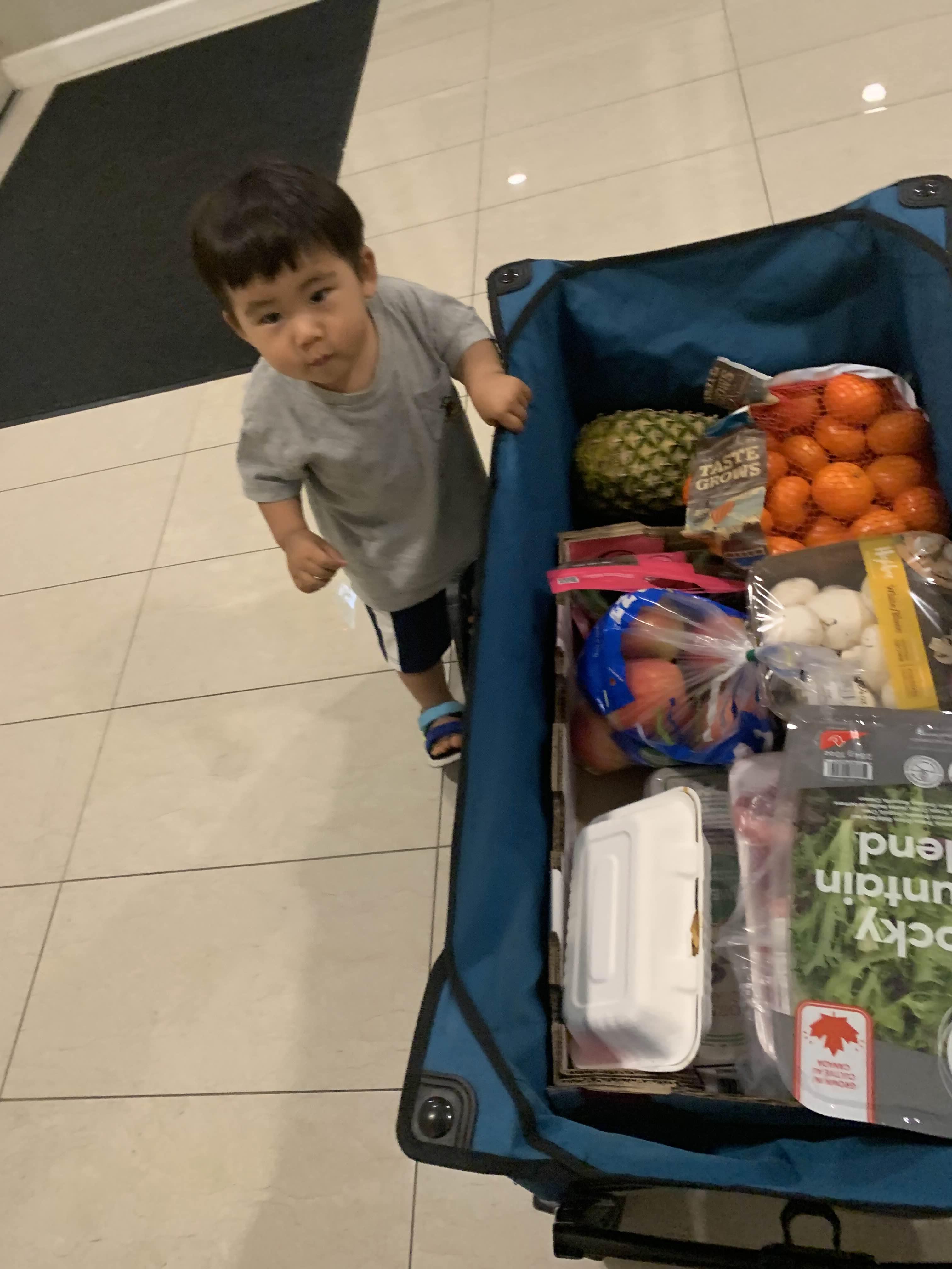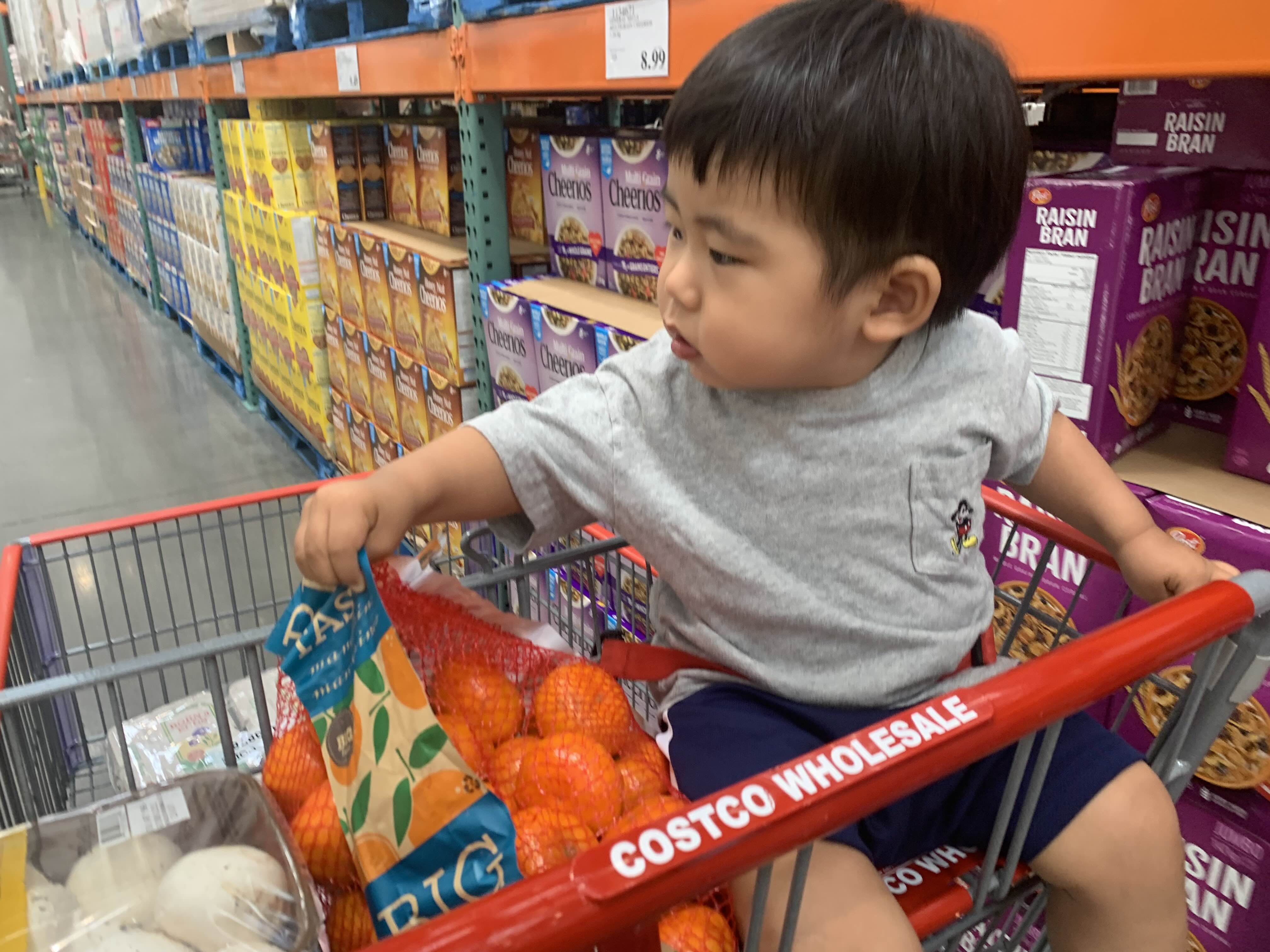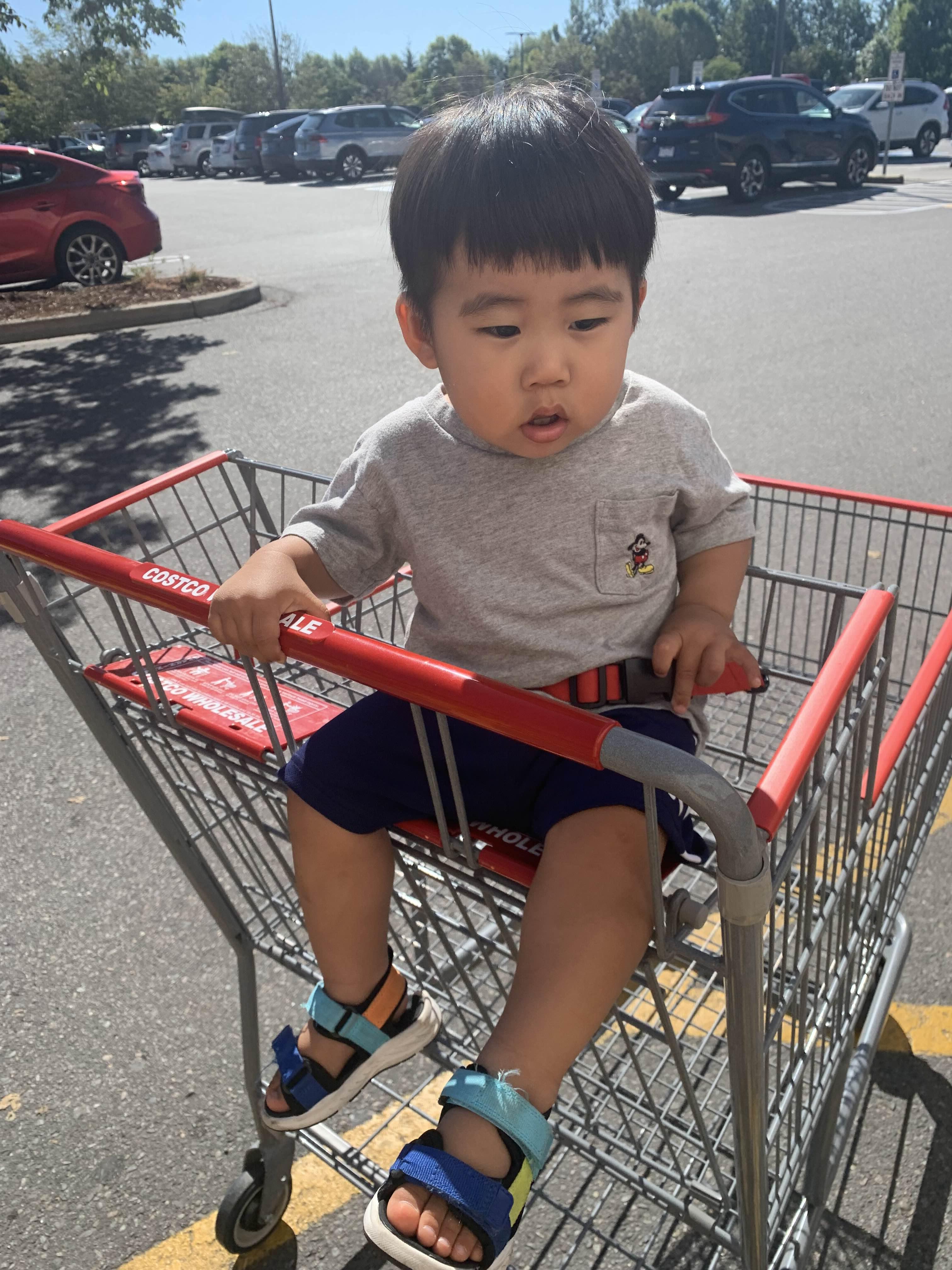 여기저기 두 리번 하기 바쁘지만.. 나중에는 안 내려 준다고 짜증 내신다.. 코스코에는 큰 카트들이 너무 많이 돌아다녀서 태오가 걸어 다니긴 적합하지 않지..
