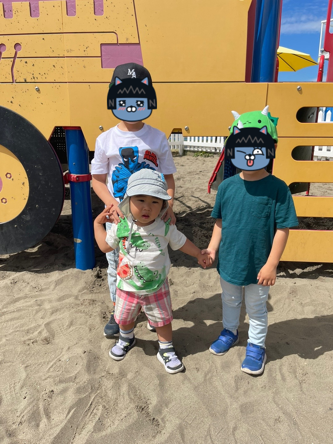 마켓 앞에는 놀이터가 있어서, 이렇게 미니 보트에서 선장 놀이도 하고요!