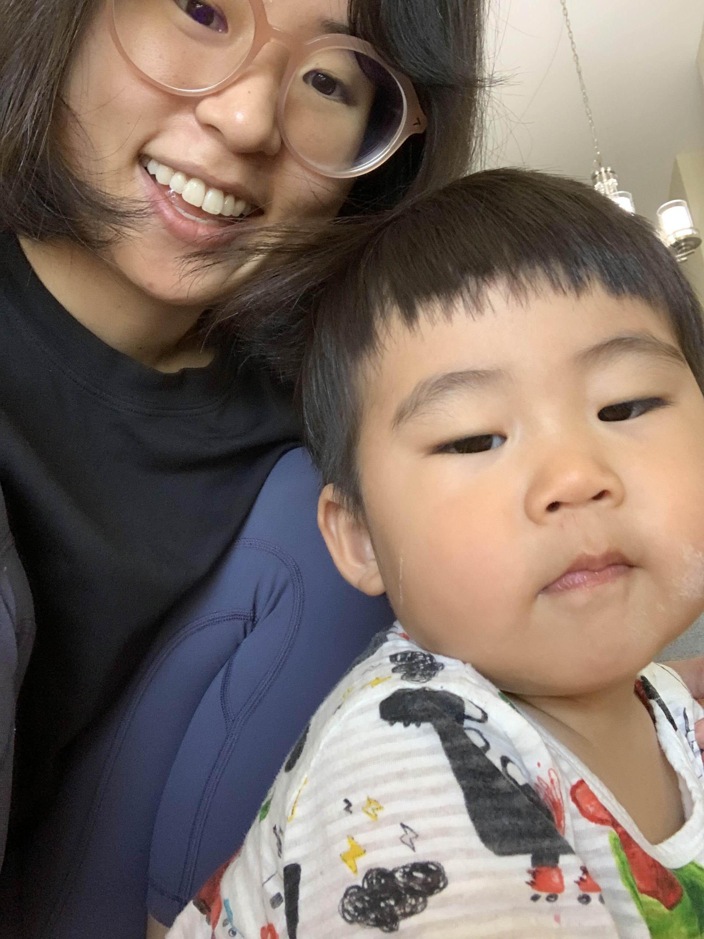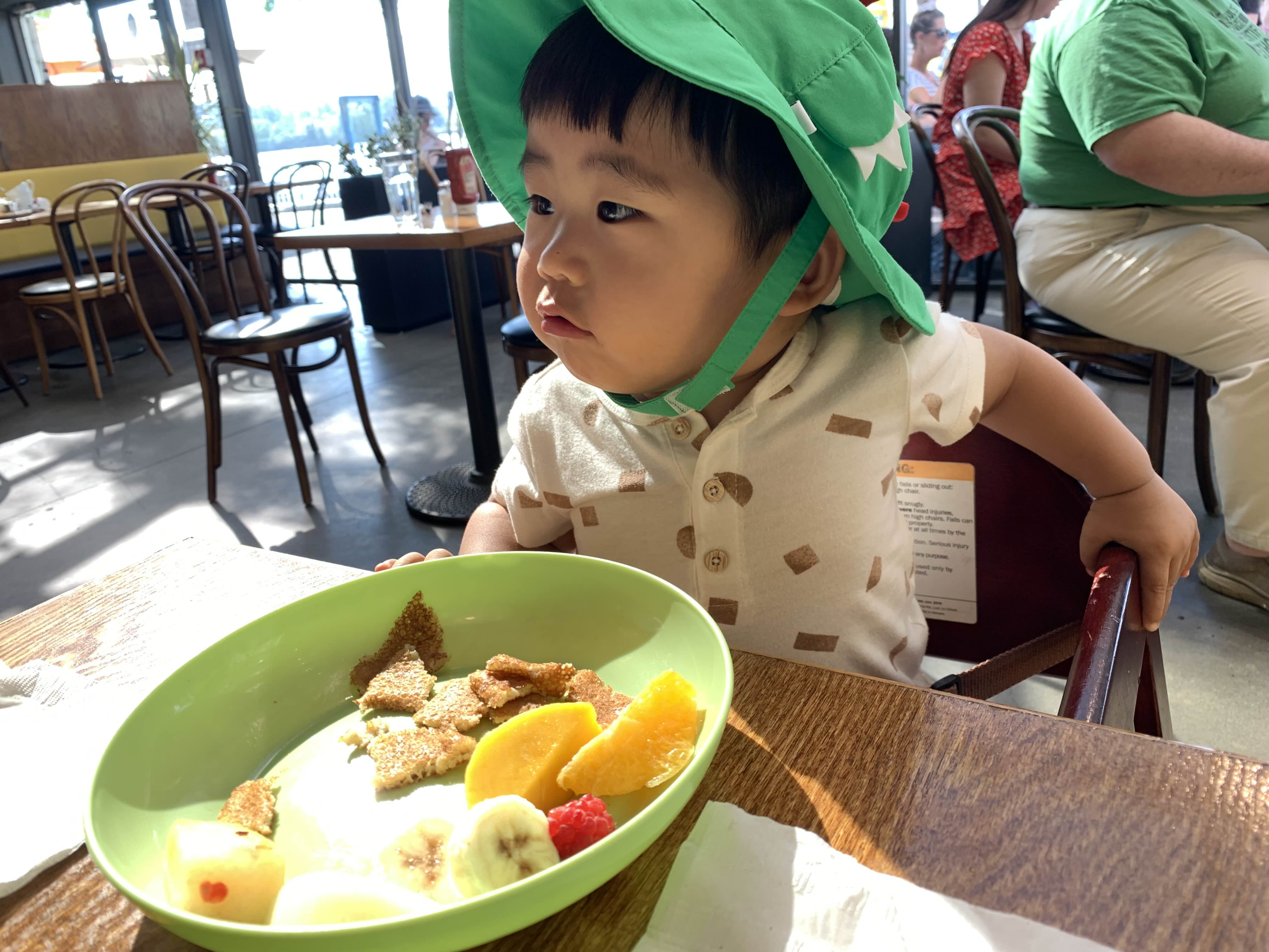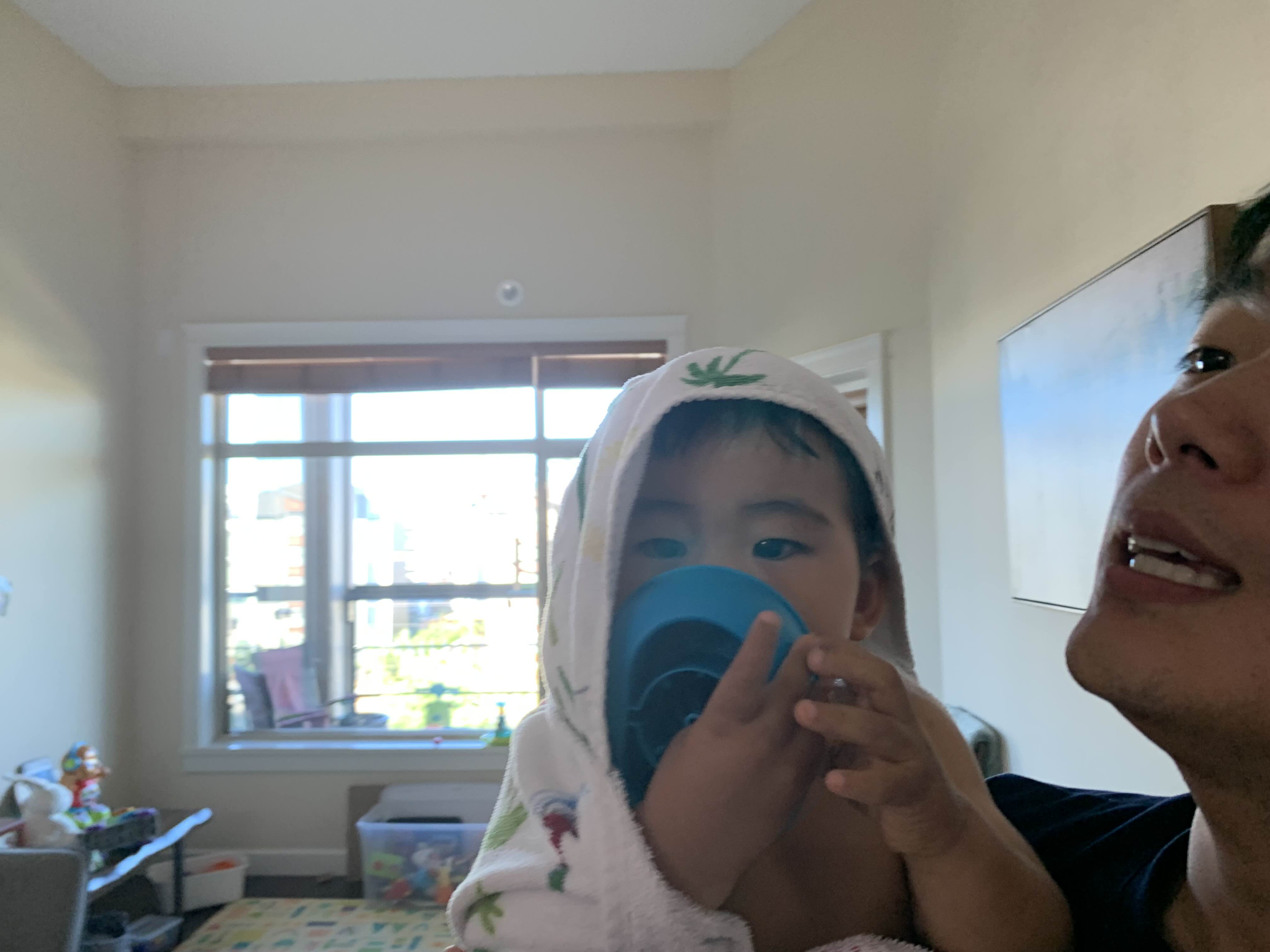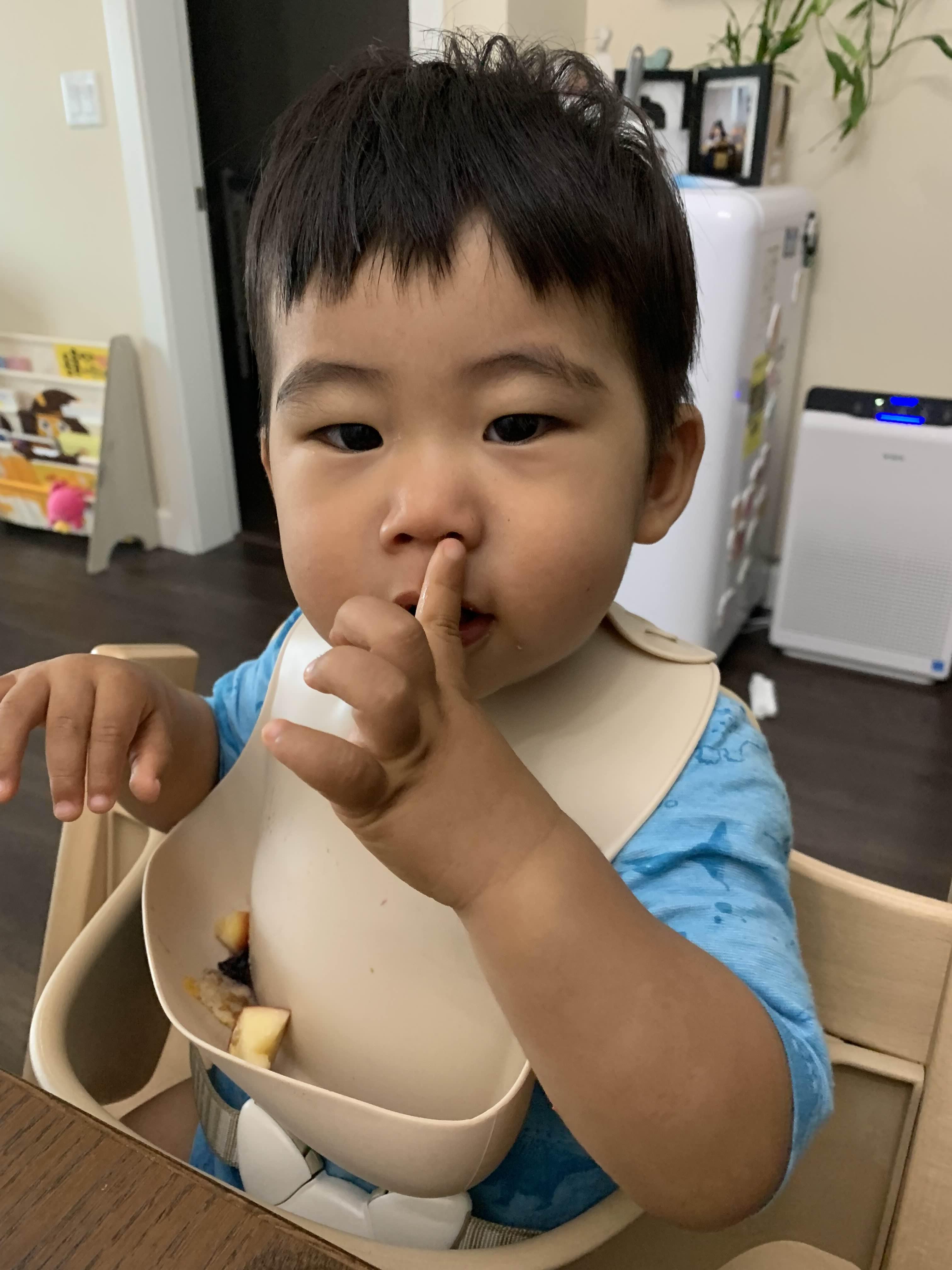 굿모닝 아들.. 엄마가 부스럭부스럭 잠에서 깨고, 아빠가 아침을 준비하는 사이.. 아빠가 아빠 아침으로 식탁 위 접시에 둔 크루아상을 조용히 슬쩍하신 아들..