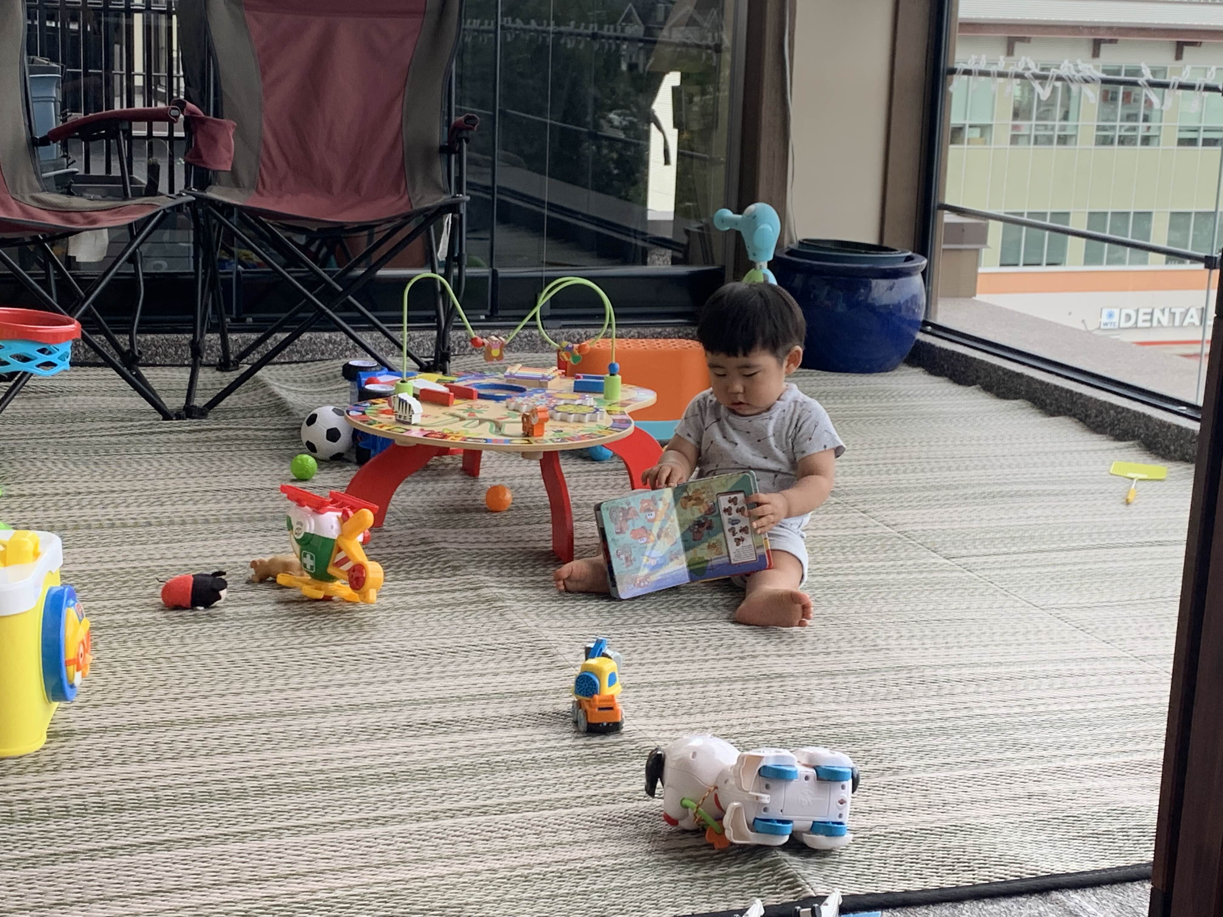 요즘 혼자서도 잘 노는 아들! 특히 발코니에서 혼자 조용히 잘 논다~ 컸어 우리 아들 컸어!! ㅎㅎ