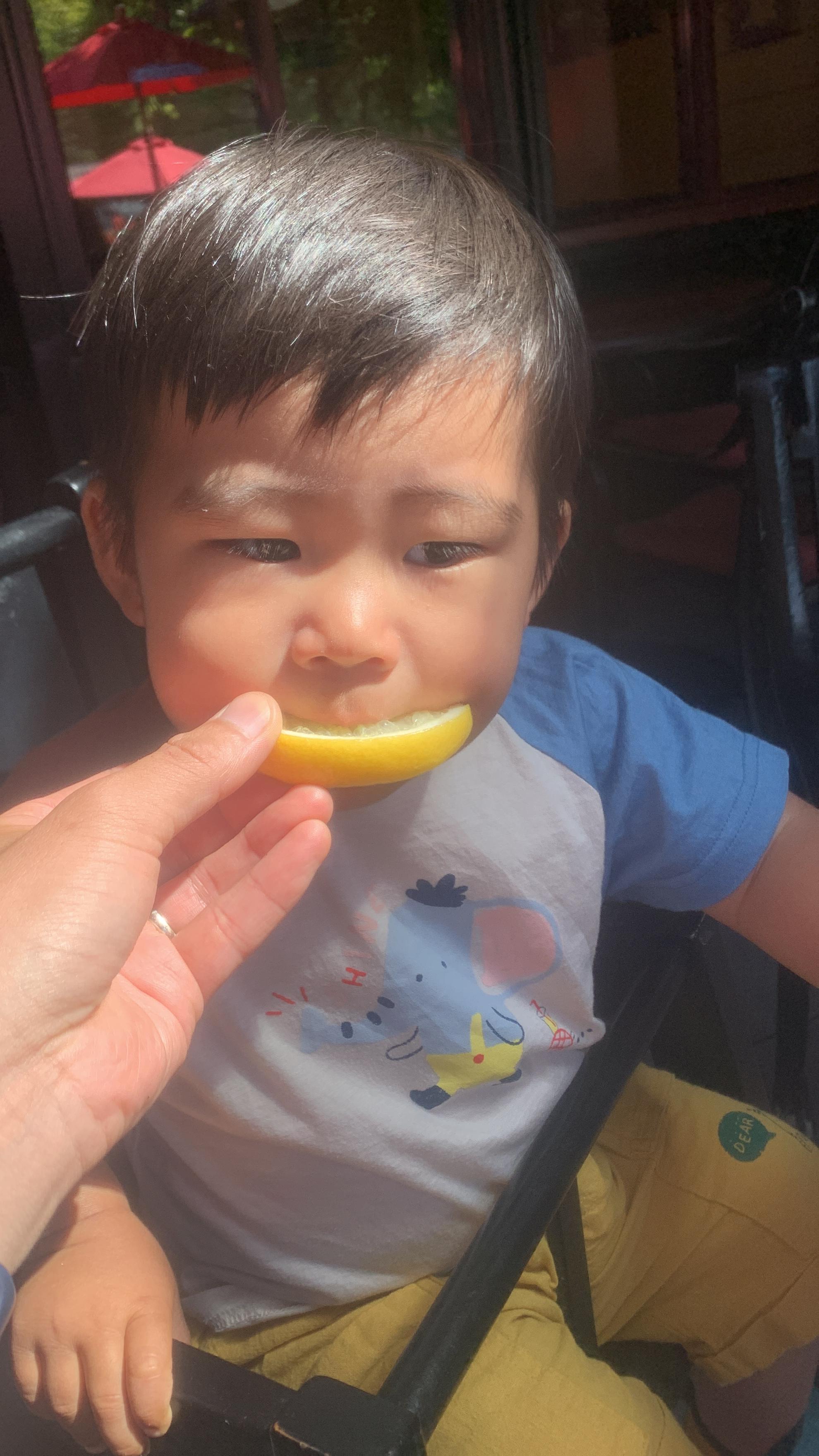 오늘 아빠가 점심 약속이 있어서, 태오도 같이 갔어요!! 레몬도 좀 얻어먹은 아들.. 생각보다 반응이 재밌지는 않았나 봐요! 왜냐면 태오는 뭐든 일단 먹거든요 ㅎㅎ