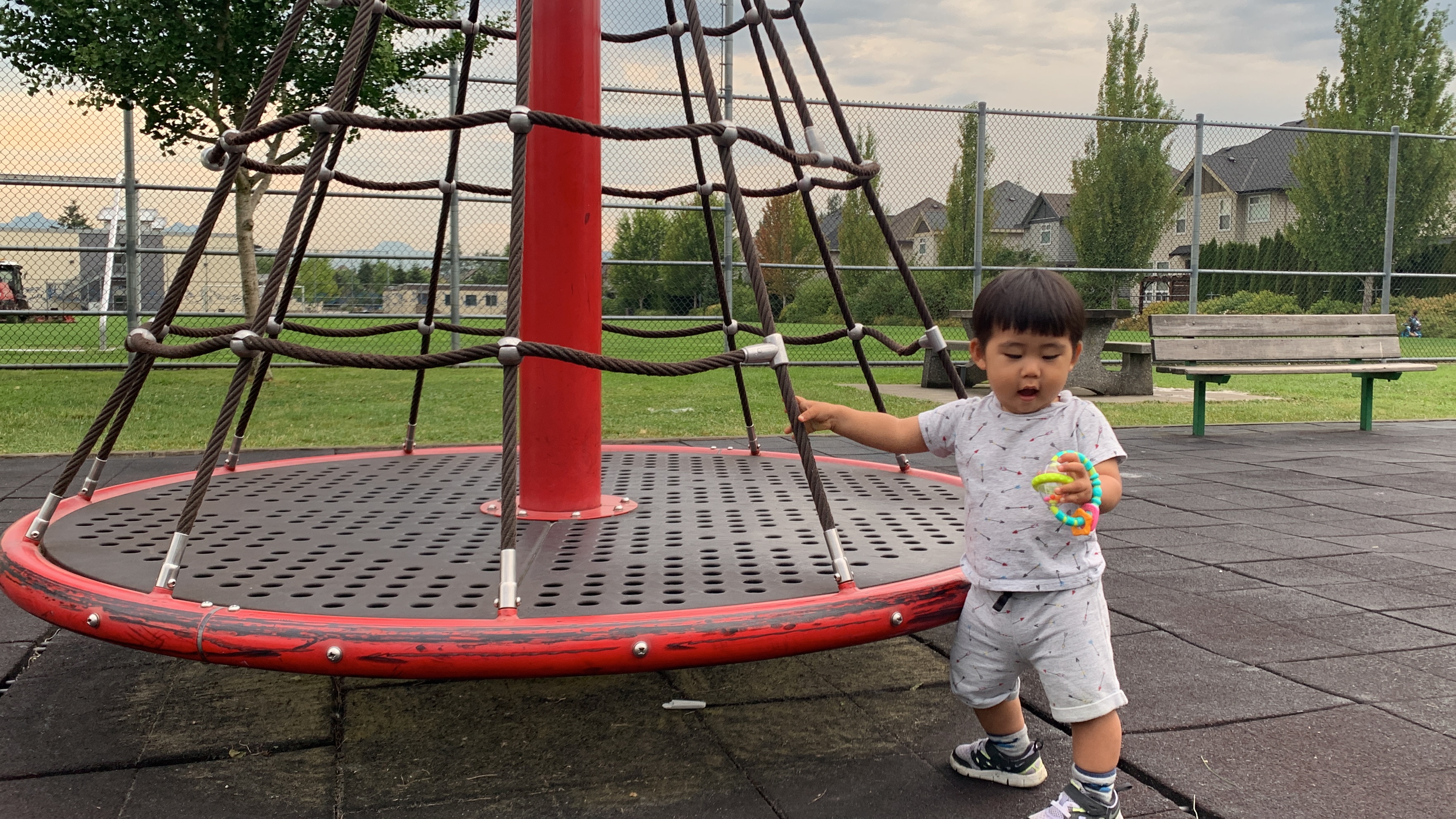 토요일 아침에 아무도 없는 놀이터에서 신나게 노는 아이는 우리 태오 밖에 없어요..