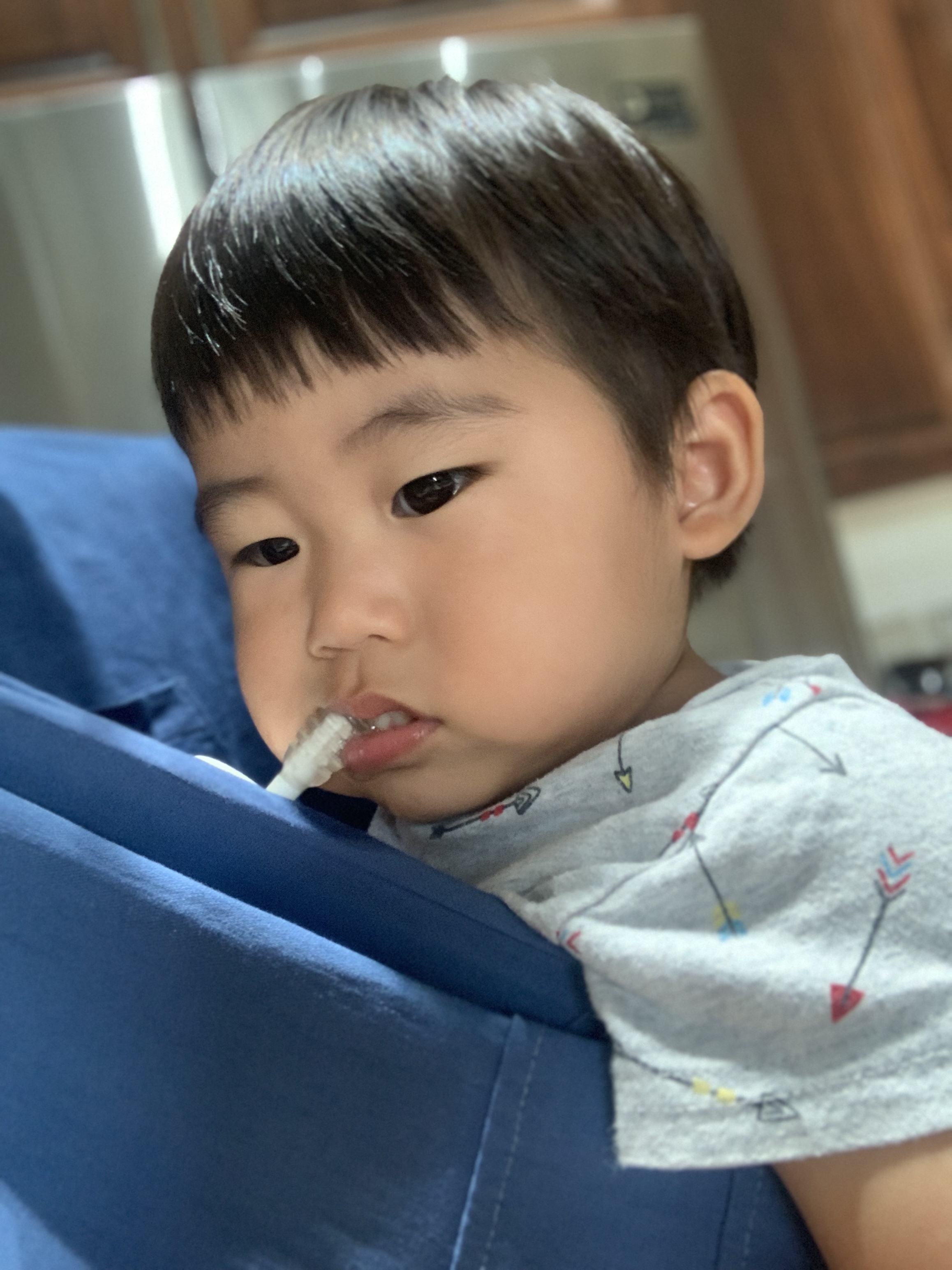할머니네서 신나게 놀고 온 아들.. 어서 쉬세요..! 진짜 자기 직전까지 열심히 노는 아들이라 이렇게라도 쉬는 시간을 만들어 줘야 해..