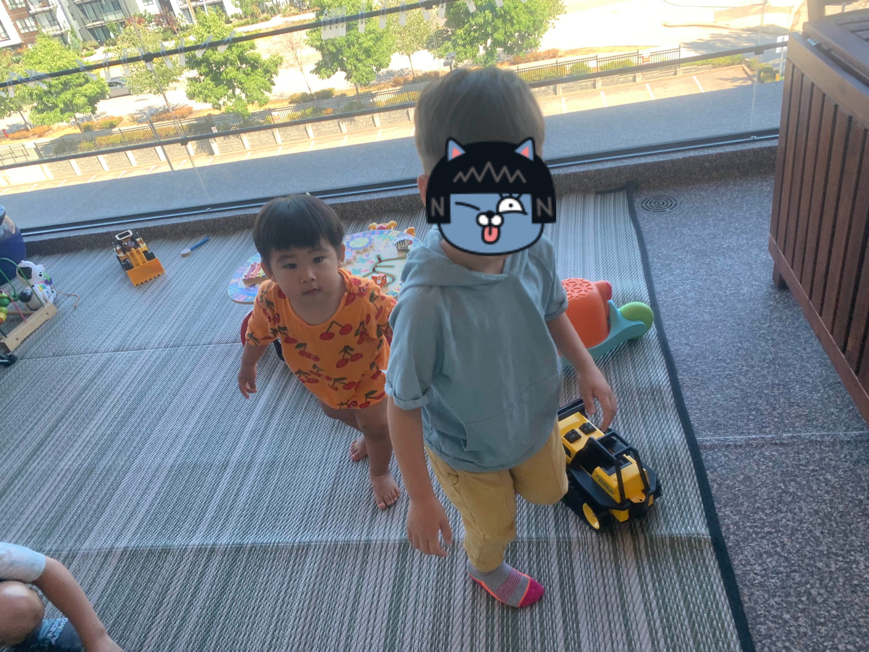태오는 아빠랑 놀이터로 출근..!! 저 장난감.. 어디서 난 건지 모르겠지만 결국 태오와 함께 집으로 왔다지... 어디서 찾은 거니 태오야??