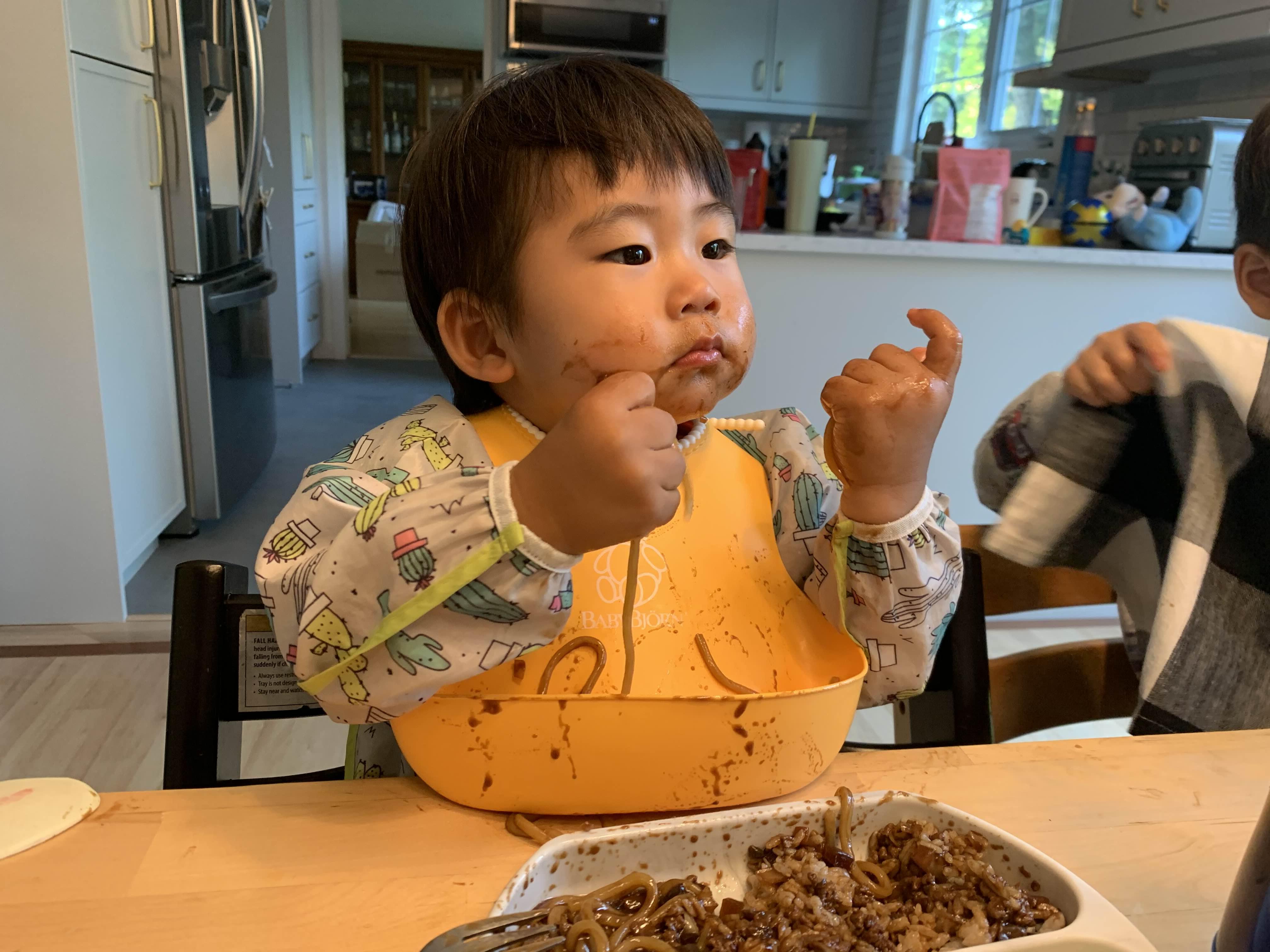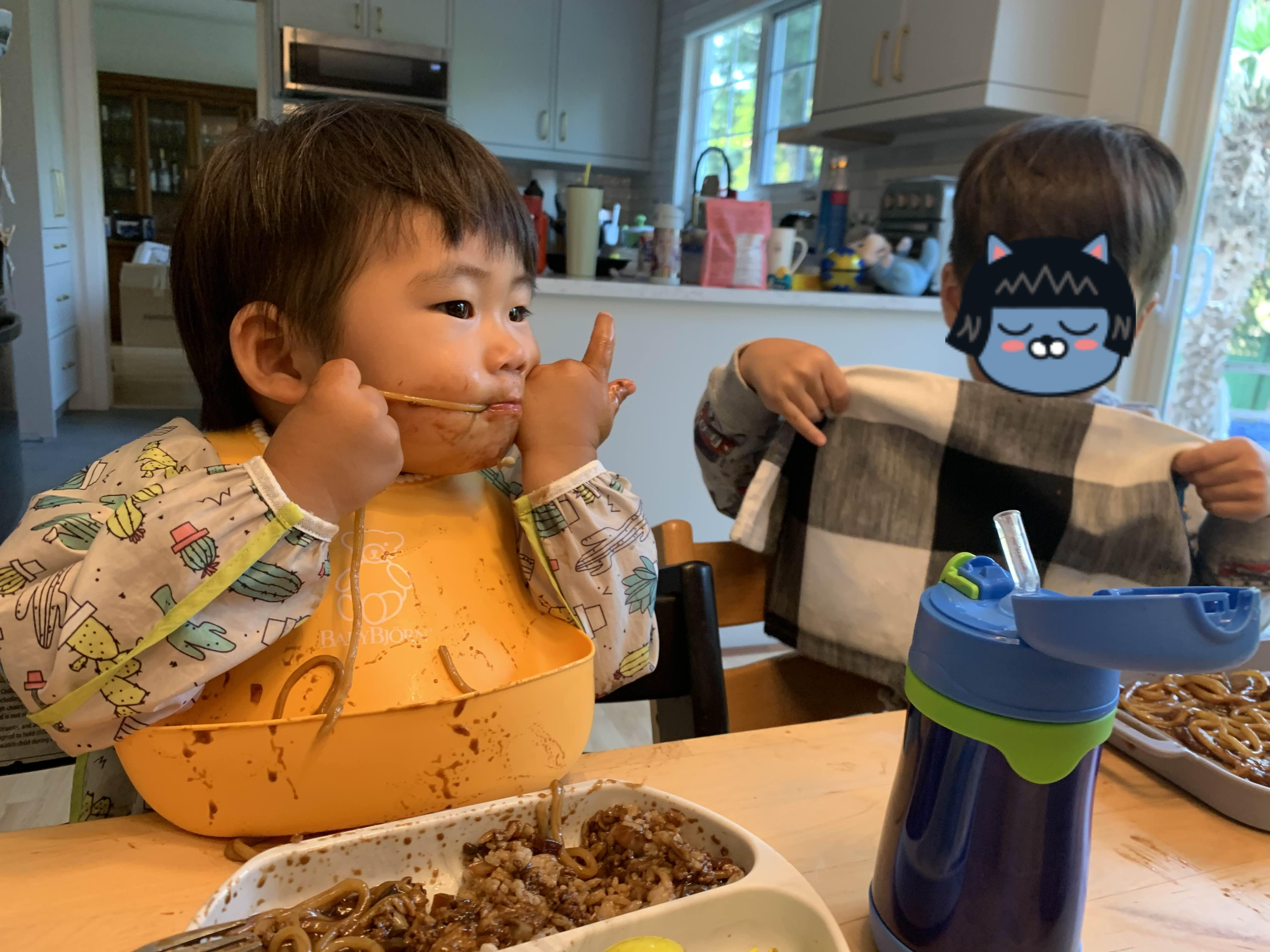 이렇게 얼굴에 짜장범벅을 하고 식사 끝! 뭔가 아쉬움 가득한 표정의 태오.. 오랜만에 포식했어요!