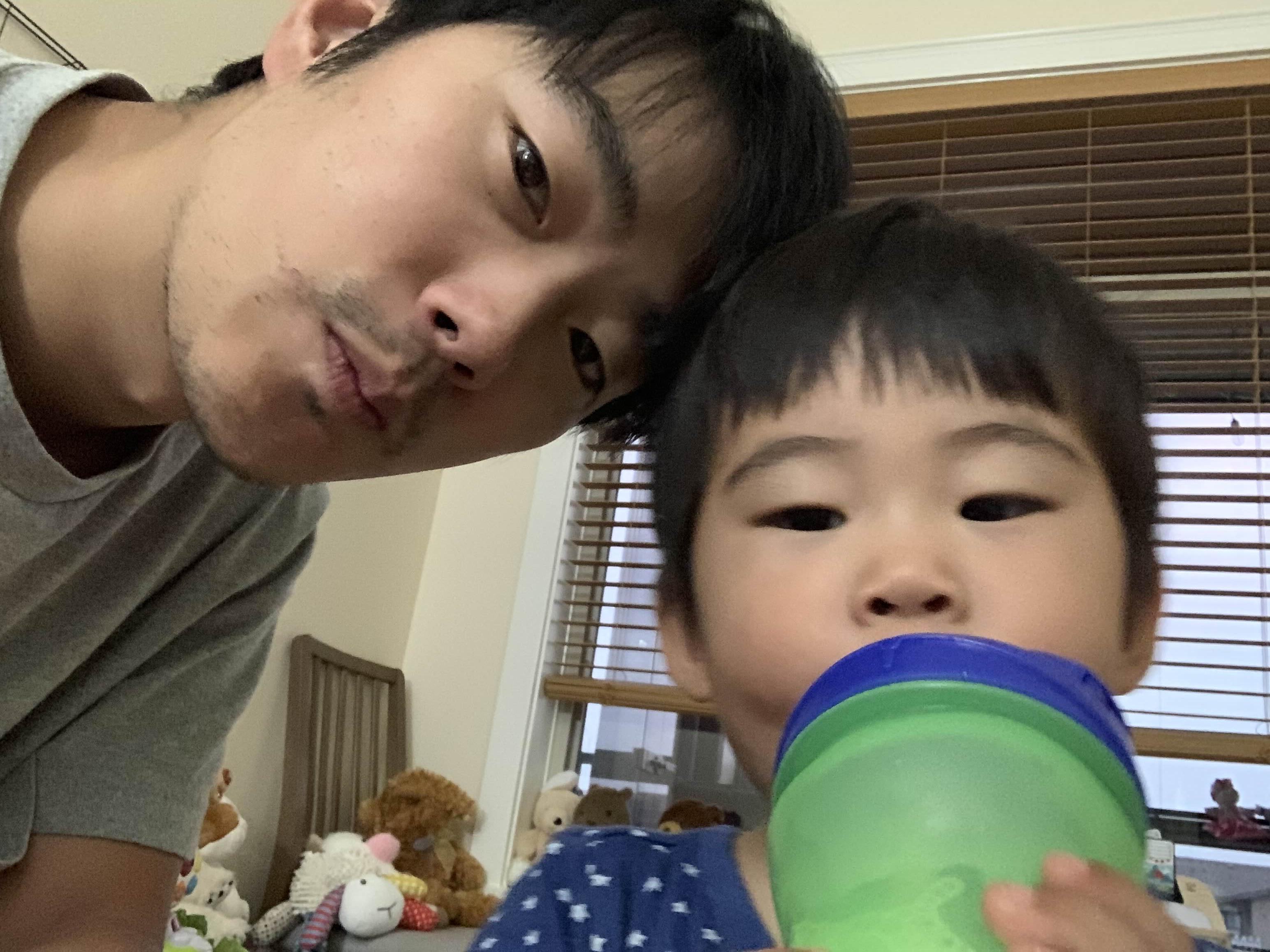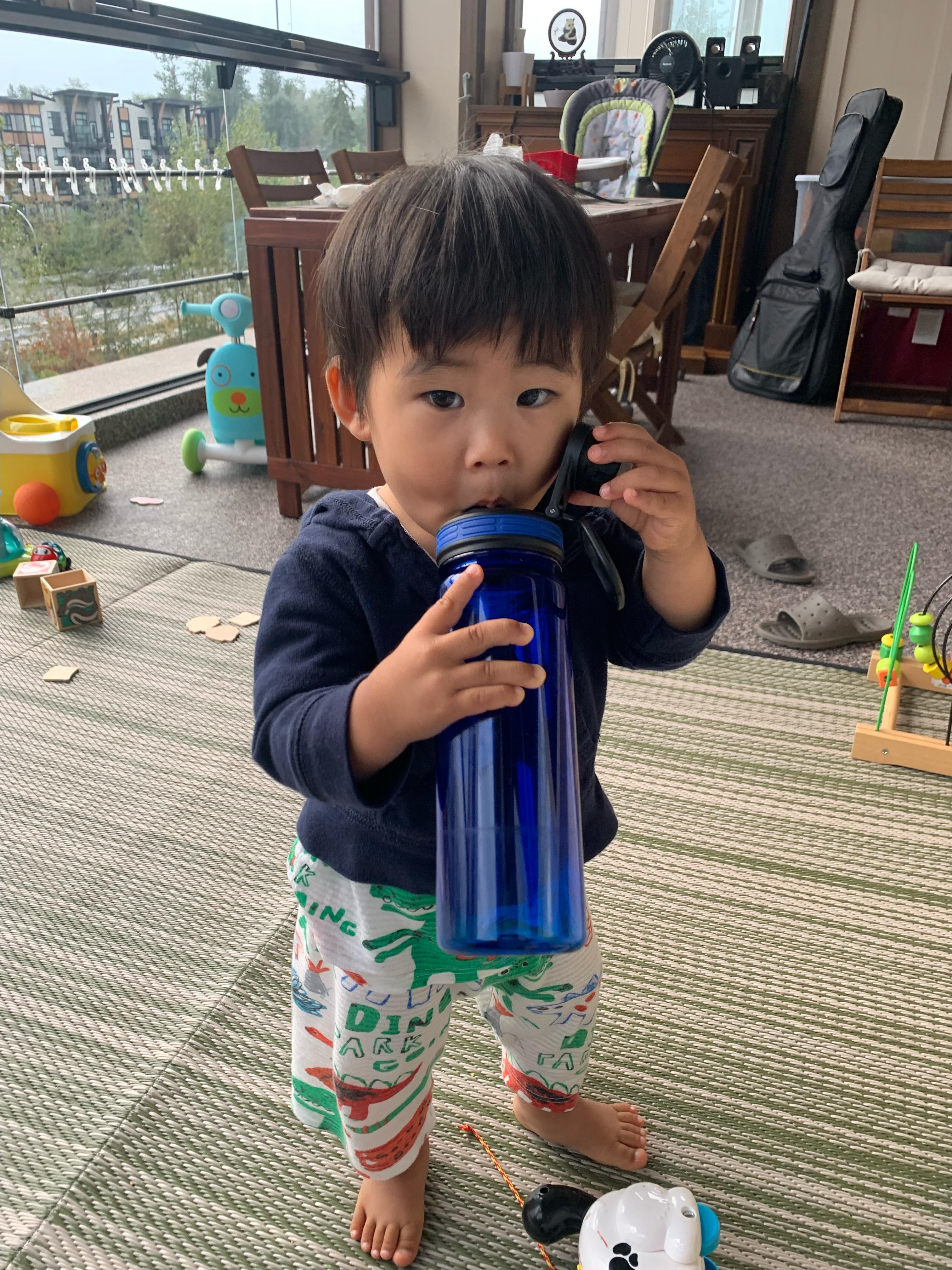 항상 자기 물병 놔두고, 아빠 물병을 탐내는 아드님..