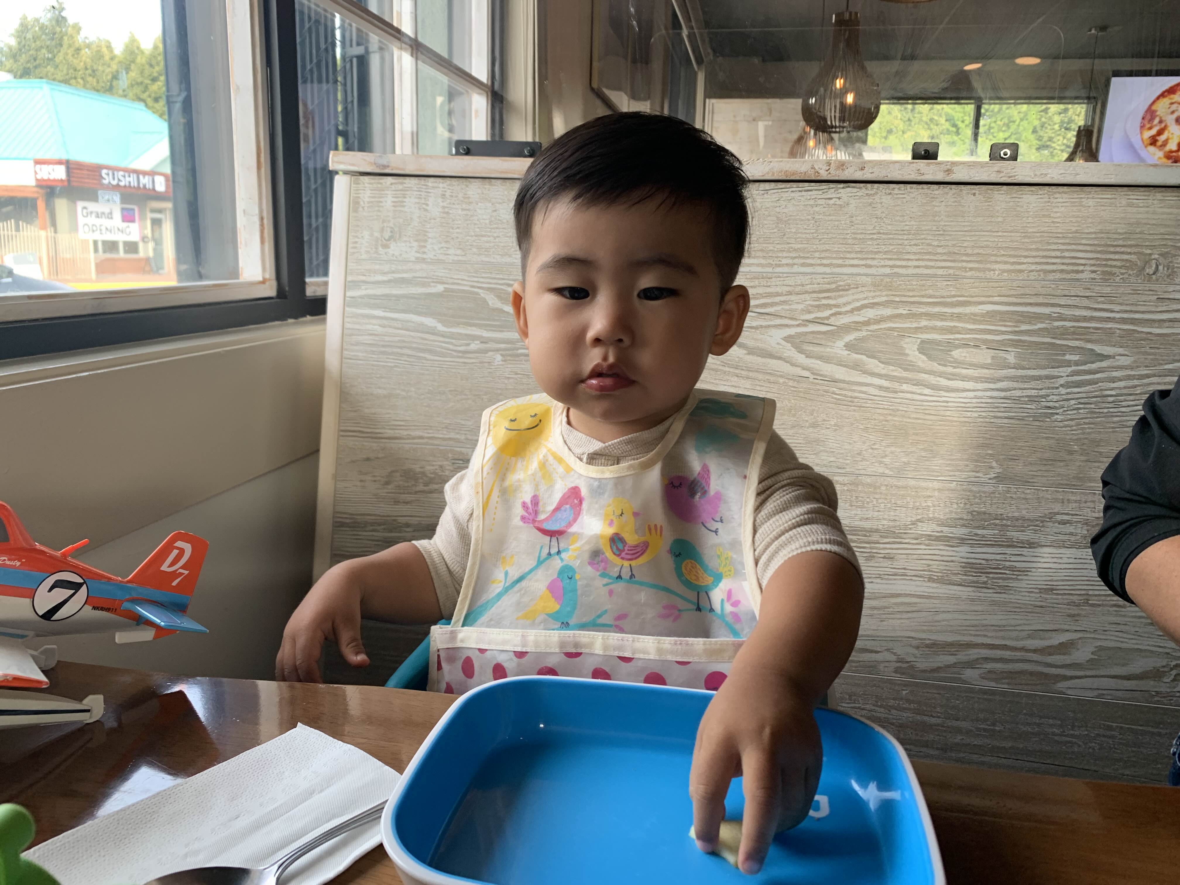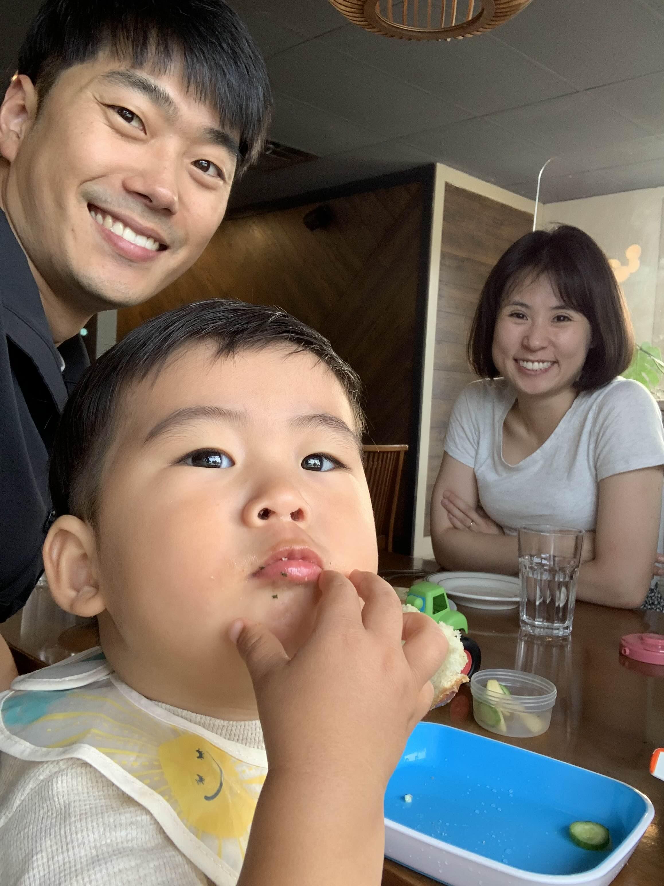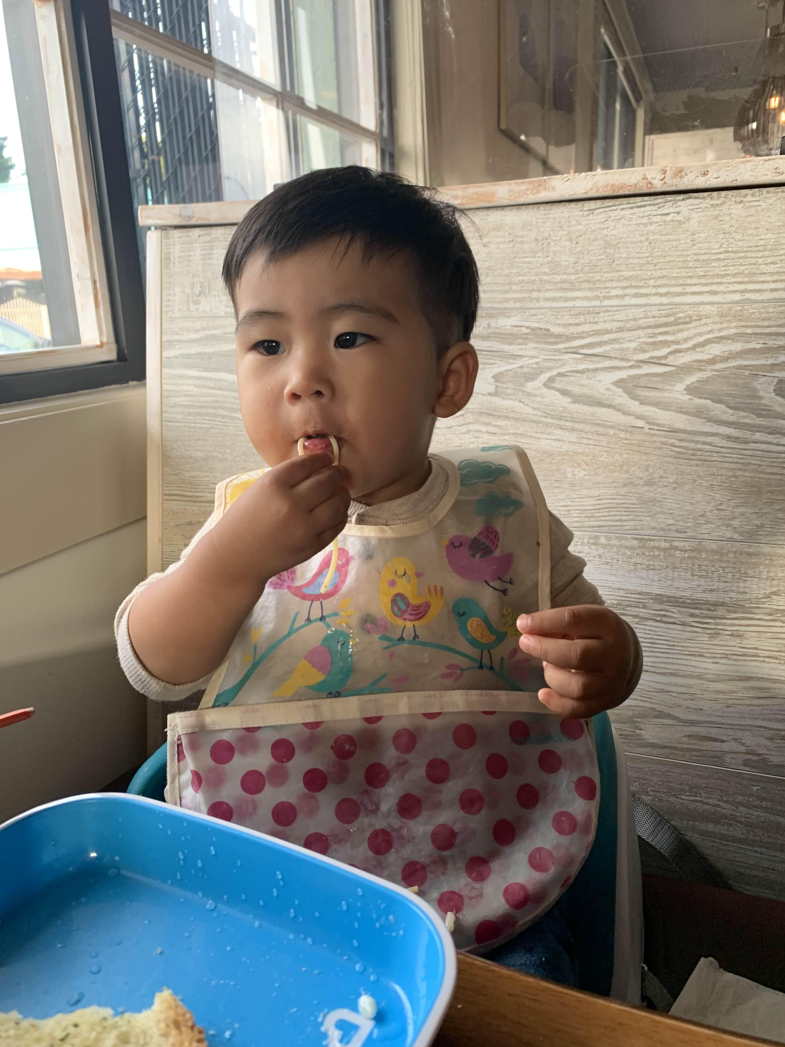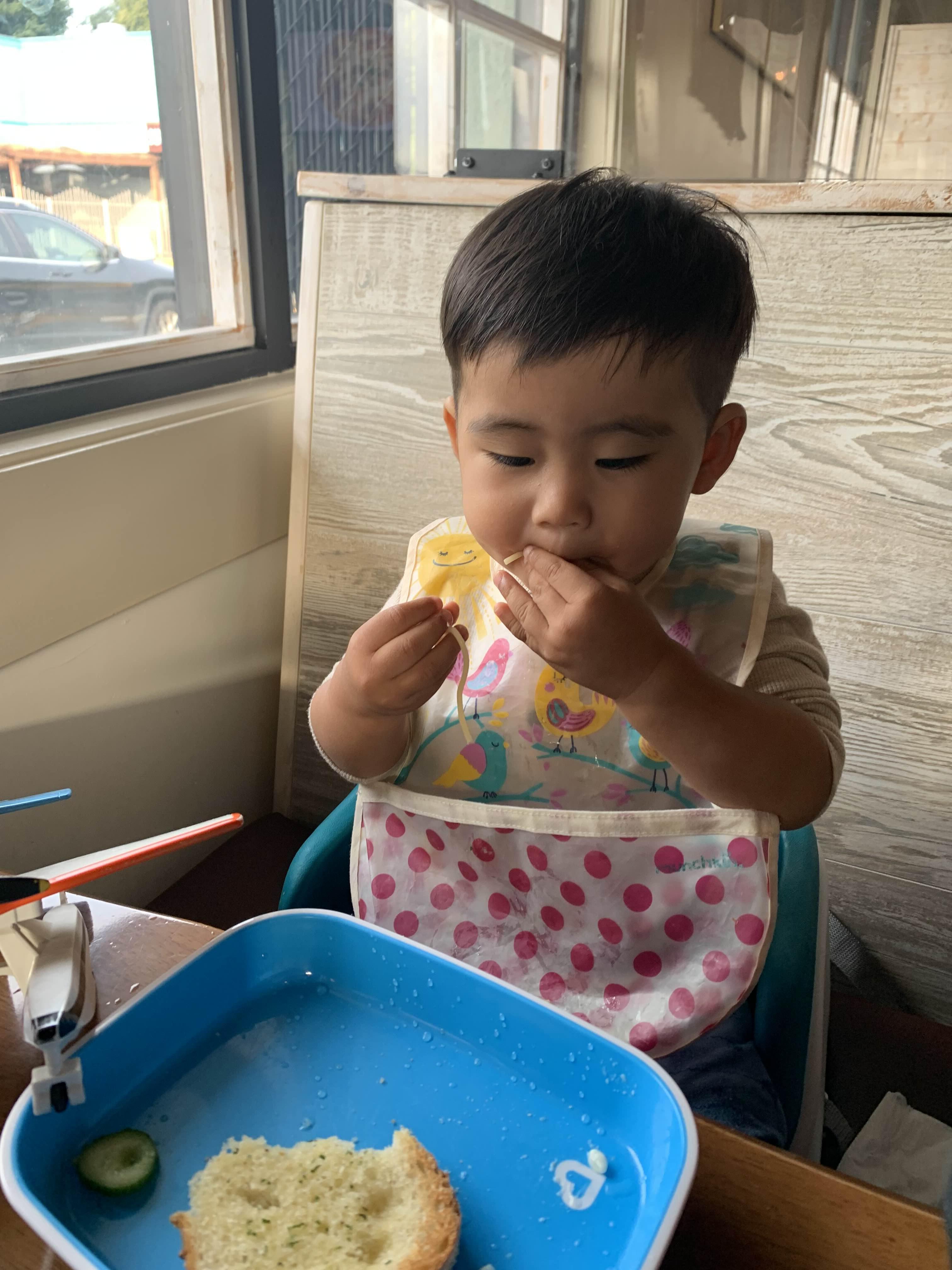 셋이서 즐겁게 외식하는 기념.. 엄마 좀 이상하게 나왔지만, 이것도 기념이니 ㅎㅎ 우리 아들 빵 삼매경.. 너무 귀여워요.. (그랬는데 마늘 부분이 매웠던지.. 먹다가 울면서 짜증... 엄마 아빠가 미안해.. 한국인이라 마늘 매운지 몰랐네... )