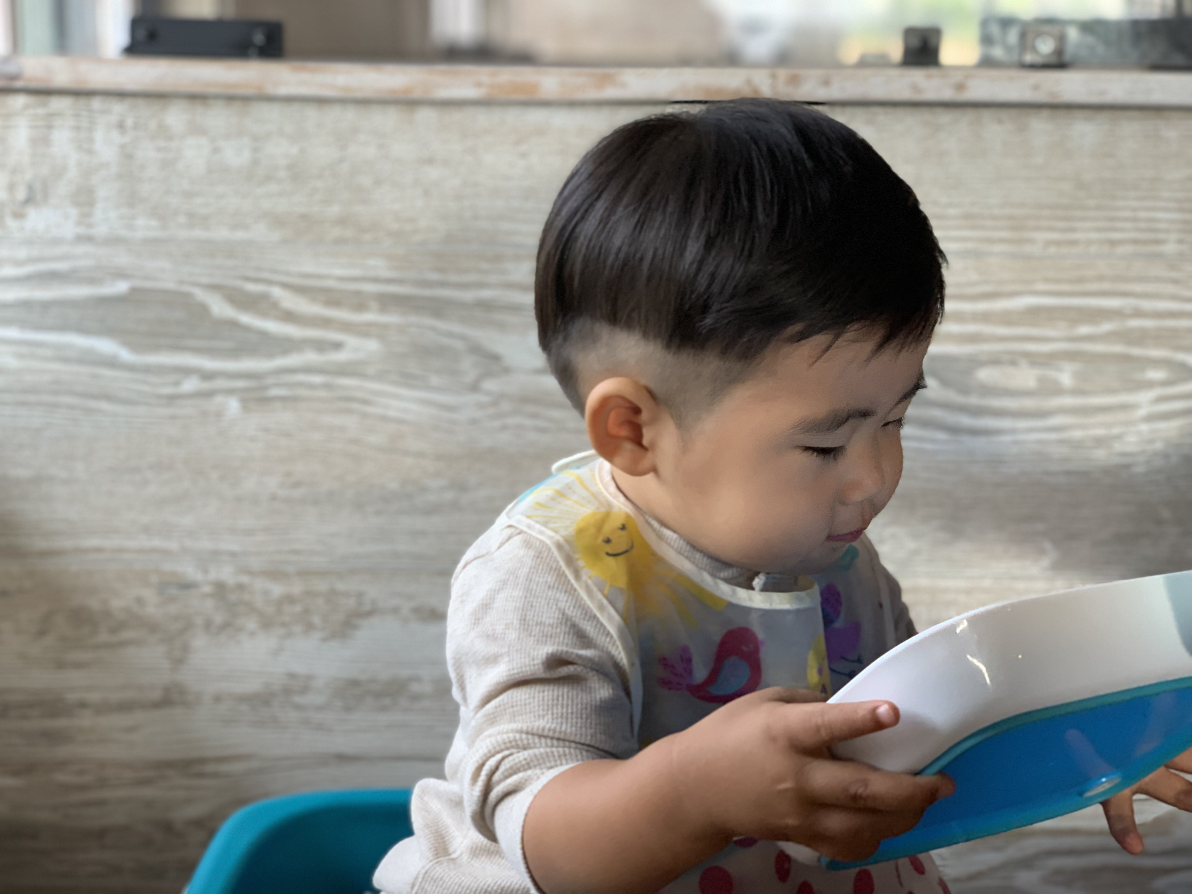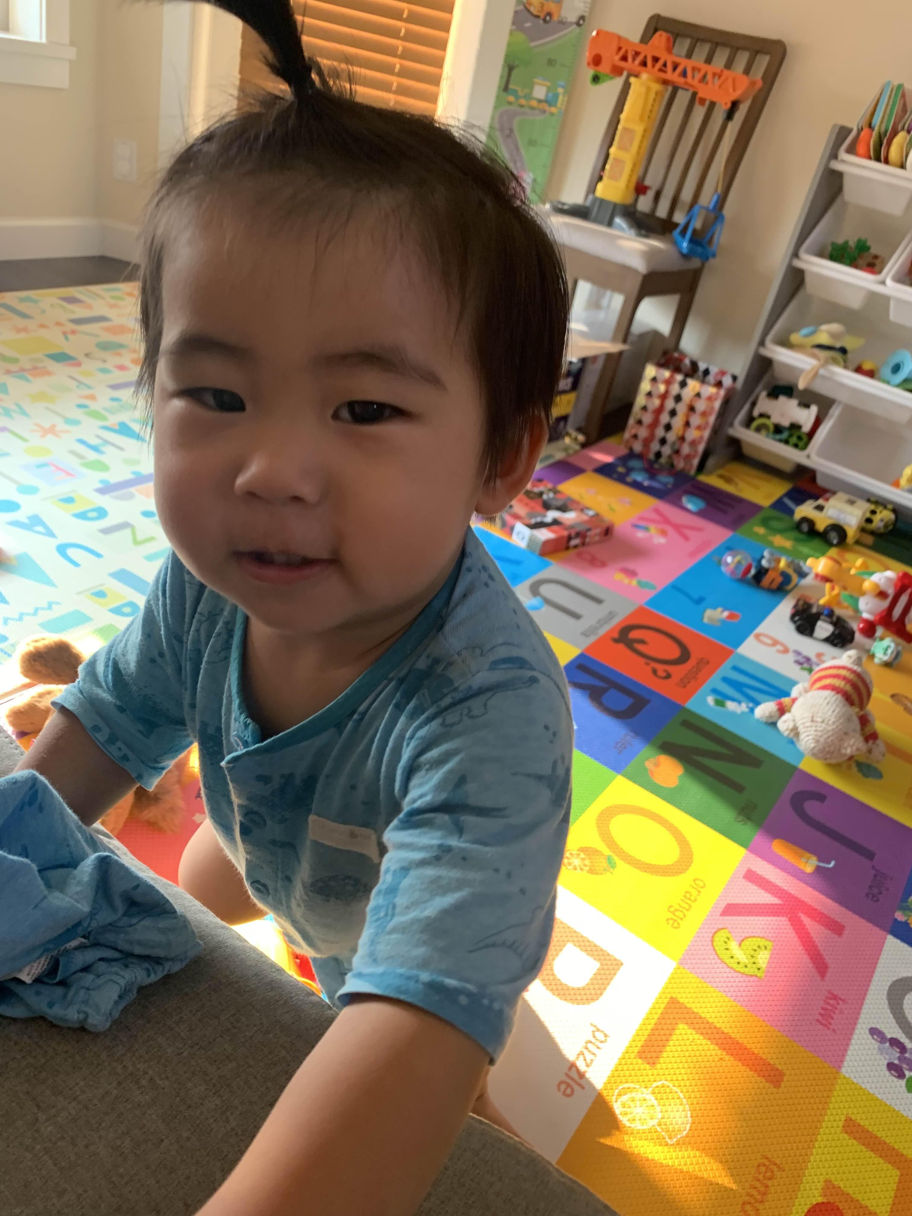 이발하러… 옆에 있던 착하고 예쁜 누나한테 정신이 팔려서 생각보다 아주 잘하고 (그렇다고 안 운건 아니다) 역대급으로 깔끔하게 자른 우리 아드님!
