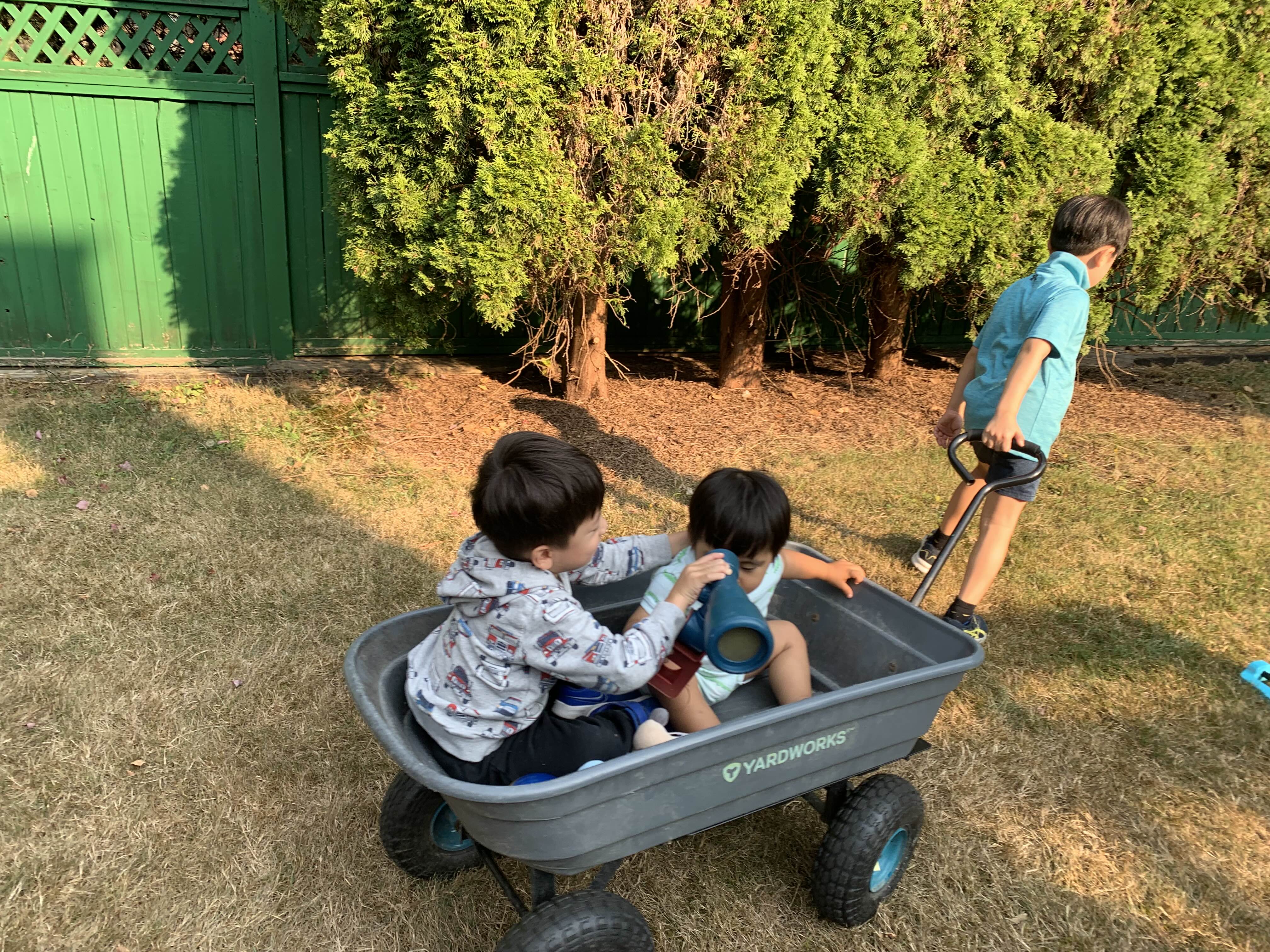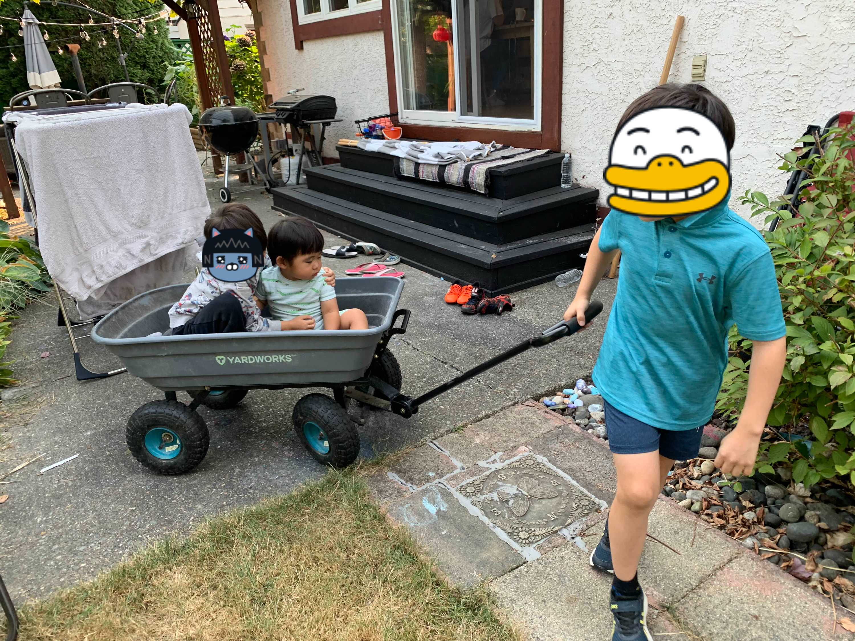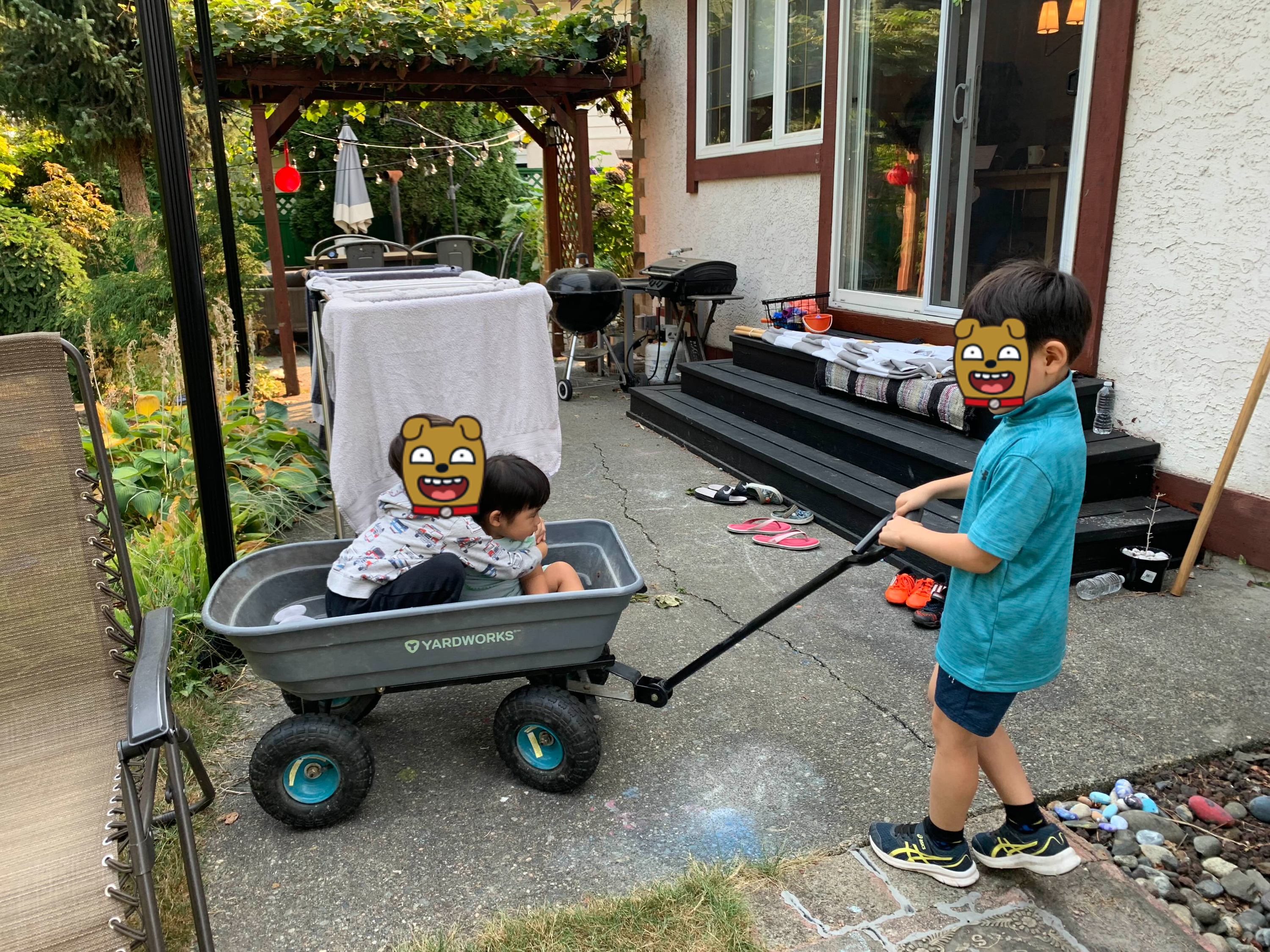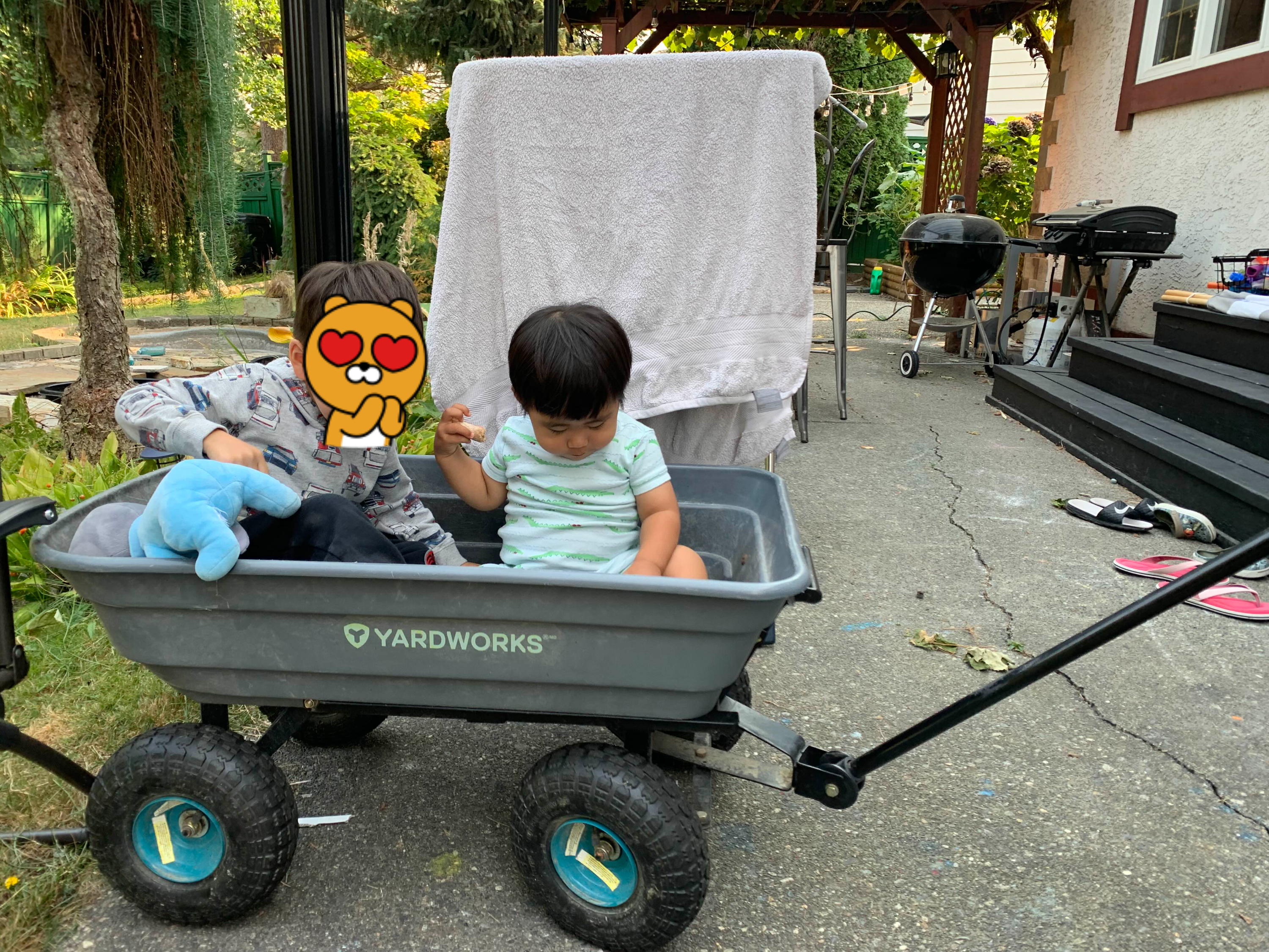 오후에는 형아네 놀러 가요~ 둘째 형아랑 웨건 탑승!