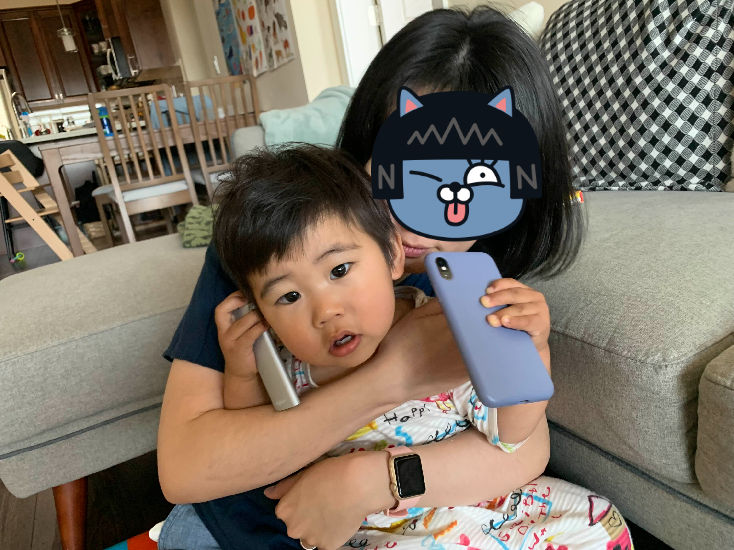 전화기랑 리모컨 둘 다 쥐고는 리모컨으로 전화 거는 우리 아드님~ 할아버지~ 태오가 보고 싶어요~