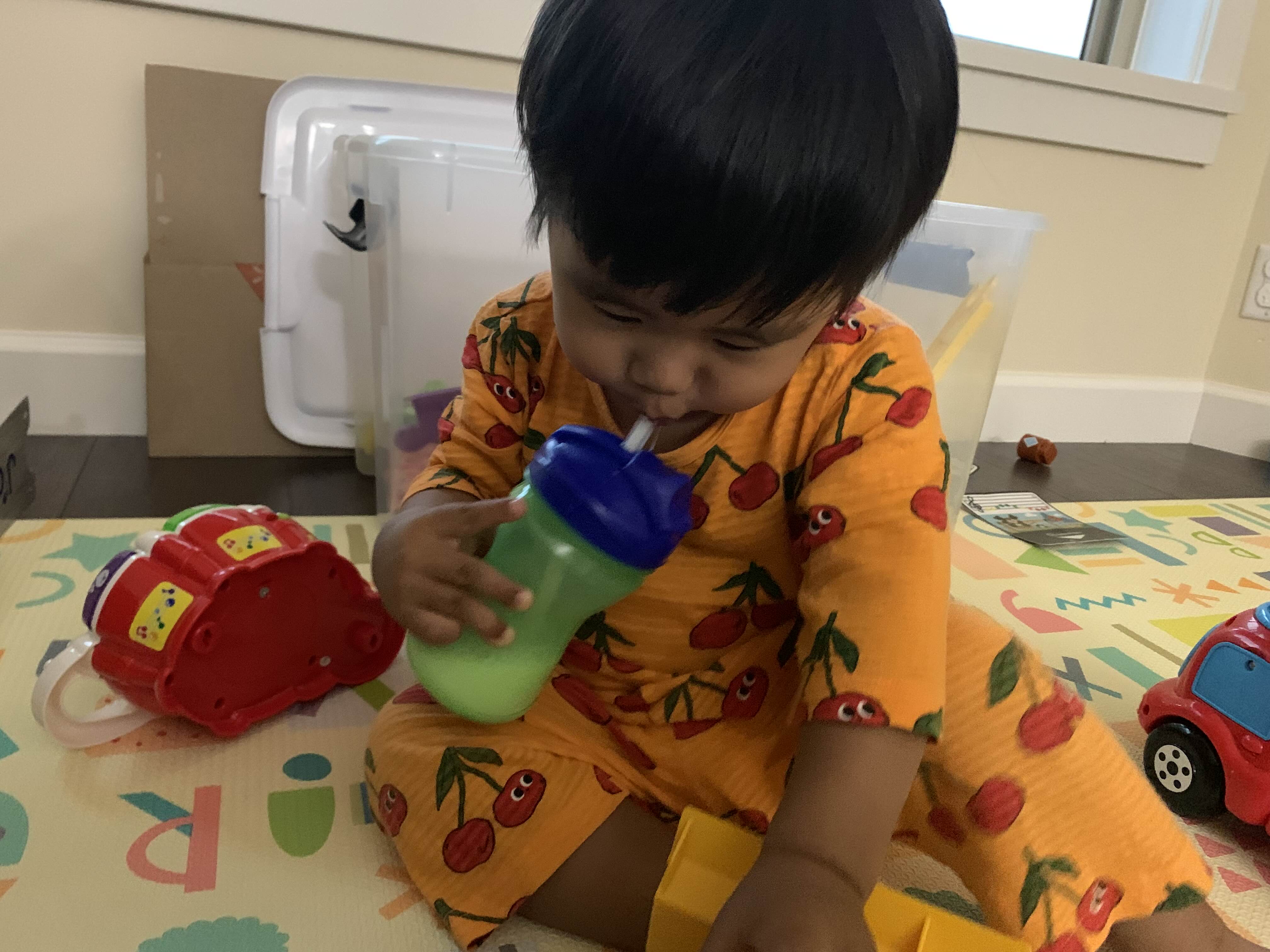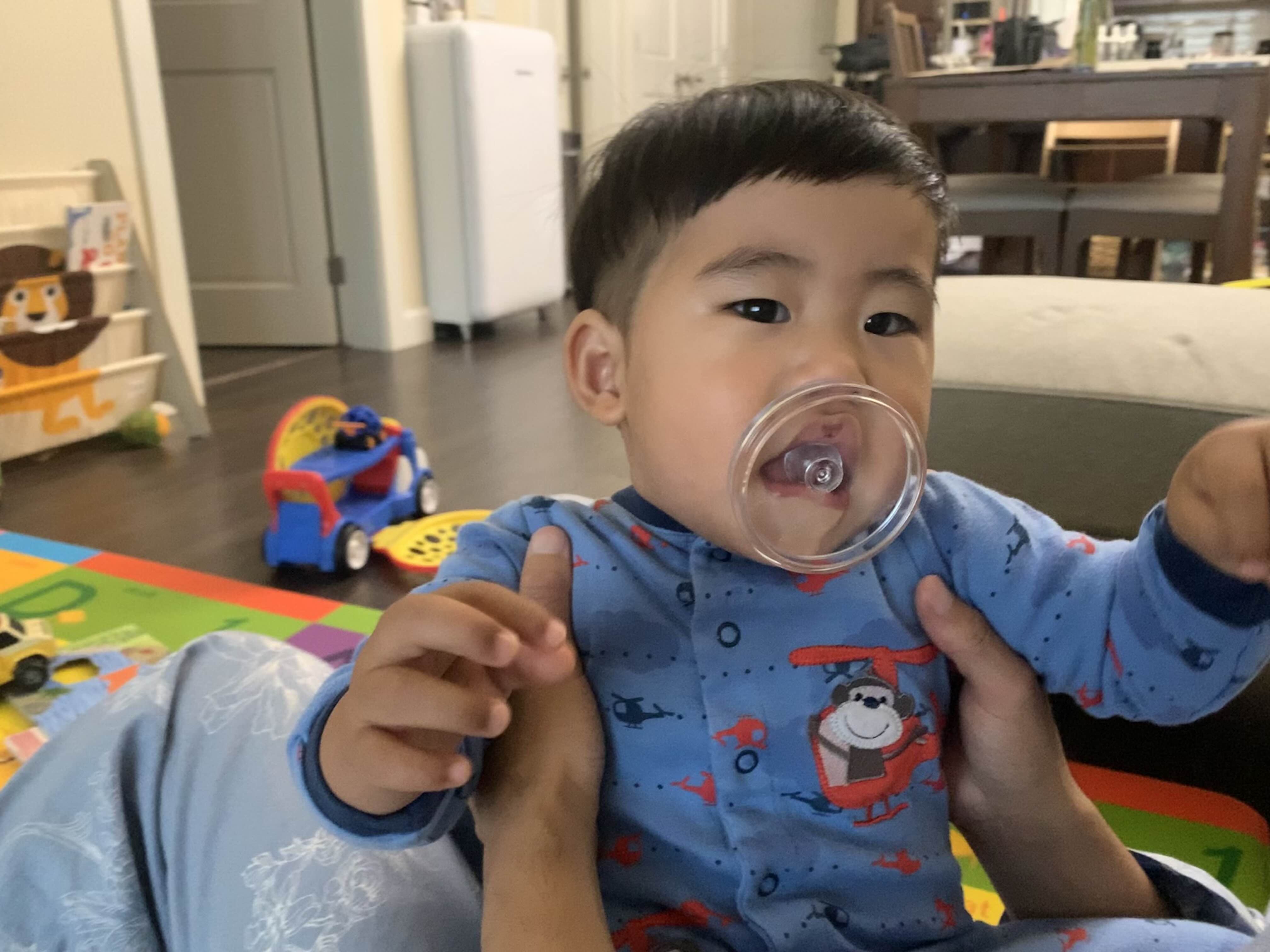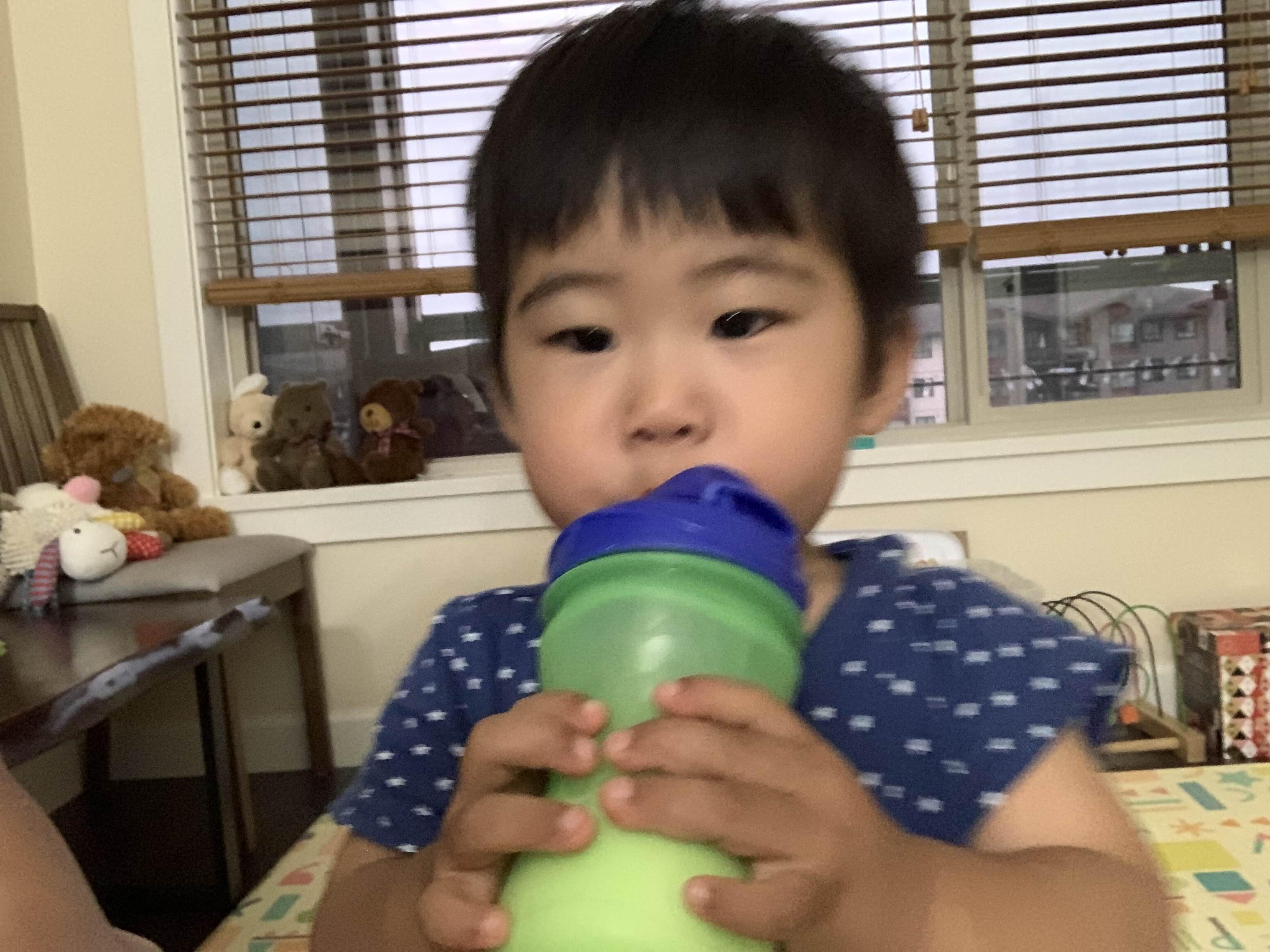 엄마 뚜껑 물고 쪽쪽! 애기 때 그렇게 물려준 쪽쪽이는 다 거부하시더니 말이야..