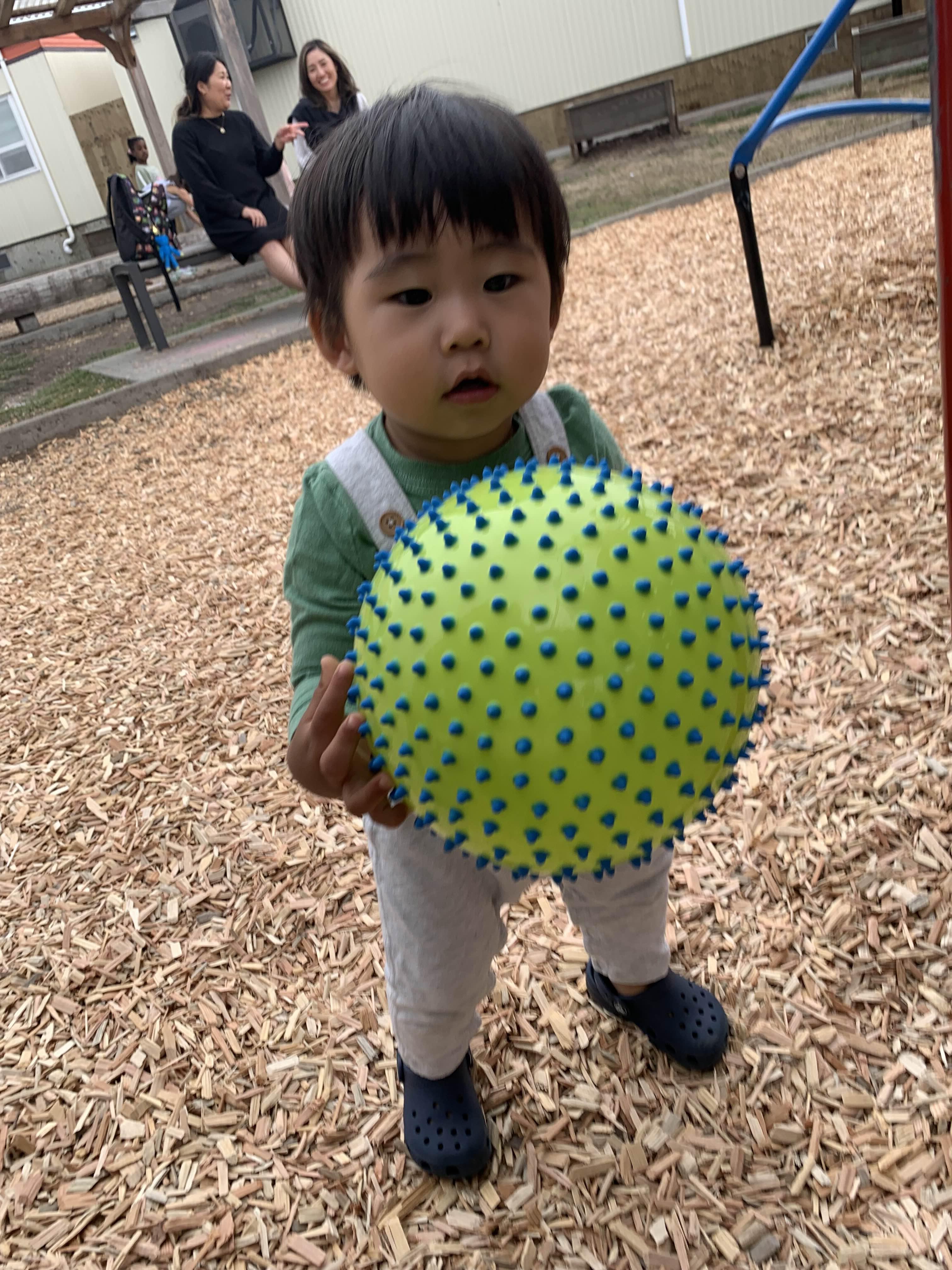 오후에는 신나게 놀이터에서 놀았어요.. 동네 형아 공을 몰래 가져다가 아주 열심히 놀던 태오..
