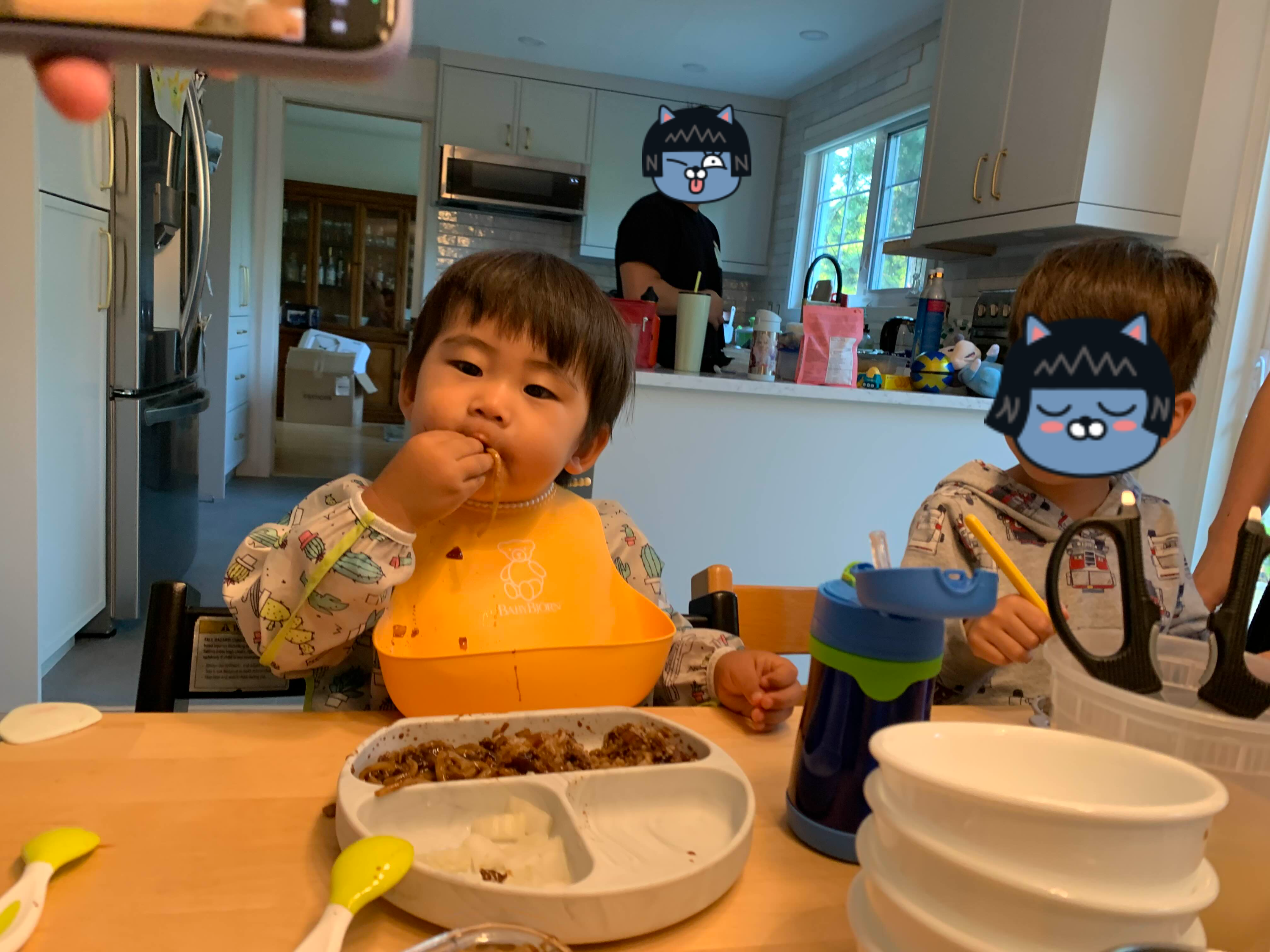 그리고 태오! 인생 첫 짜장면 먹방.. 무염식 포기 기념으로 아빠표 좀 슴슴 짜장밥과, 자극 만빵 중국 집표 쟁반 짜장을 시켰는데.. 우리 아들 신세계!!
