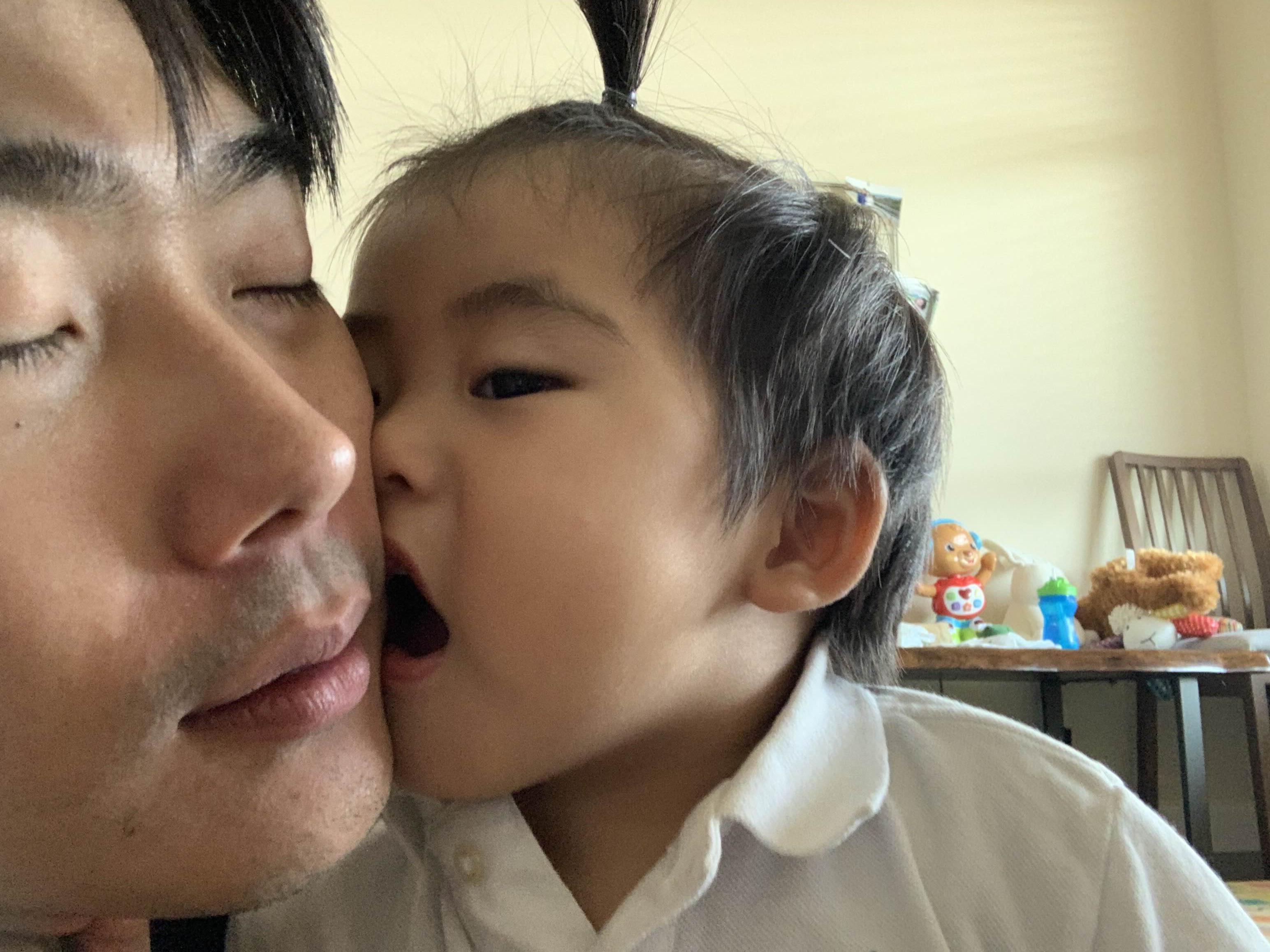 뽀뽀를 입 벌리고 해주는 아들~ 그걸 또 좋다고 찍고 있는 아빠!