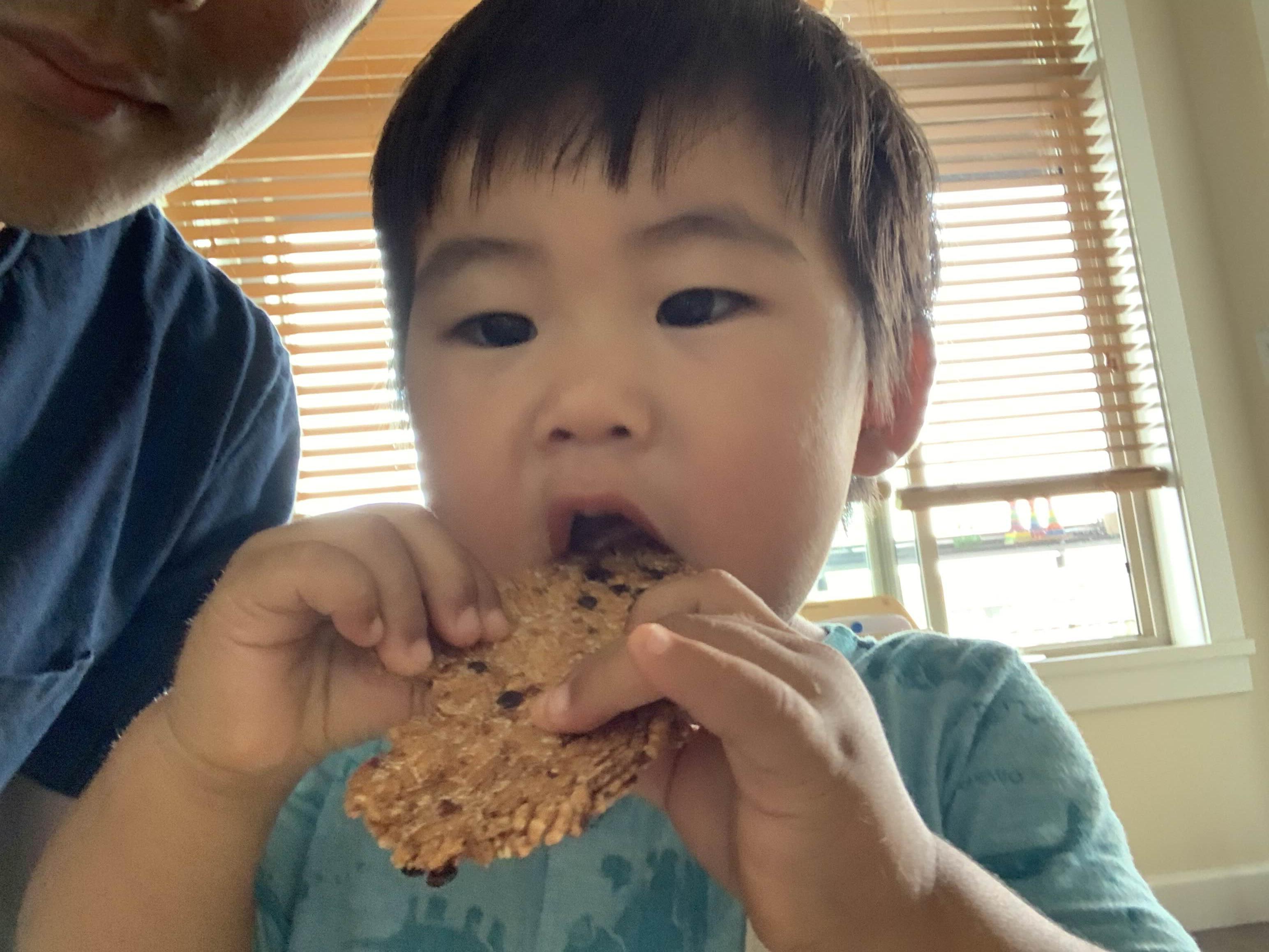 낮잠 자고 오후 간식으로 누룽지를 와그작와그작 씹어 드시는 튼튼한 이를 가진 16개월생.