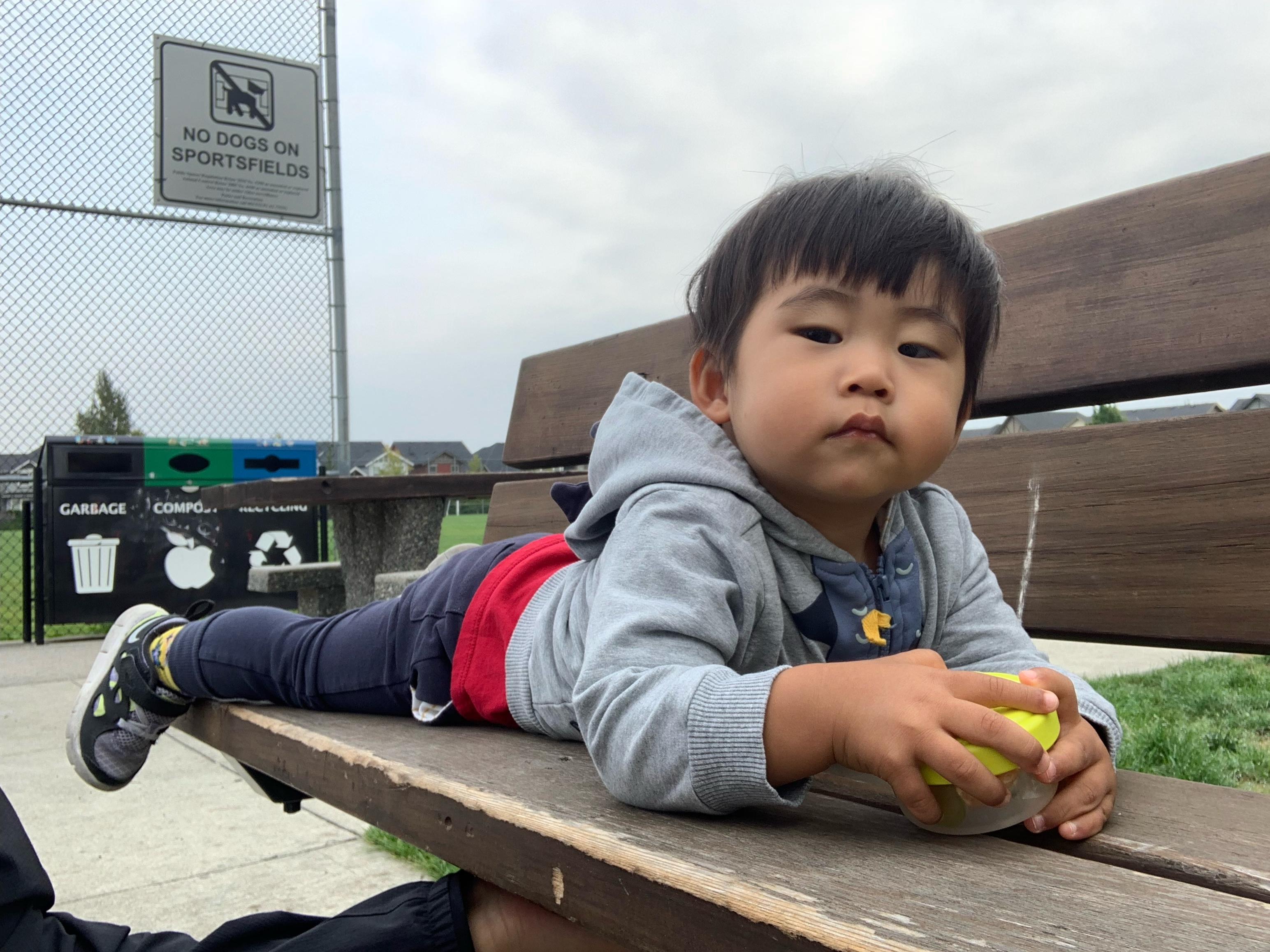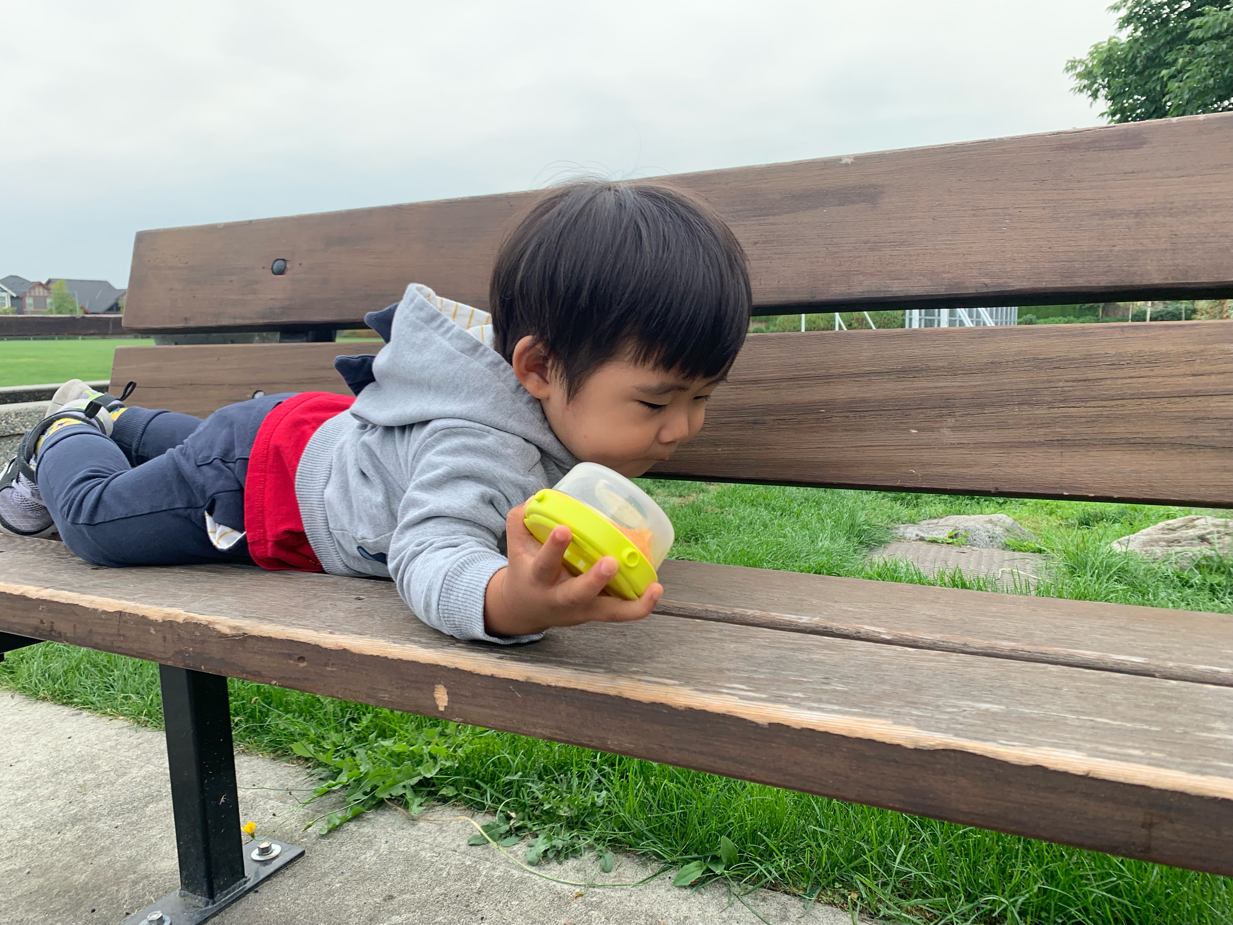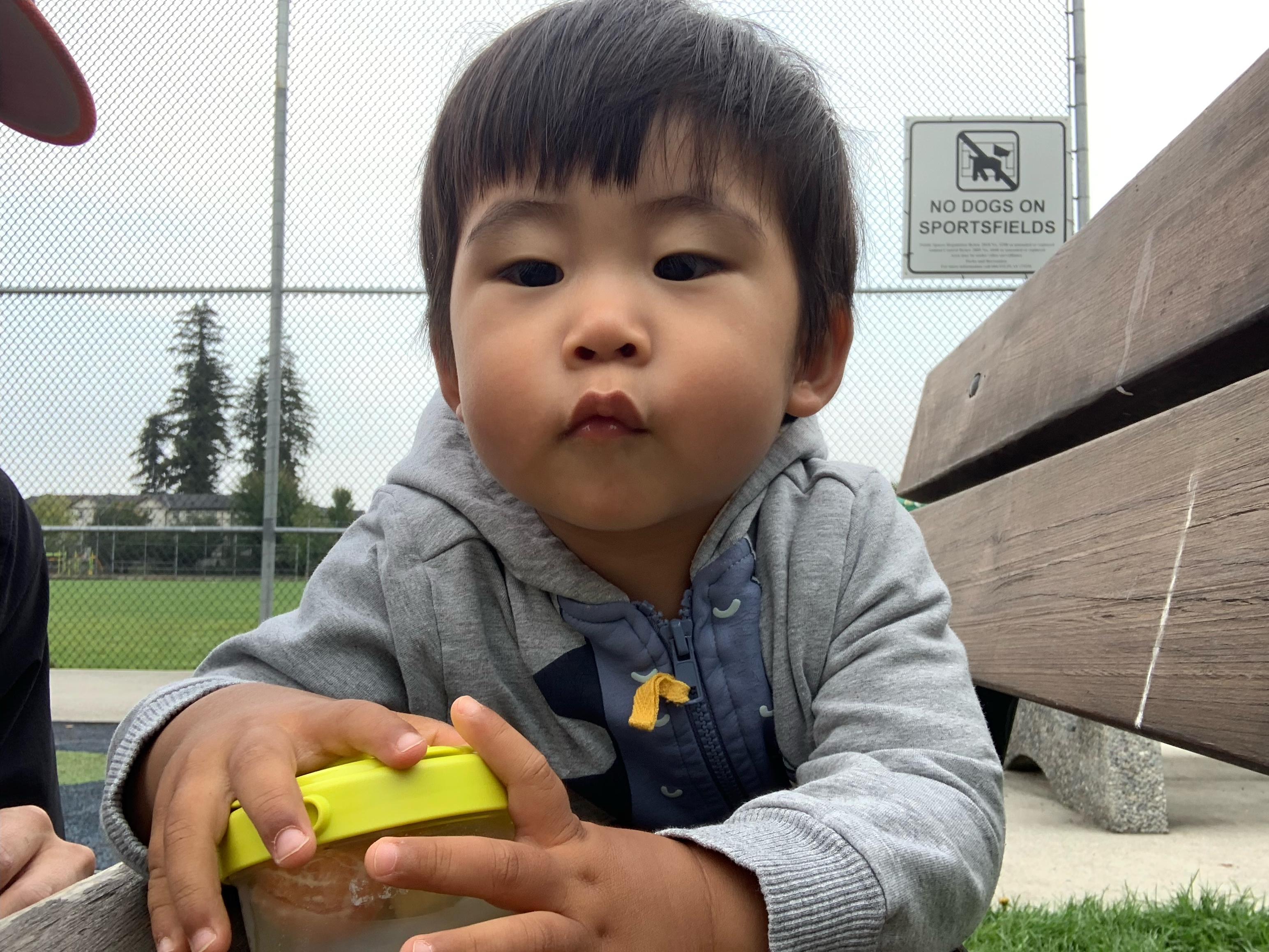 아침 간식은 놀이터에서 먹는 게 요즘 루틴! 오늘은 친구들을 못 만나서 좀 슬펐나 봐요..