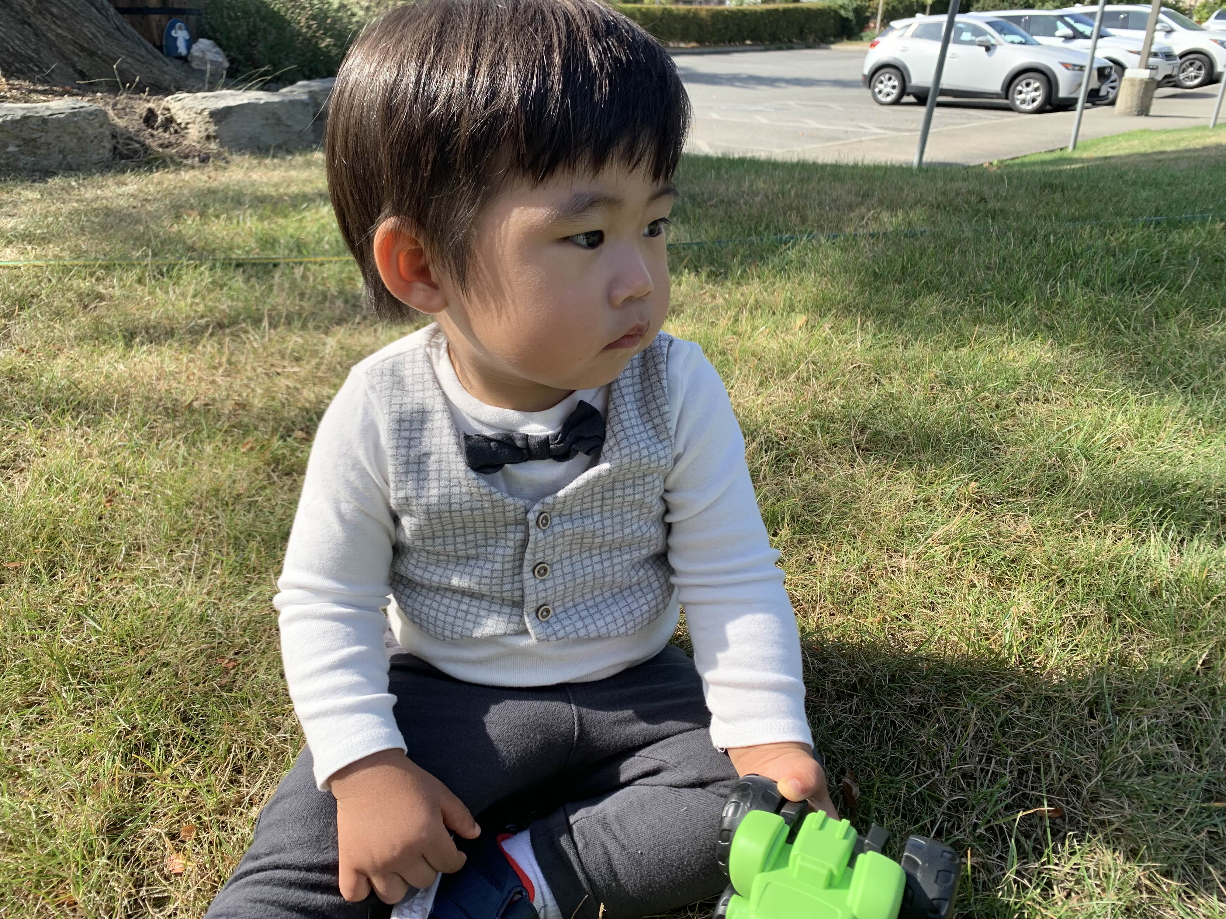 밖에 포클레인을 발견한 아들의 찐 행복한 표정! 너무 잘생겼잖아! 사랑해!!