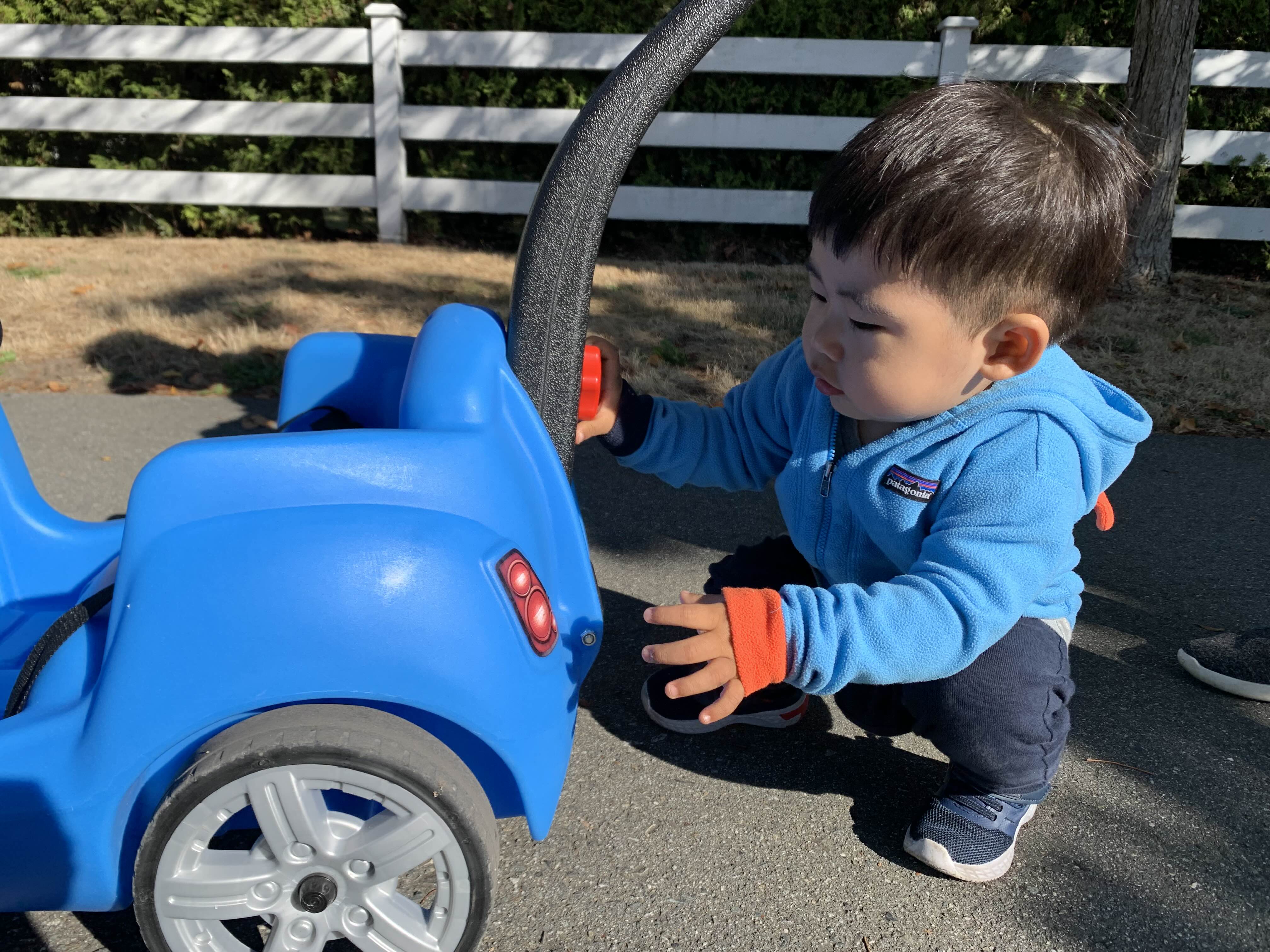 자동차도 셀프로 밀고.. 안 타겠다고 징징 되셔서.. 결국 할비가 안고 돌아왔다고 하지요..