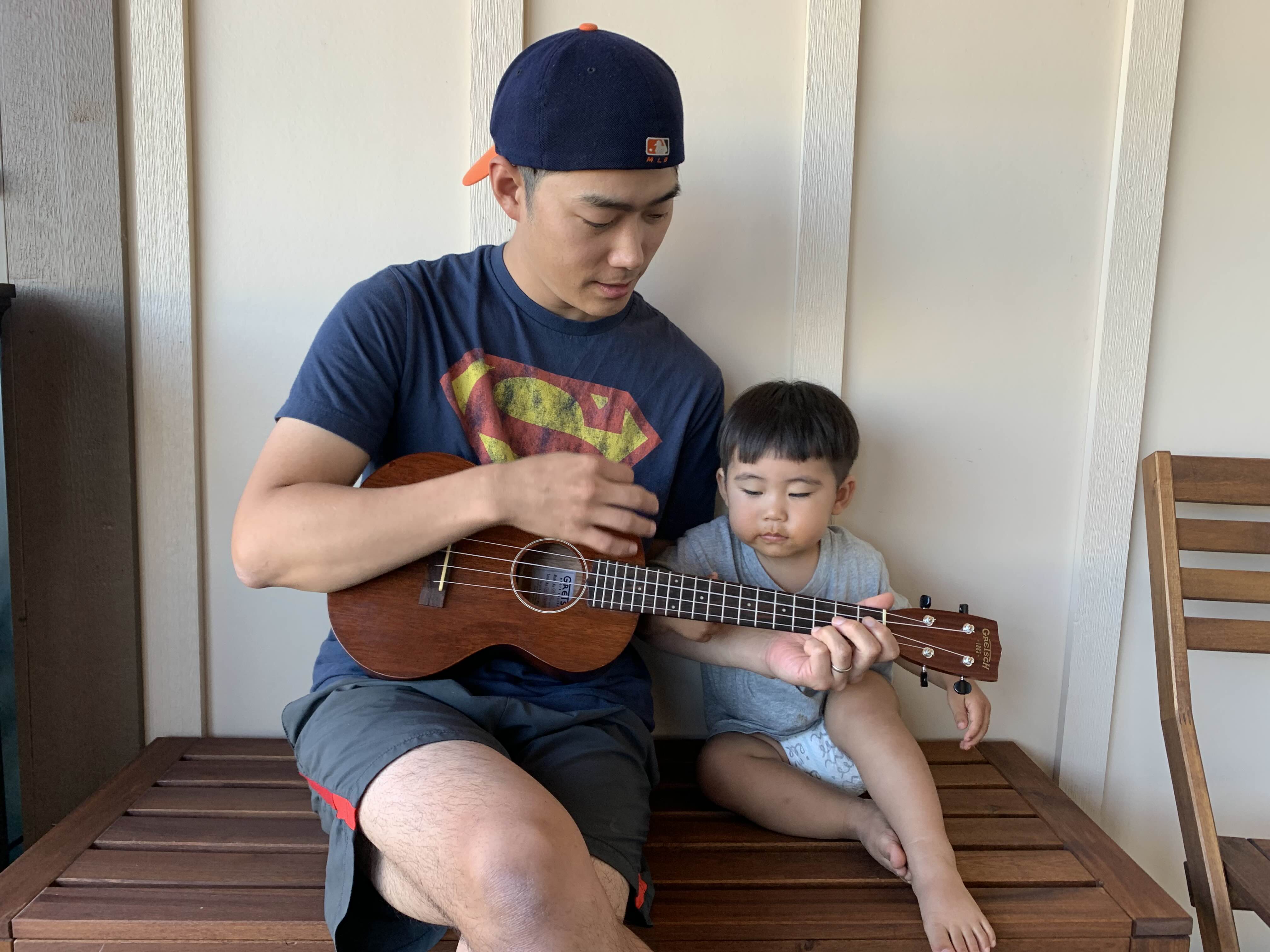 맘마 먹고, 아빠랑 우쿨렐레 타임을 했는데.. 슬슬 초점이 나가시는 아드님이 보인다.. 보여... 그래 네가 안 자고 언재까지 버틸쏘냐...