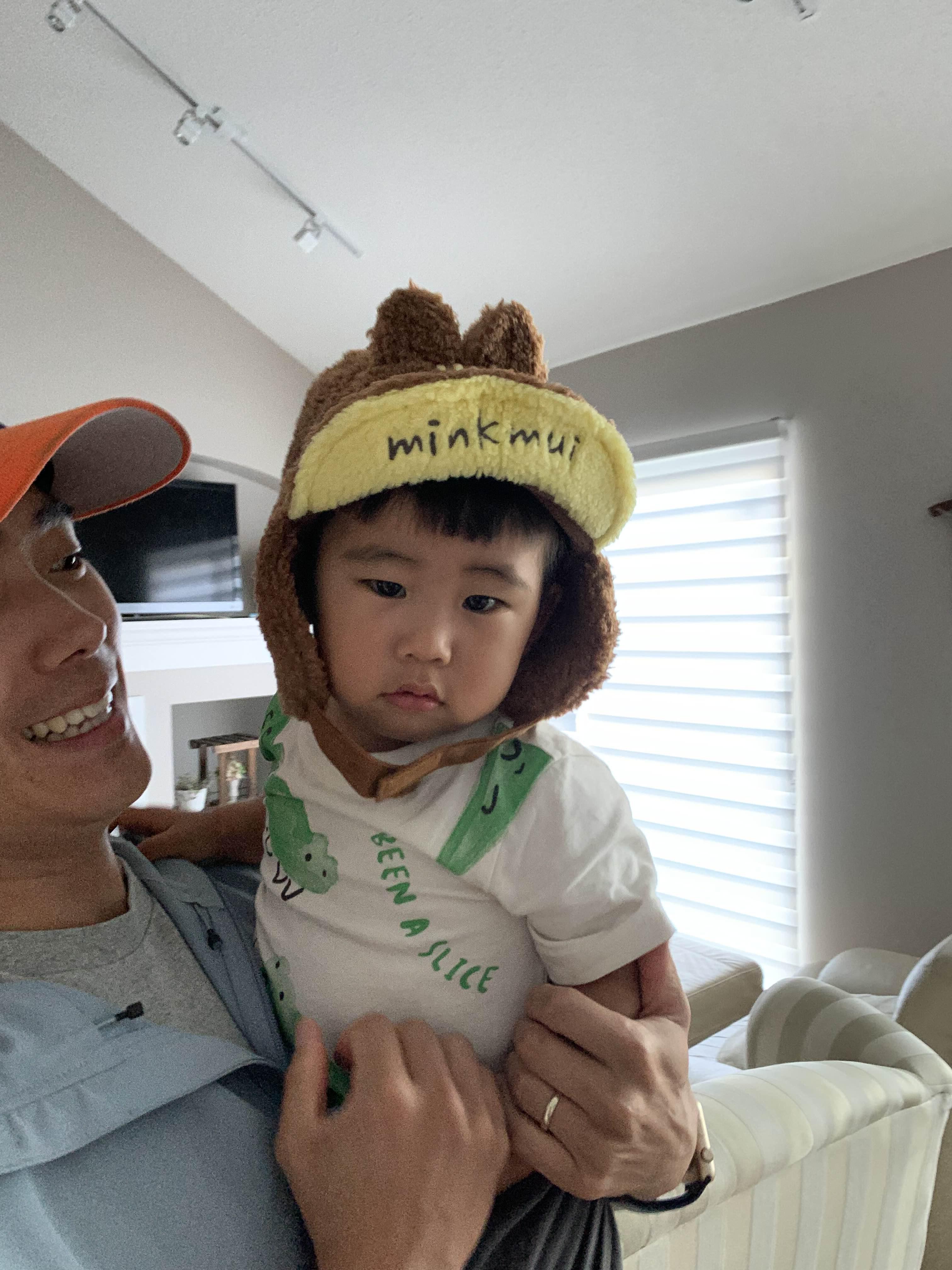 그리고는 할머니네 놀러 갔지요!! 엄마 아빠가 태도가 싫어하는 모자를 씌우고 사진을 찍으래요! ㅠㅠ
