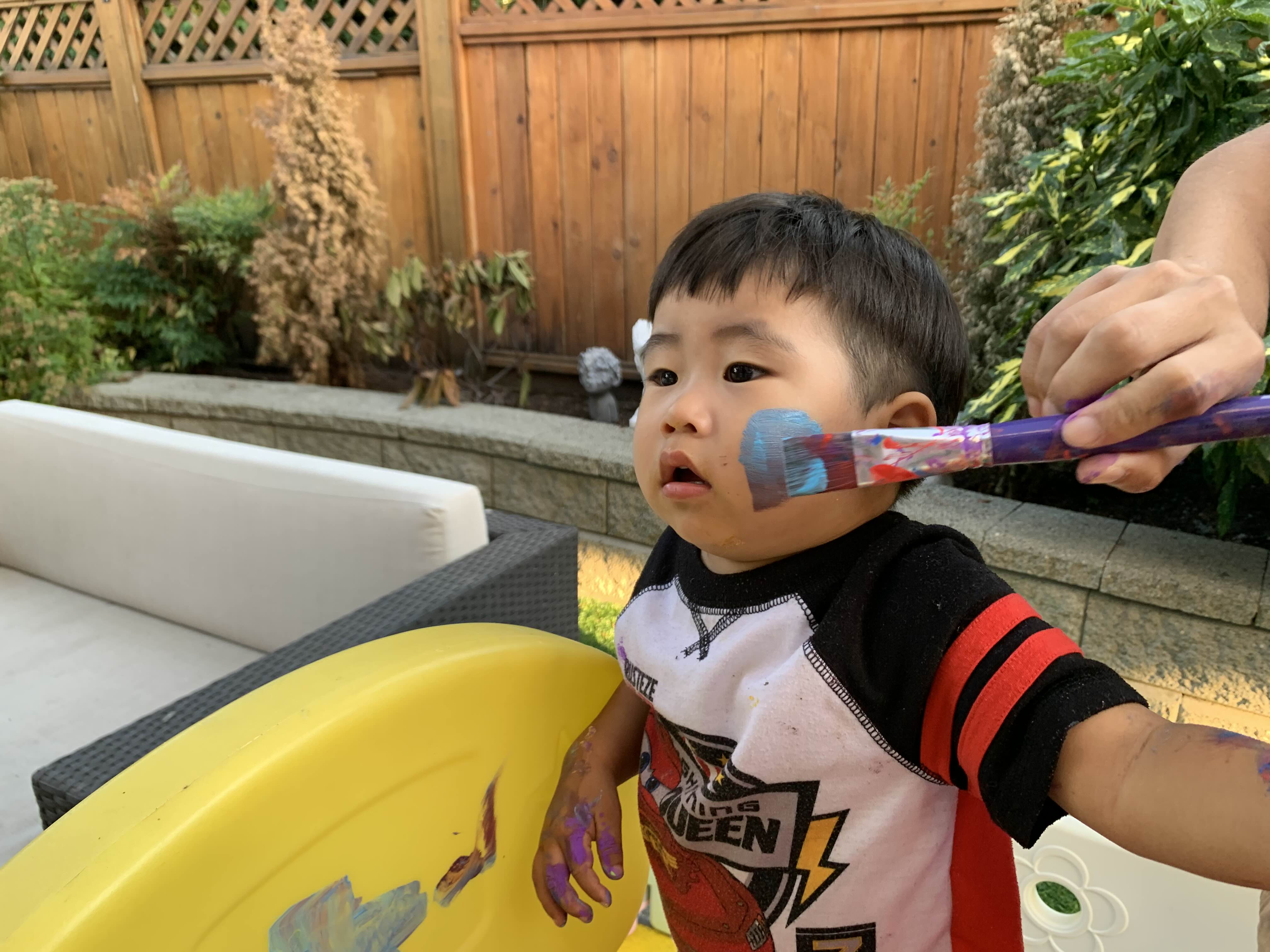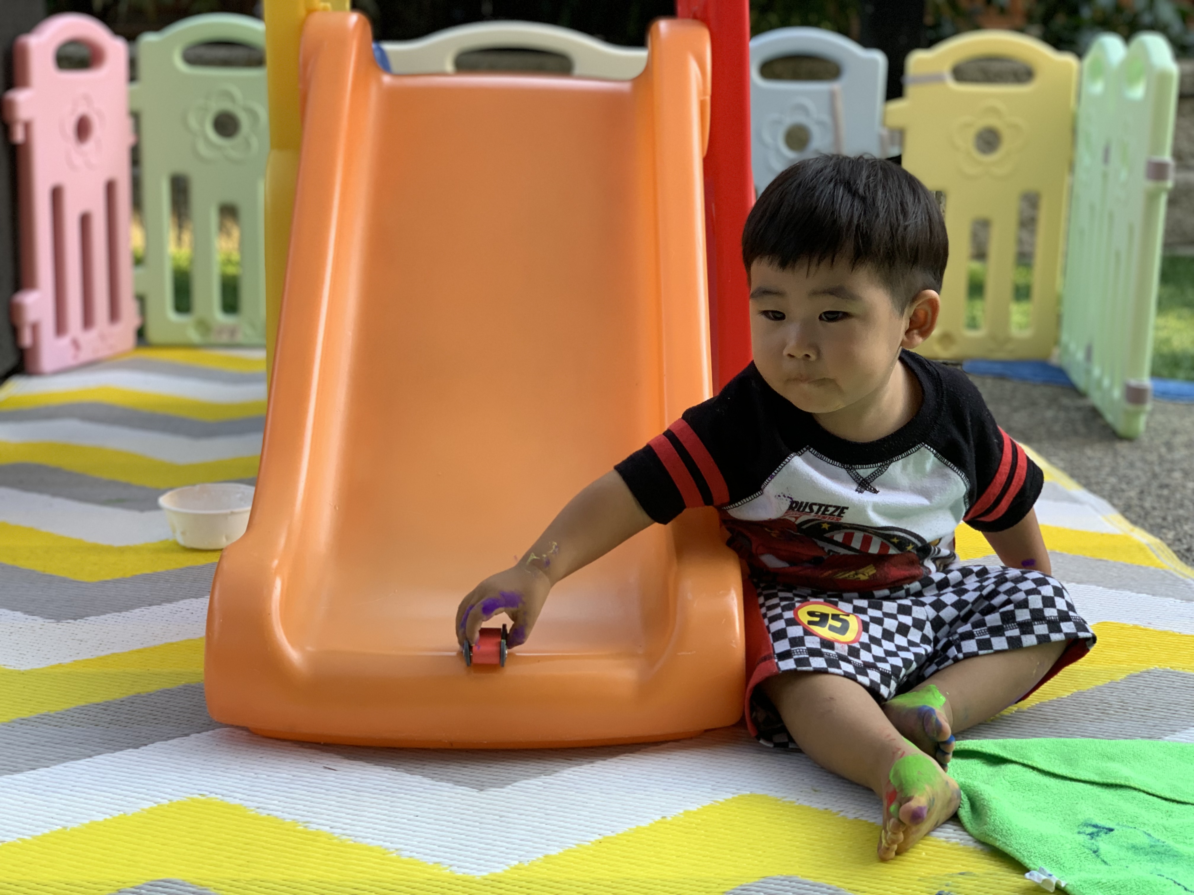 물감놀이보다는 자동차에 더 관심이 많았던 태오였지만, 그래도 꽤 인상 깊었는지 집에 와서 이모가 얼굴에 물감 묻혔다고 계속 이야기하던 아들..
