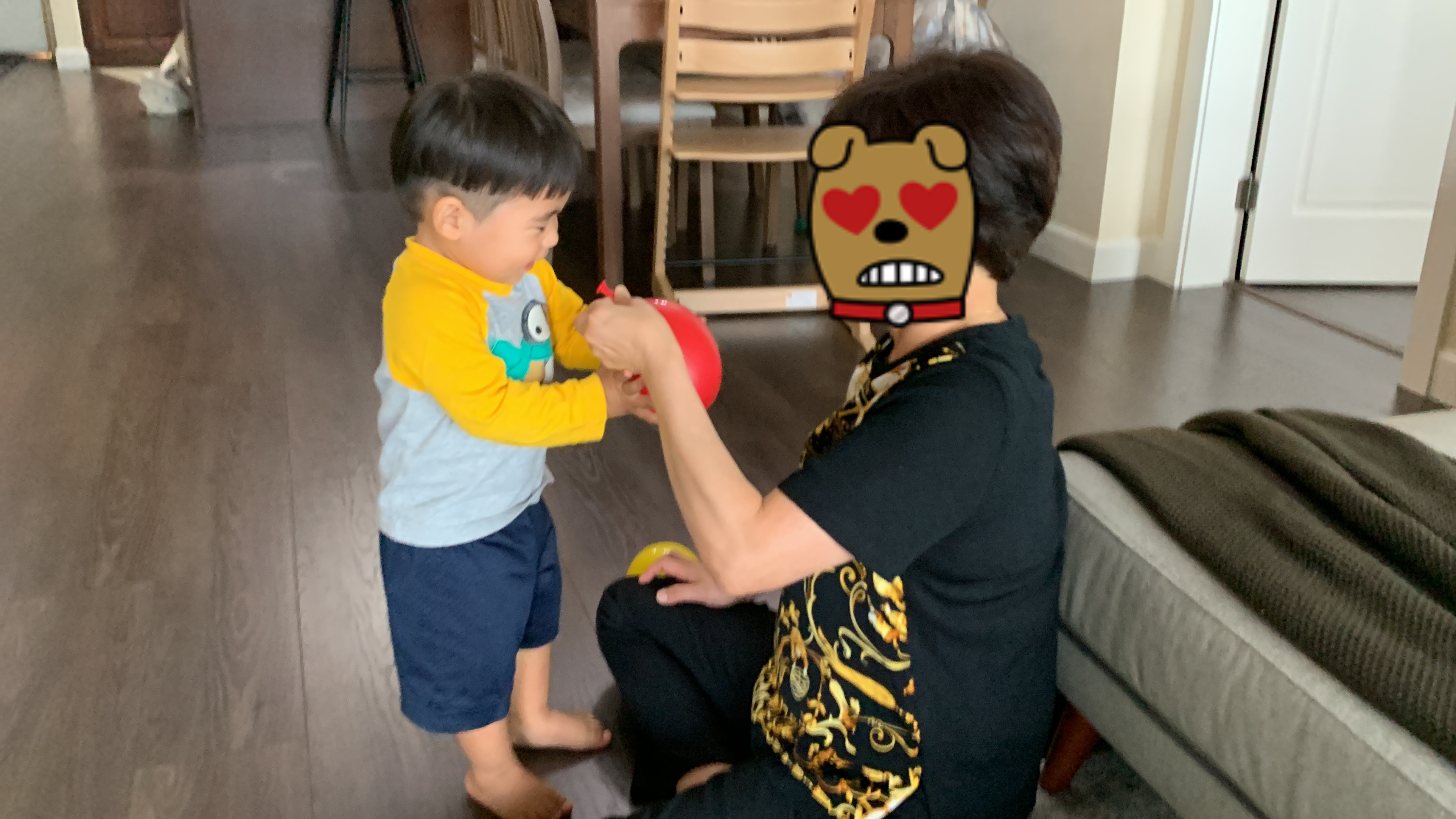 오늘 저녁 엄마 아빠는 리지 이모 결혼식에 가야 해서, 할머니가 퇴근하고 놀러 오셨어요! 할머니랑 풍선놀이가 너무 즐거운 아들!