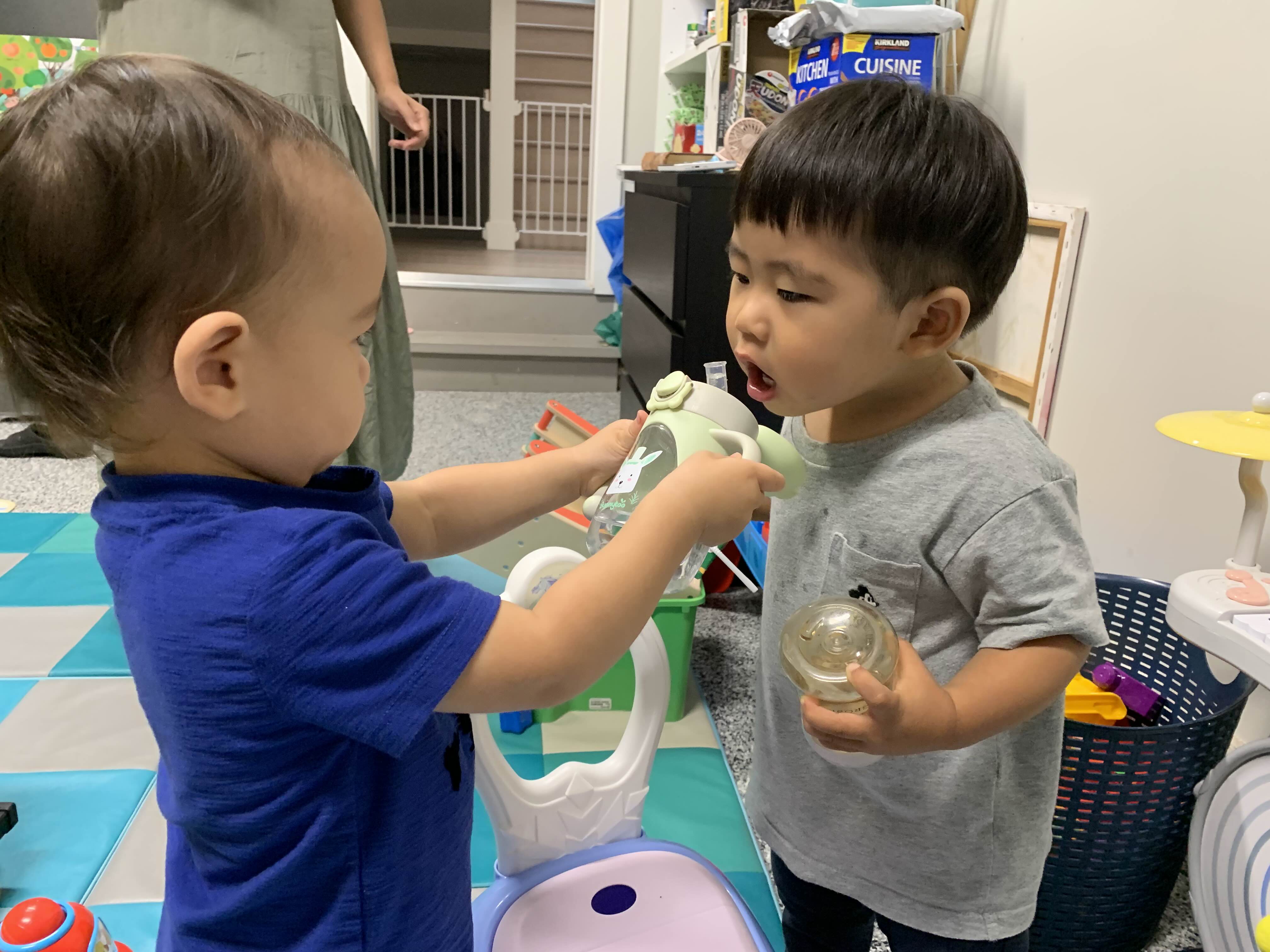 오늘도 친구네 놀러 왔어요! 요즘 태오의 최애 친구 리우! 태오의 자동차 사랑은 여기서도 계속되고.. 착한 리우는 태오가 가져가면 그냥 주고..